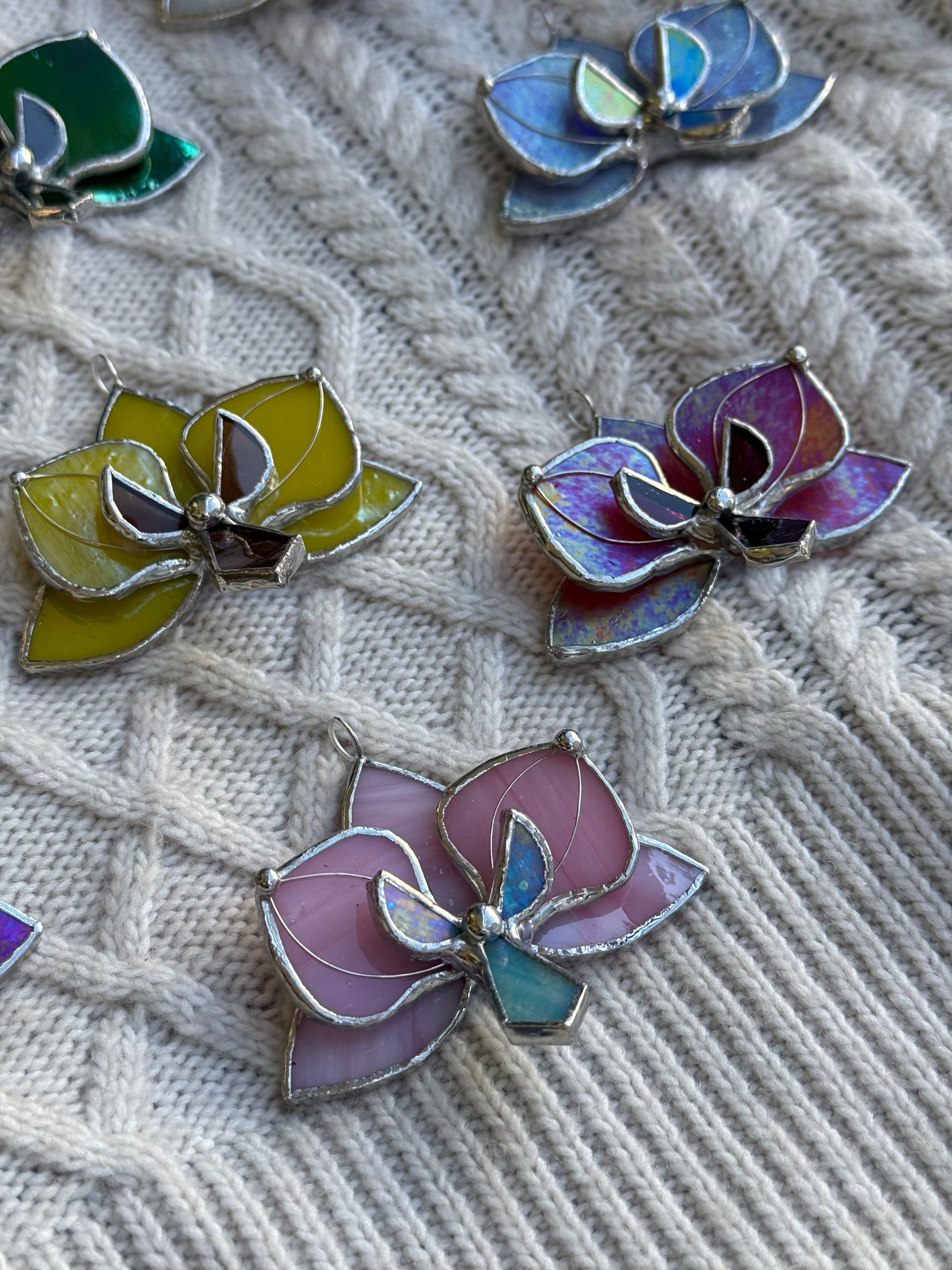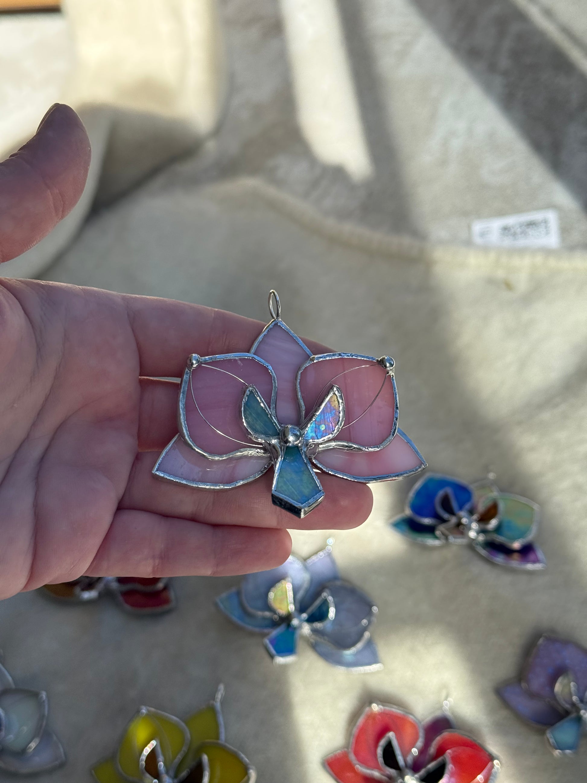 " . Orchid flower Pink with veins, Stained glass Decorative ORNAMENT, Christmas decoration, Suncatcher