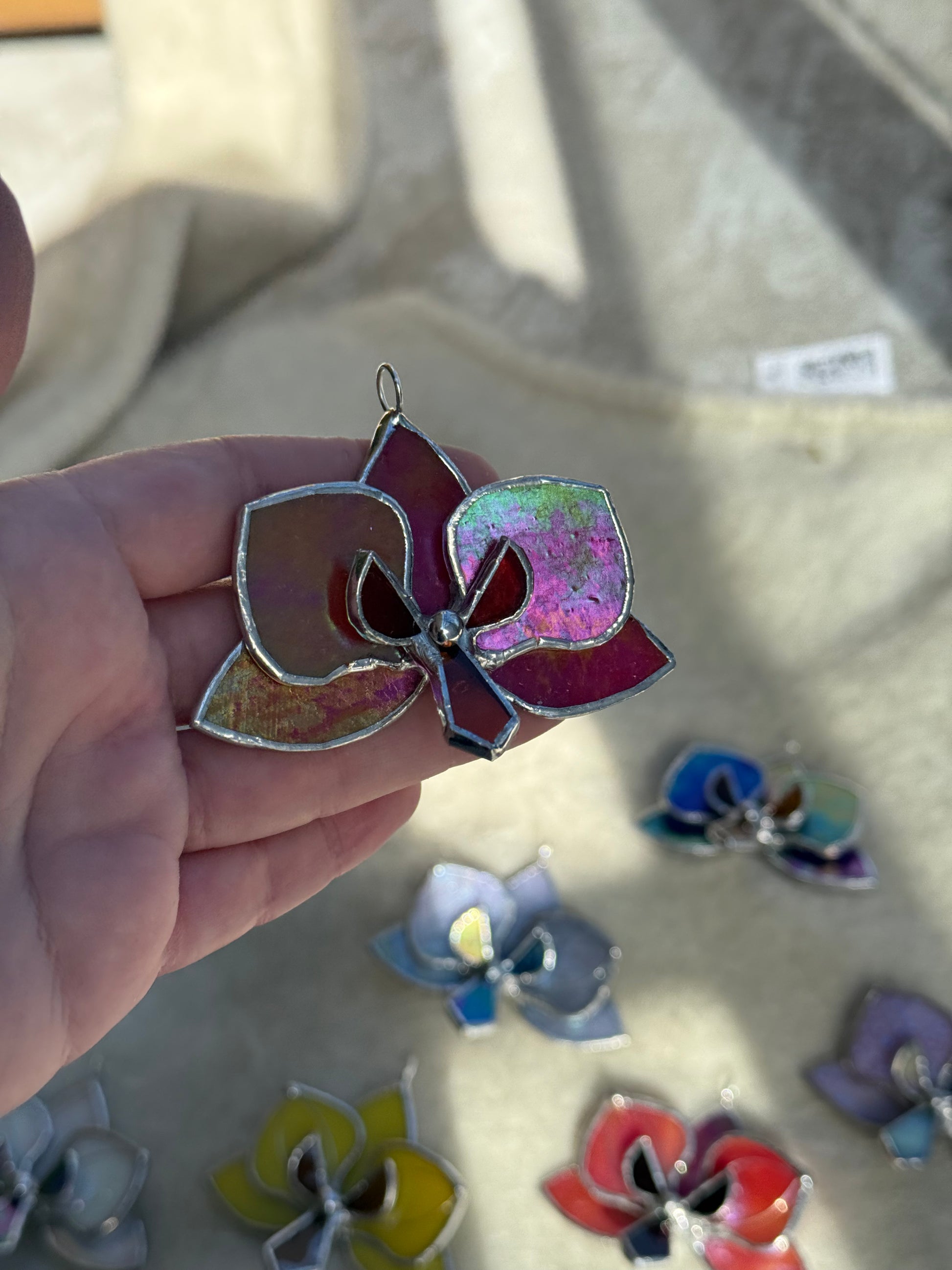 " . Orchid flower Red irid, Stained glass Decorative ORNAMENT, Christmas decoration, Suncatcher