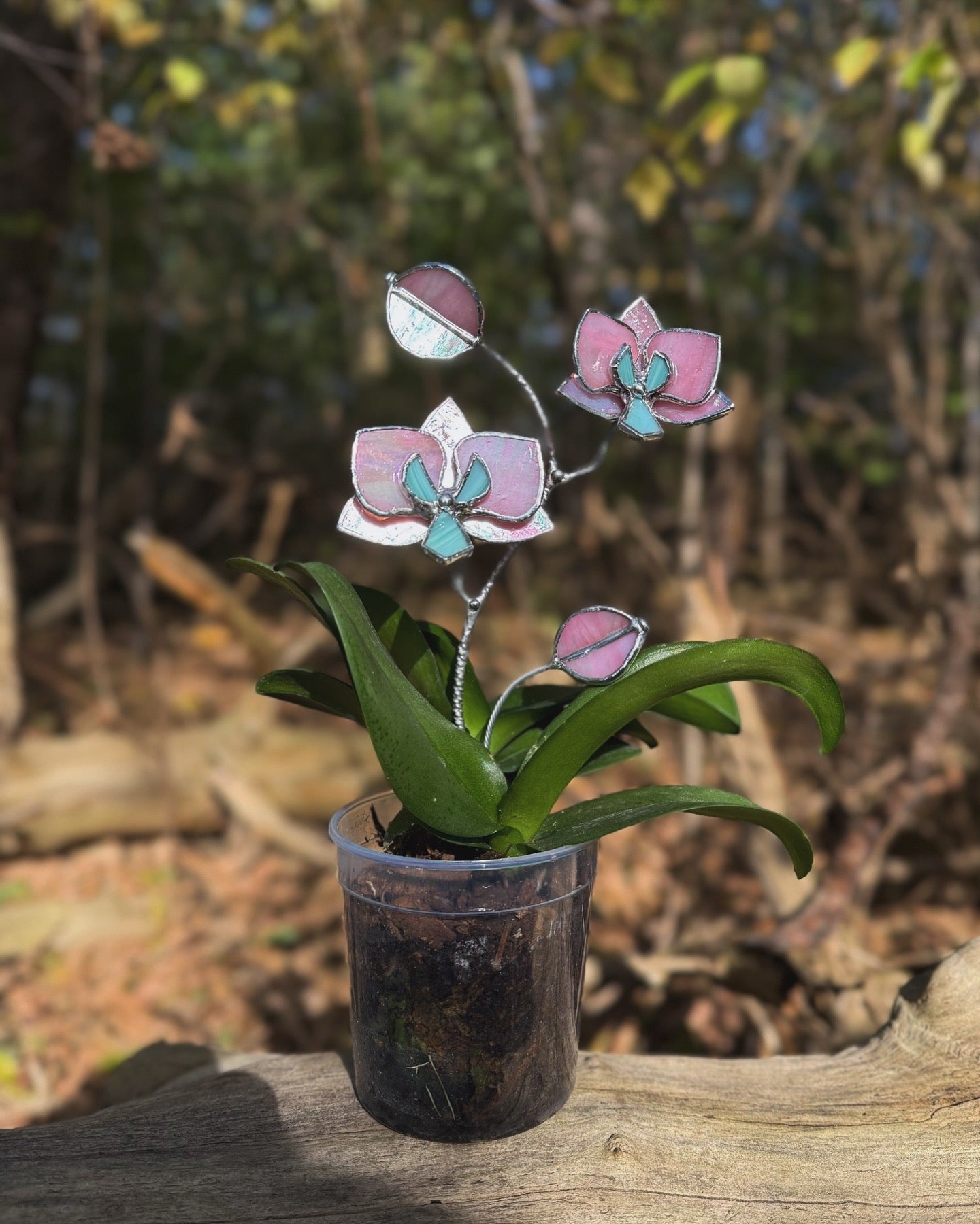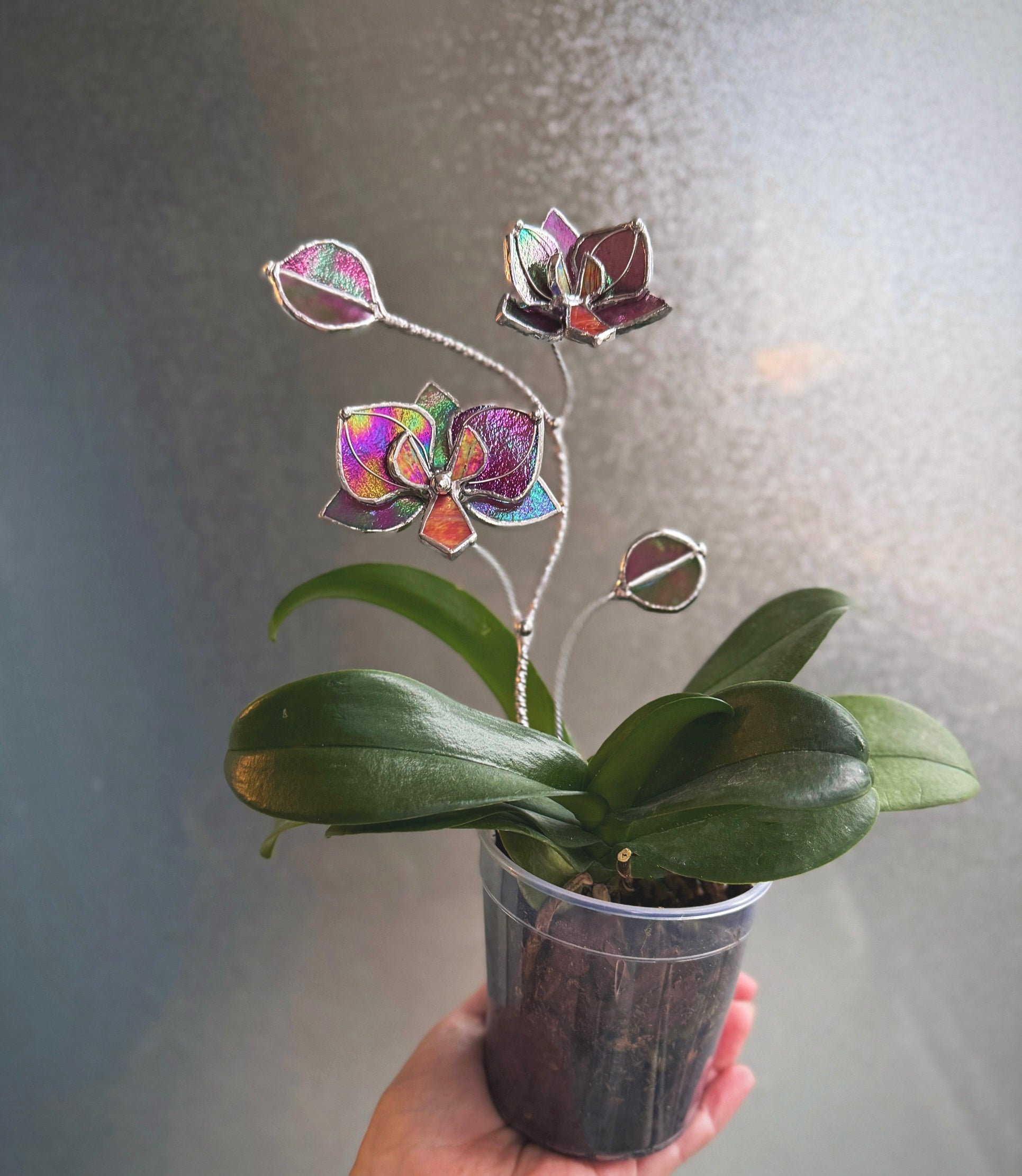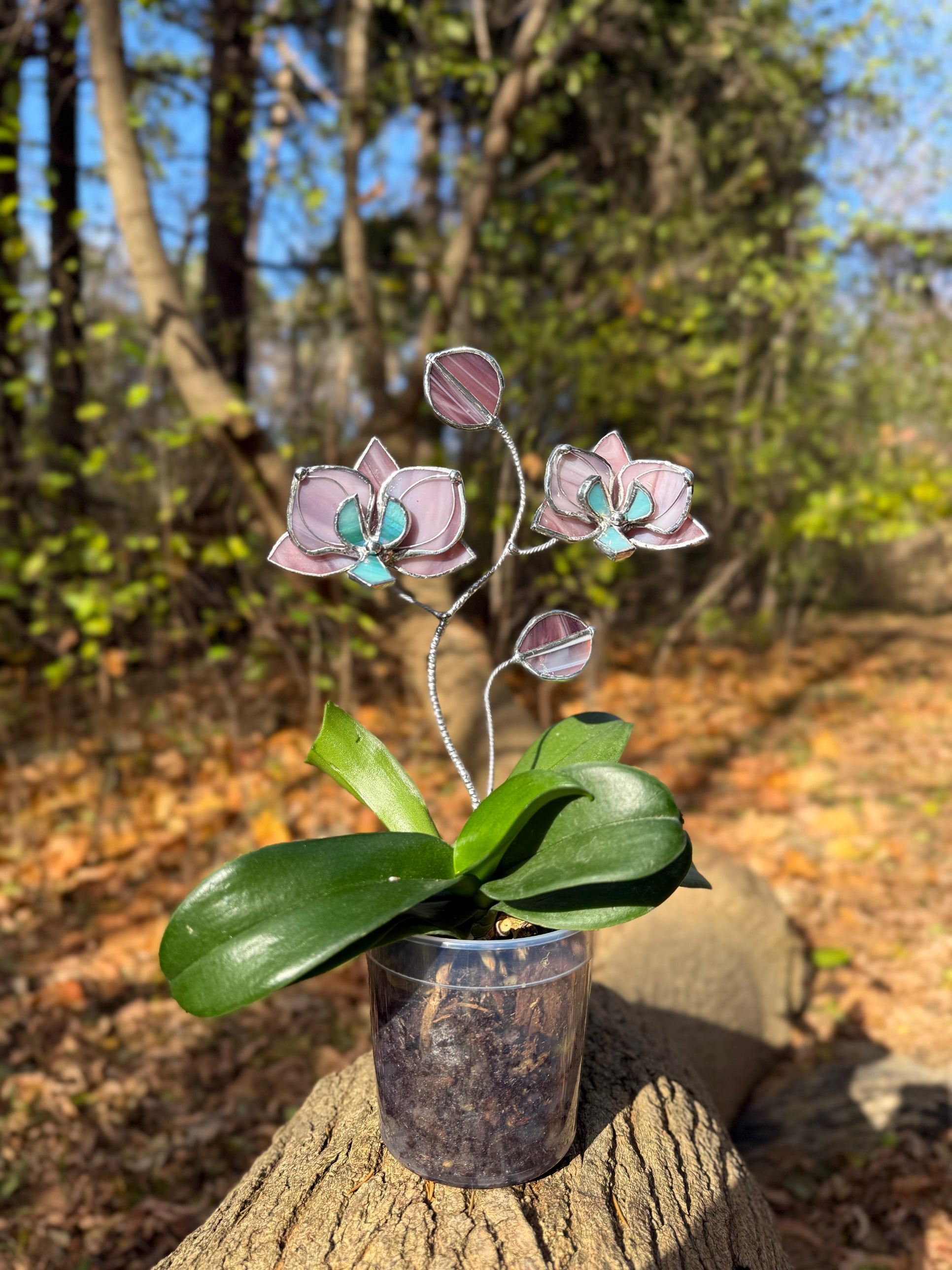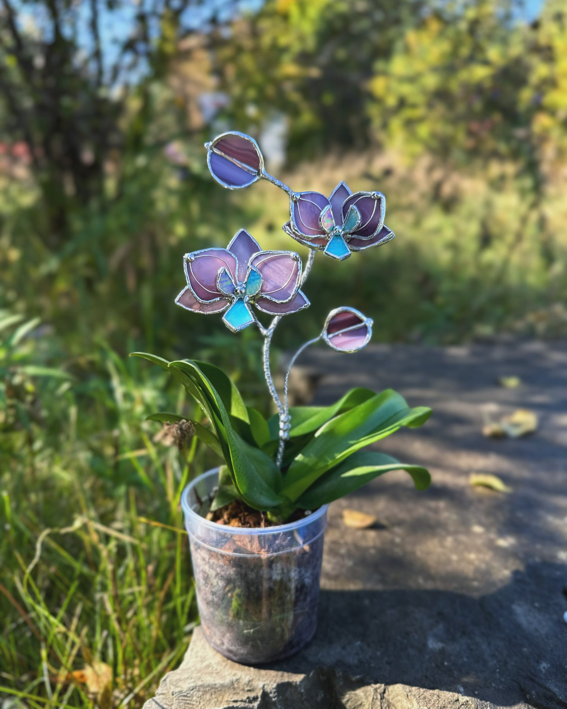 " . CHOOSE COLOR Orchid flower stick, Plant stake 2 flowers no pot” Stained glass tropical flower 3D, Sun catcher, Table plant, Garden stick, Outdoor and gardening decor