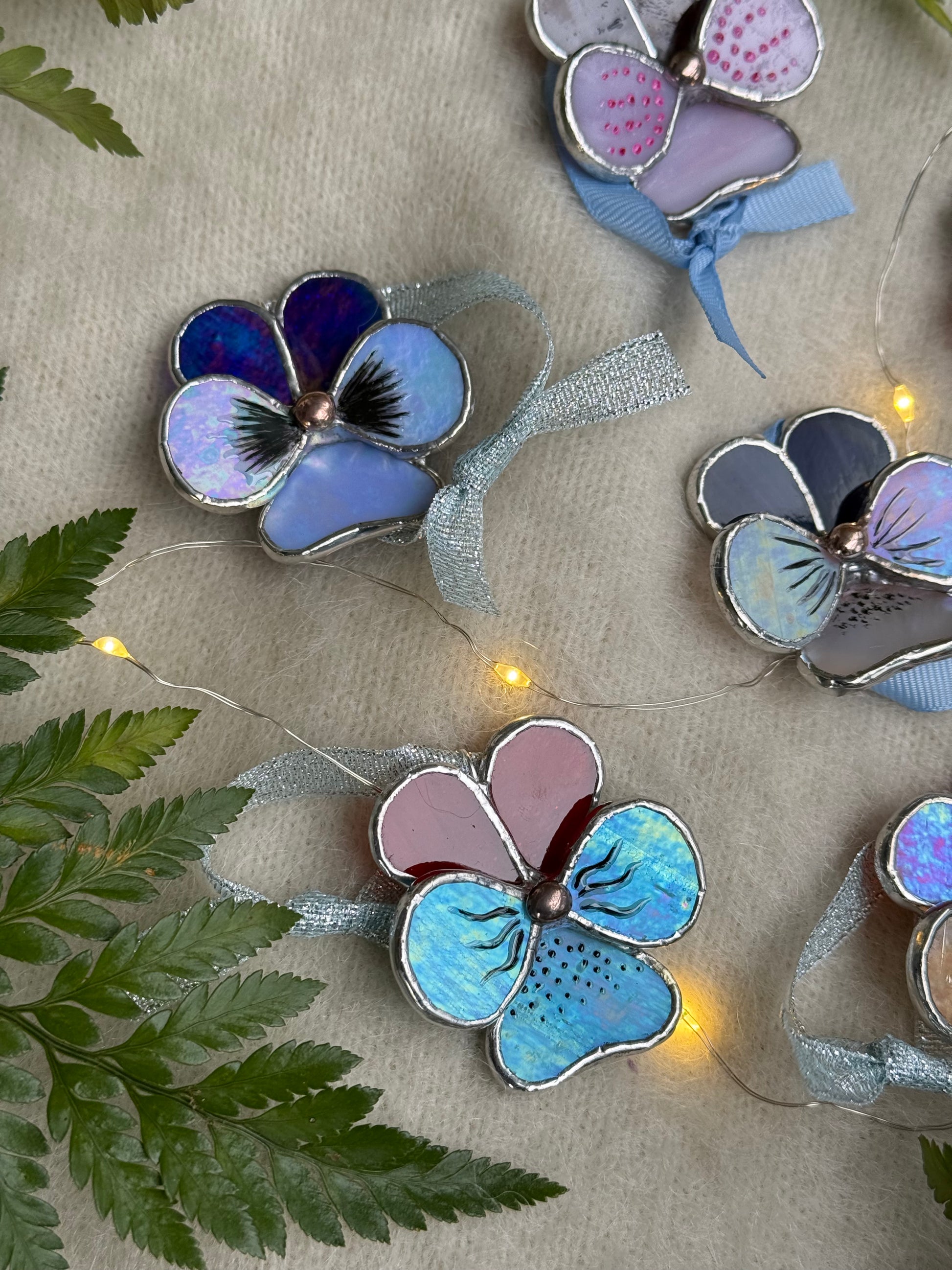 These beautiful 3D stained glass Christmas Pansy flower ornaments will be the perfect decoration for your Christmas tree! It can be a holiday gift for the office, a gift from Secret Santa, or you can buy a set and decorate your home! Handmade stained glass Christmas ornaments are always a great idea - each one is unique and made with great skill and love.