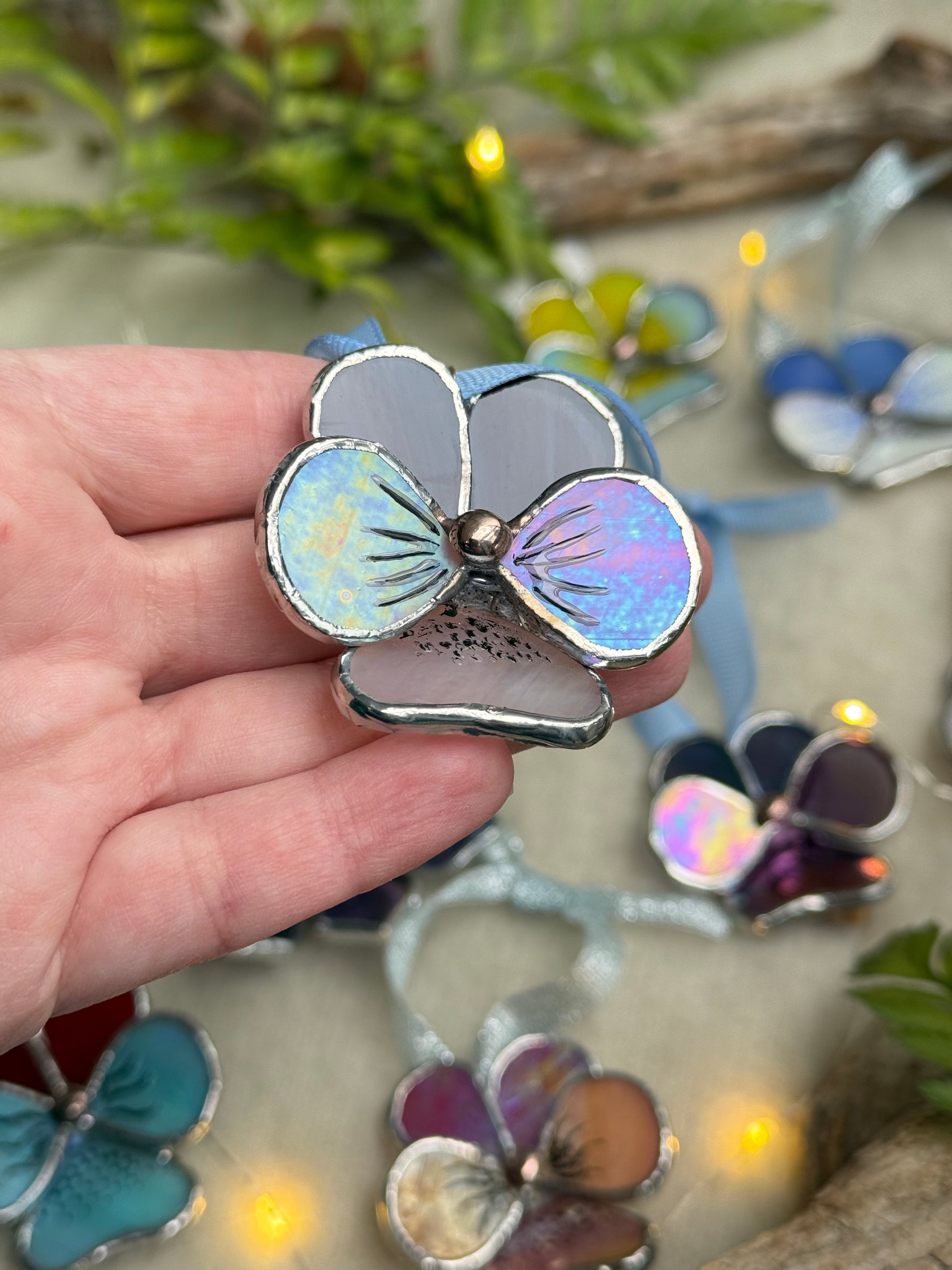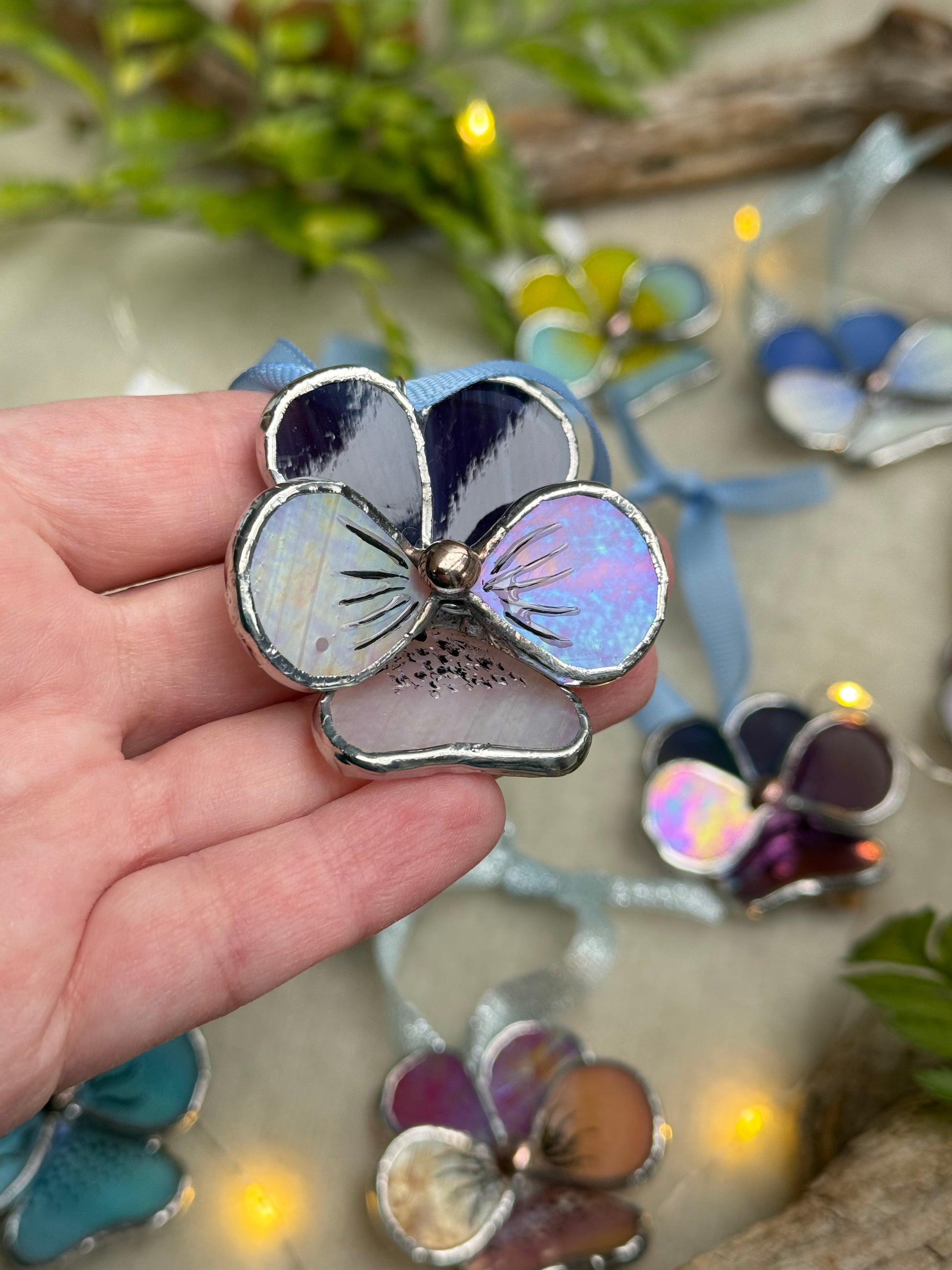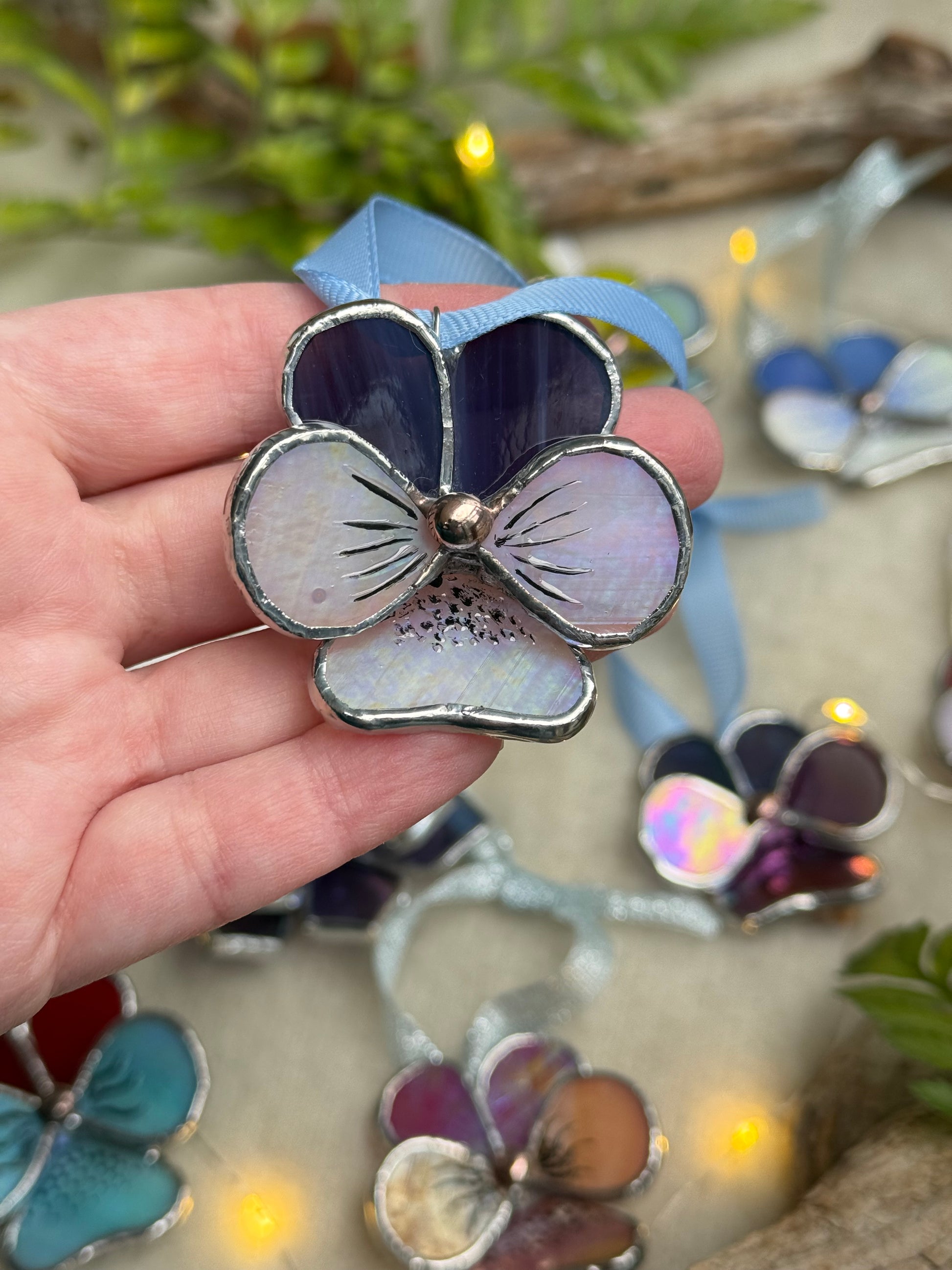These beautiful 3D stained glass Christmas Pansy flower ornaments will be the perfect decoration for your Christmas tree! It can be a holiday gift for the office, a gift from Secret Santa, or you can buy a set and decorate your home! Handmade stained glass Christmas ornaments are always a great idea - each one is unique and made with great skill and love.