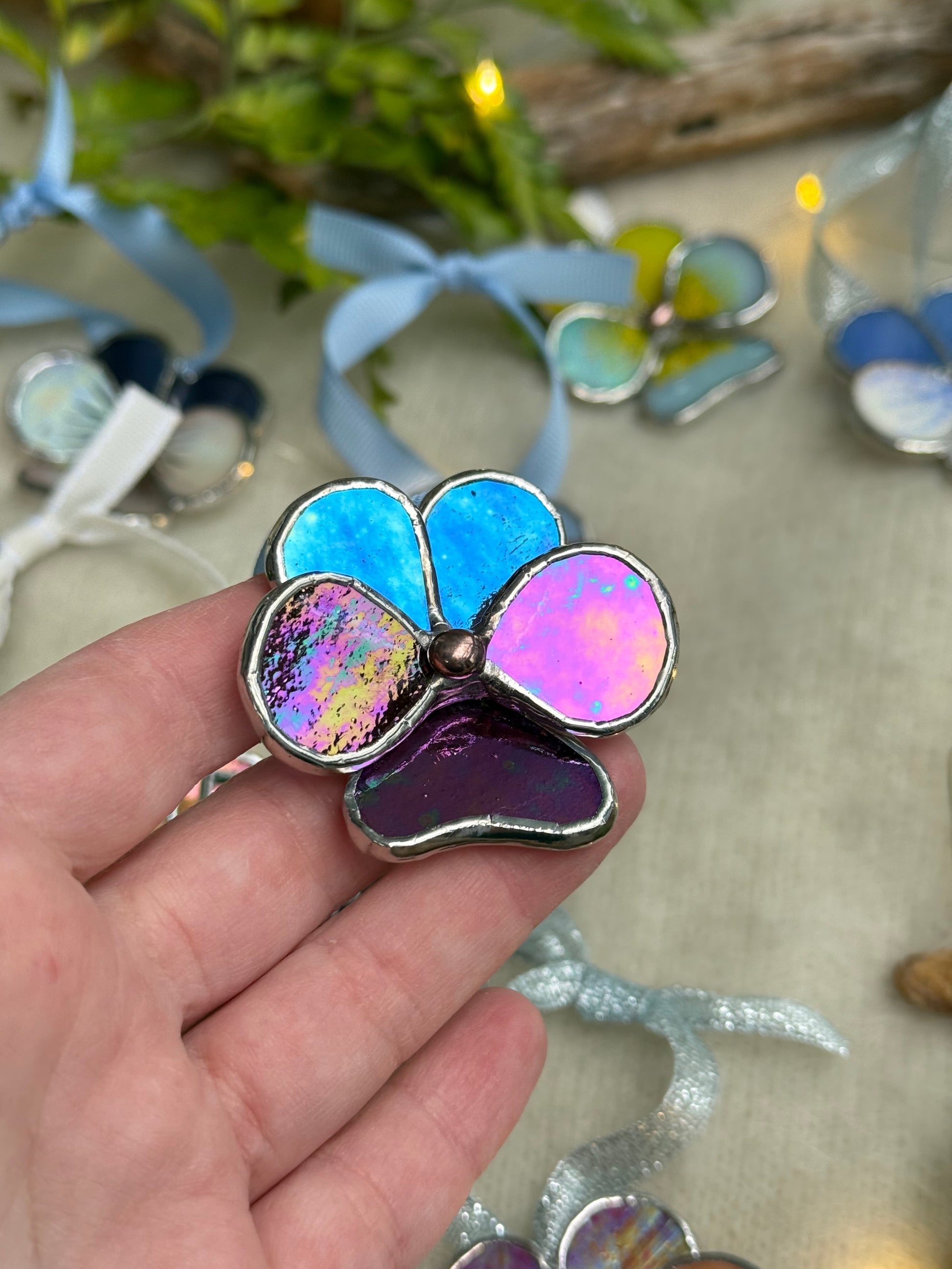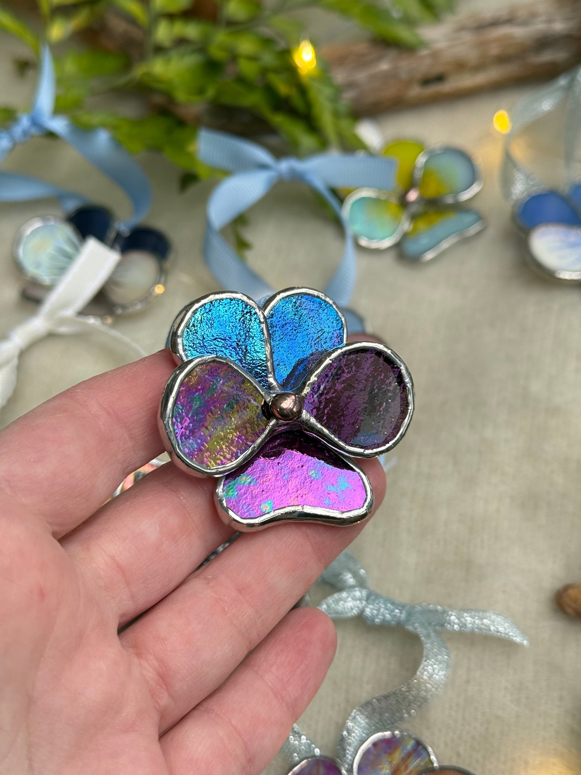 These beautiful 3D stained glass Christmas Pansy flower ornaments will be the perfect decoration for your Christmas tree! It can be a holiday gift for the office, a gift from Secret Santa, or you can buy a set and decorate your home! Handmade stained glass Christmas ornaments are always a great idea - each one is unique and made with great skill and love.