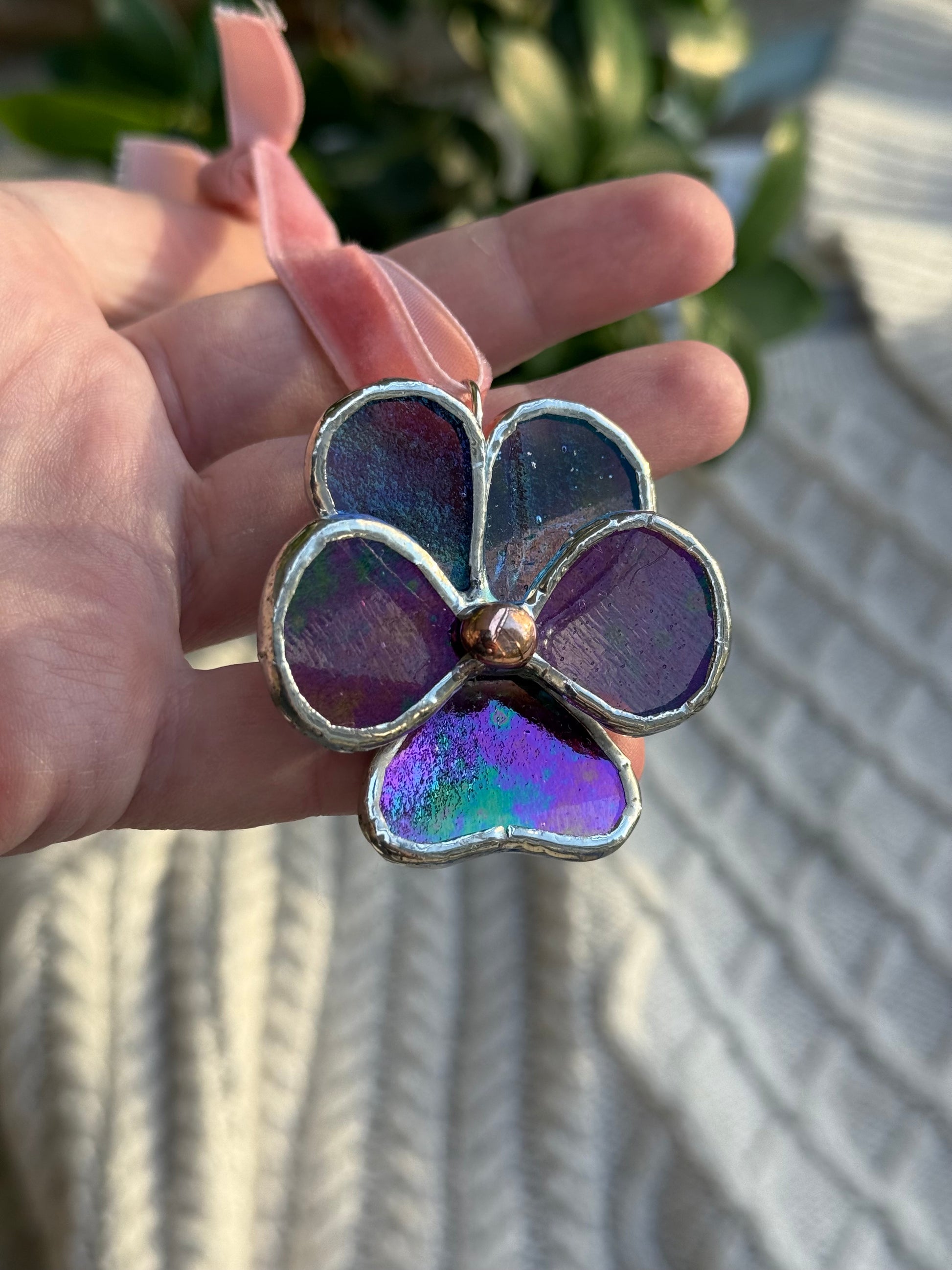 " . Pansy flower Plum irid transparent , Stained glass Decorative ORNAMENT, Christmas decoration, Suncatcher new