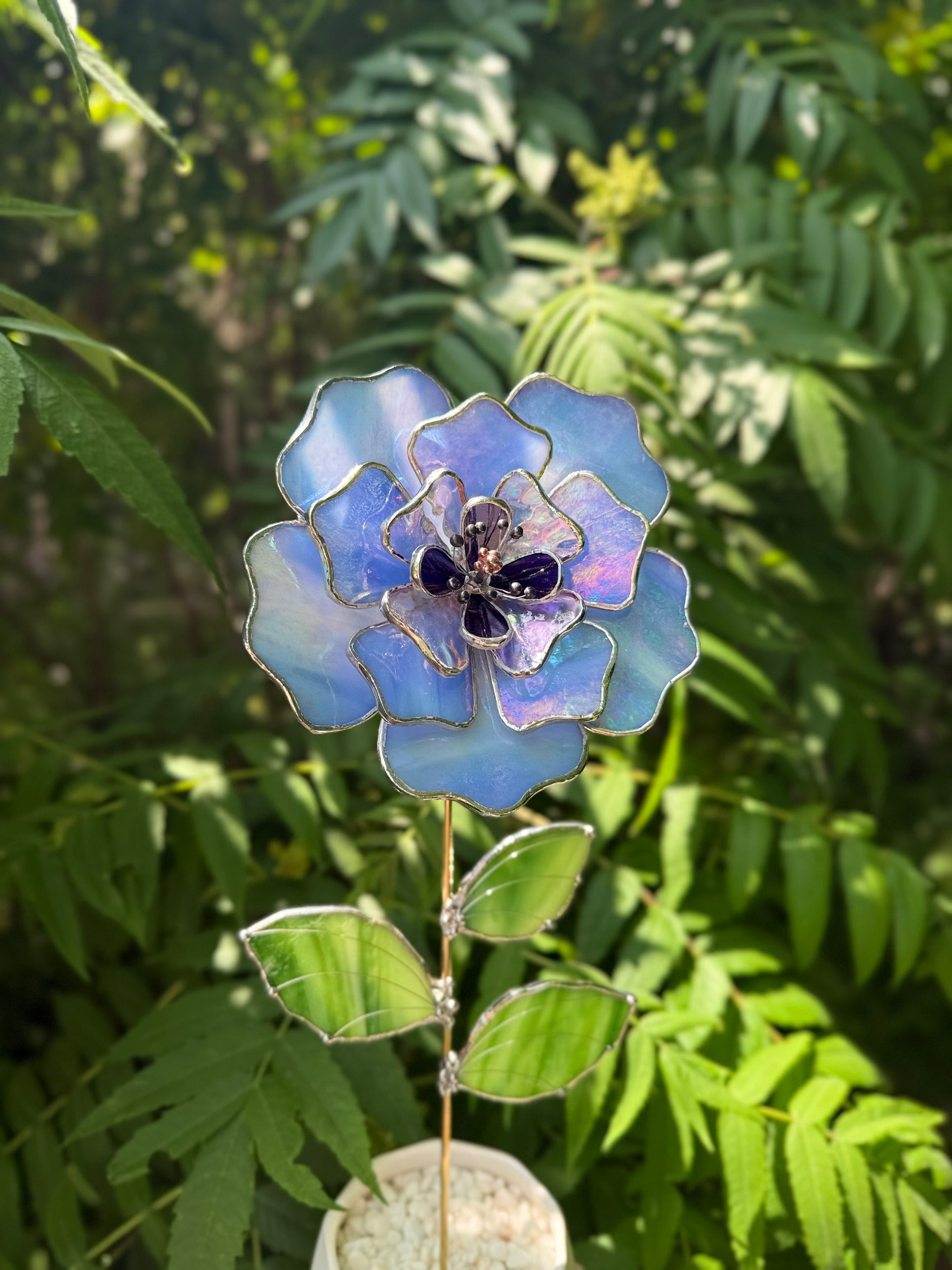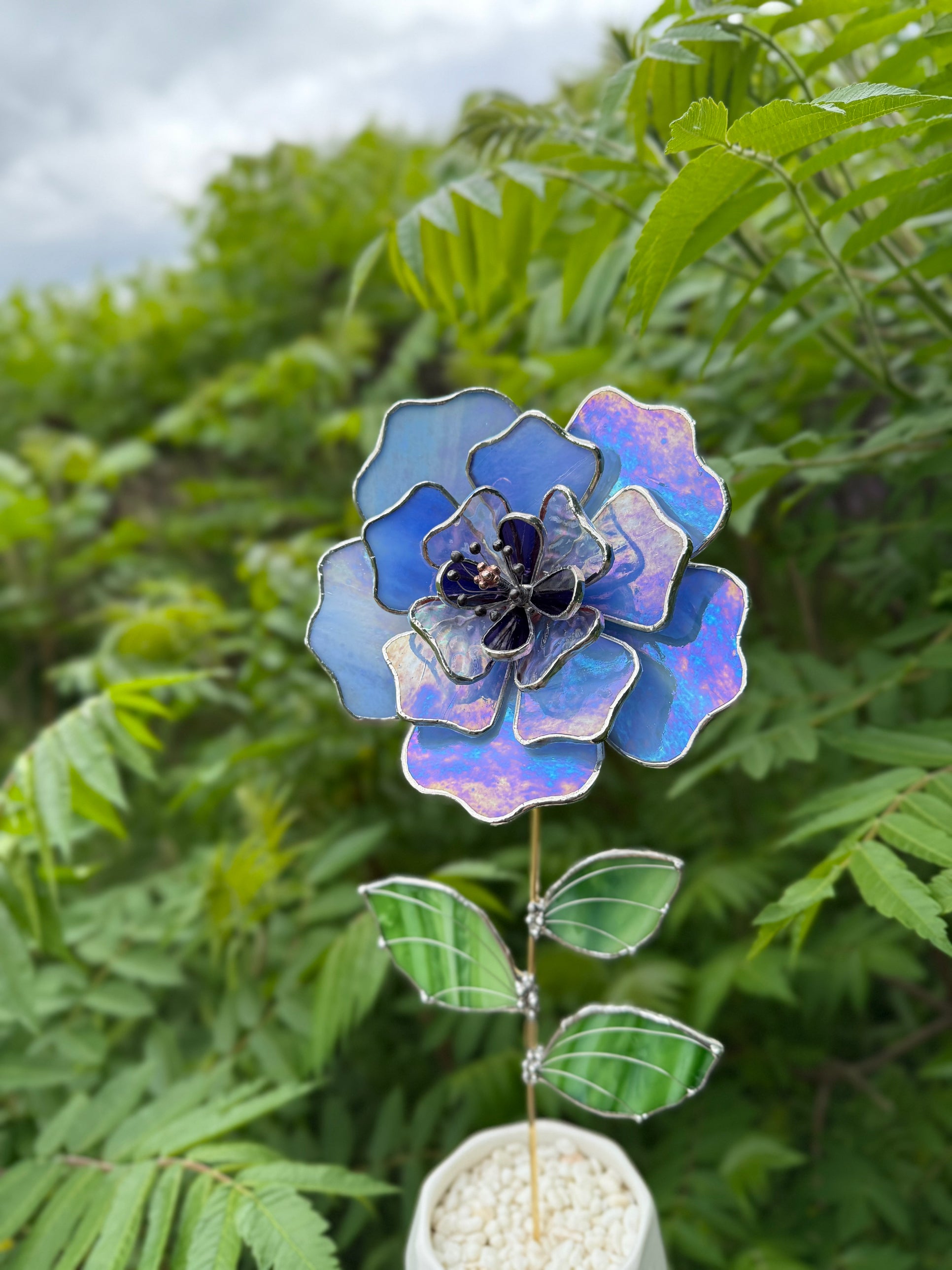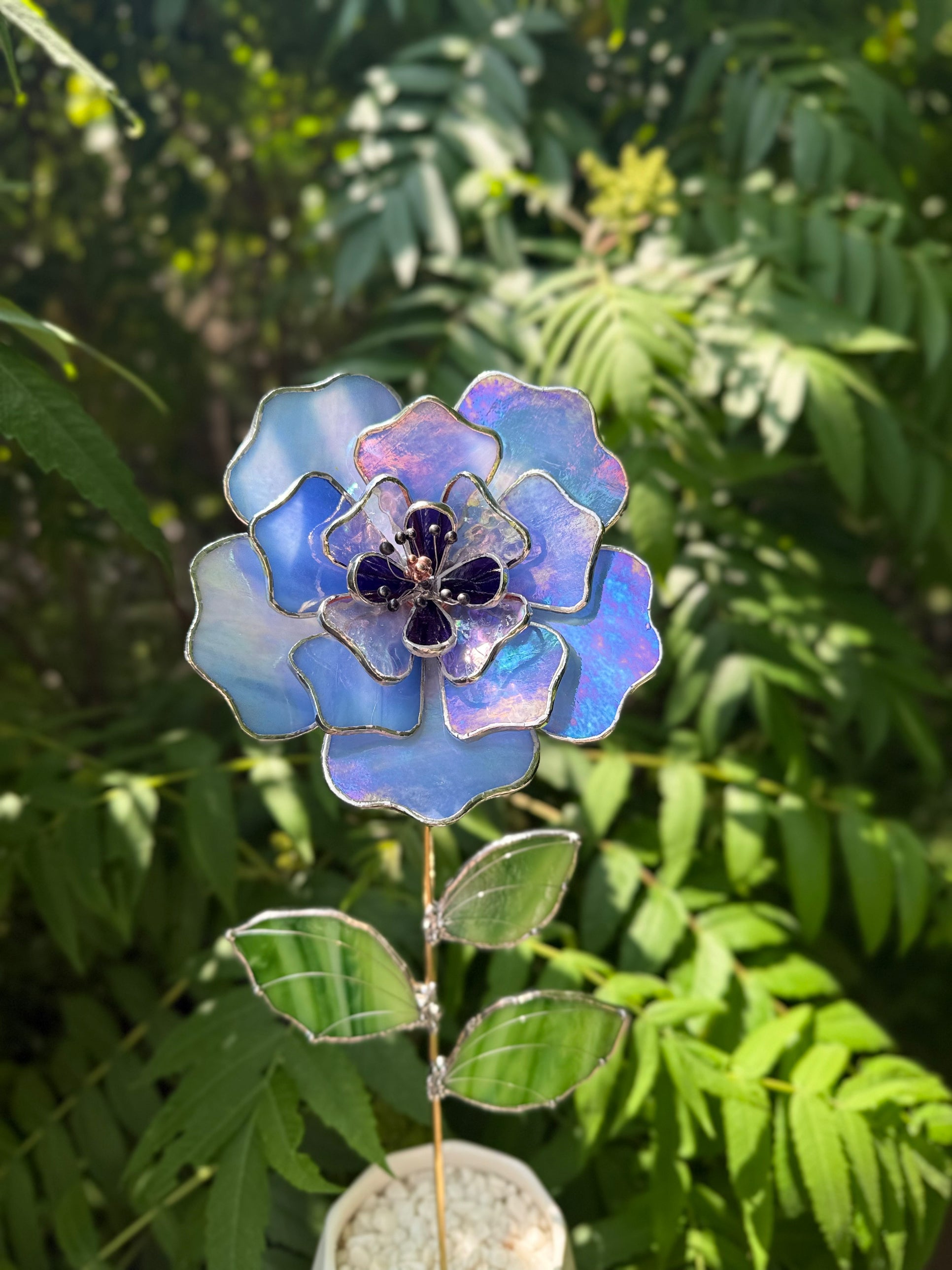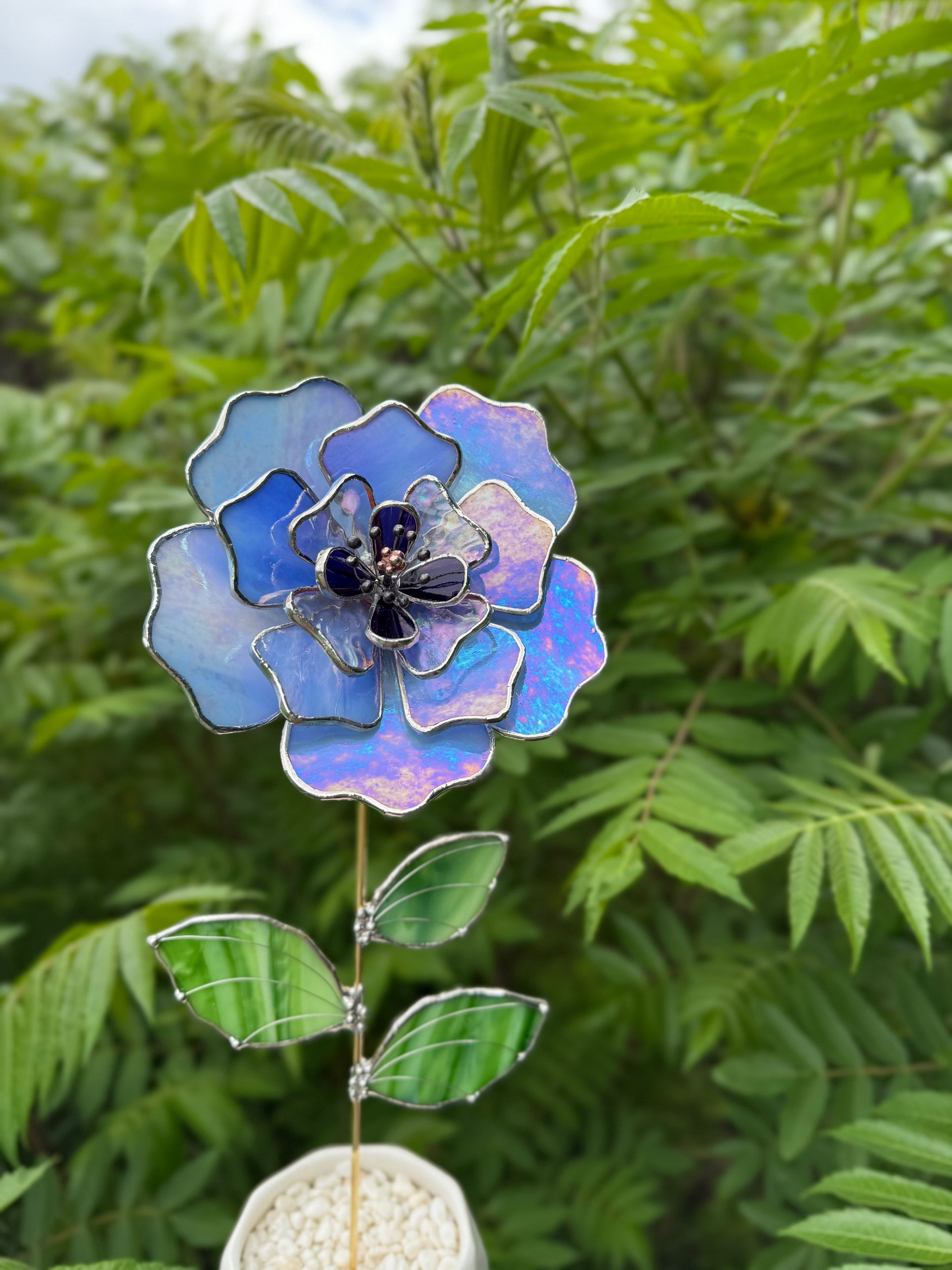 " . Blue lavender Peony Iridescent" Stained glass tropical flower 3D, Sun catcher, Table plant, Garden stake, wedding decor, Christmas gift, available