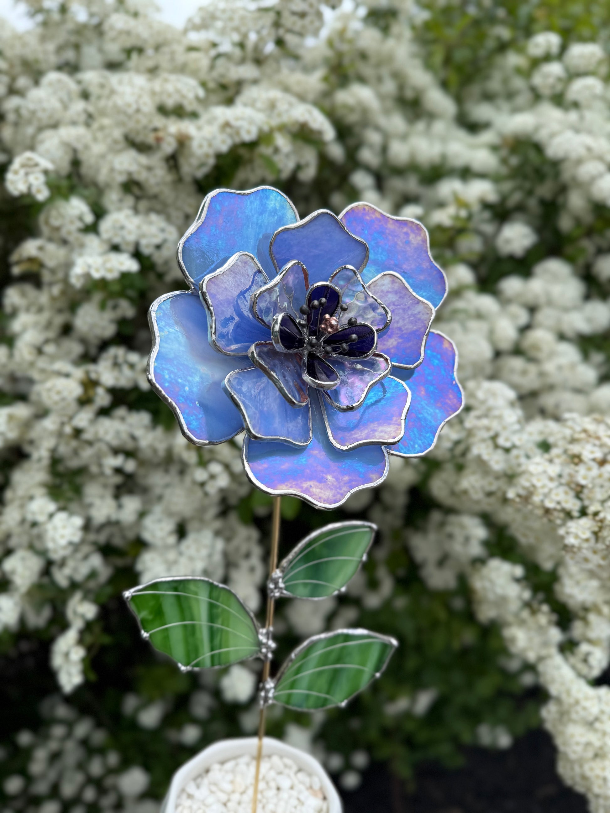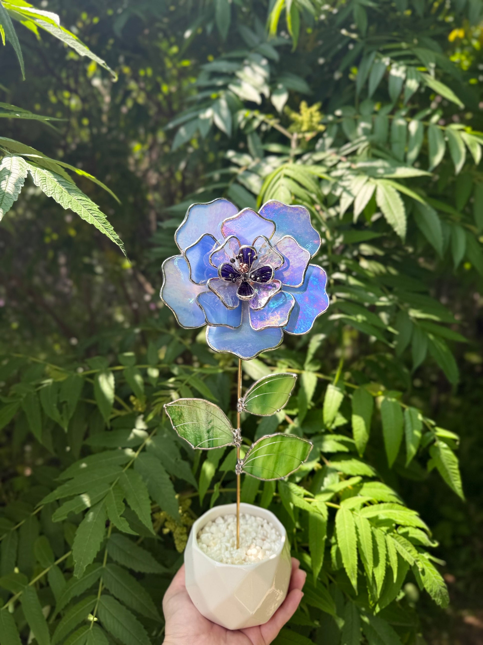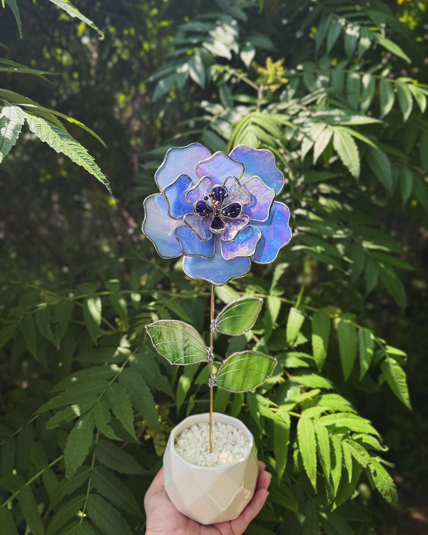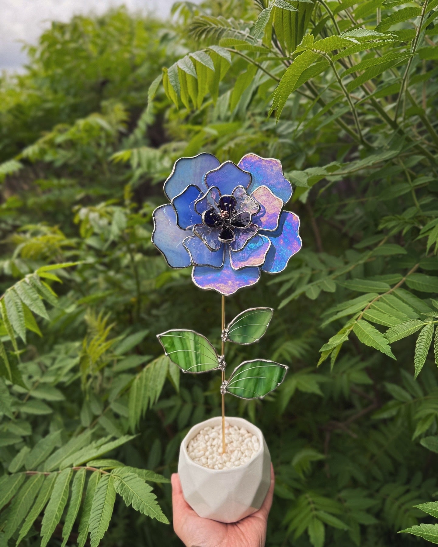 " . Blue lavender Peony Iridescent" Stained glass tropical flower 3D, Sun catcher, Table plant, Garden stake, wedding decor, Christmas gift, available