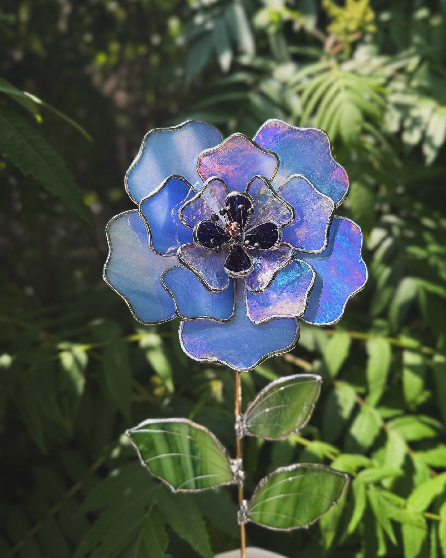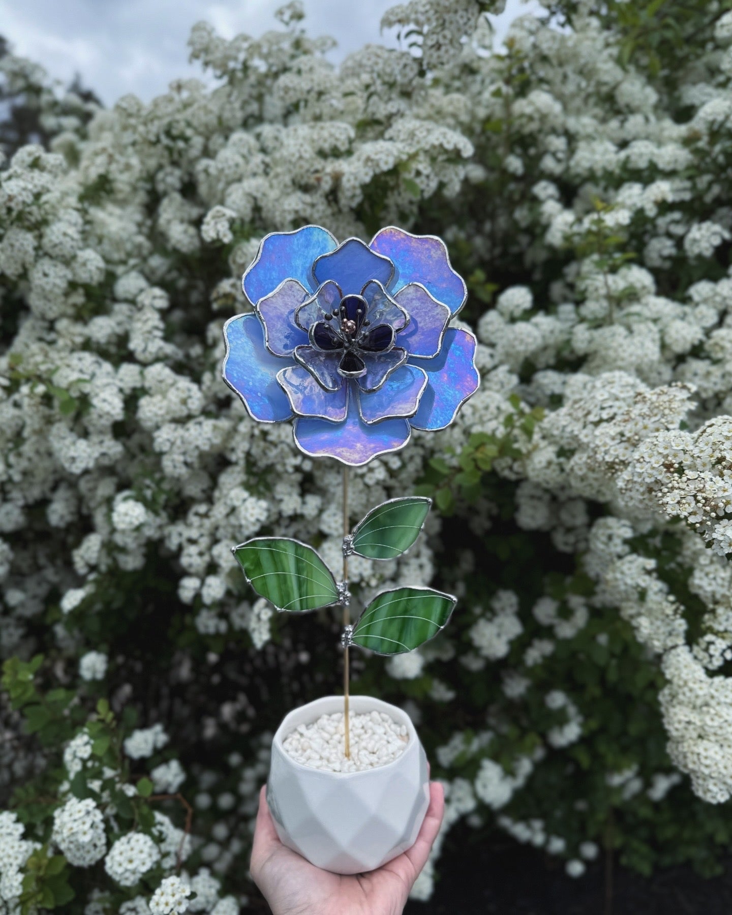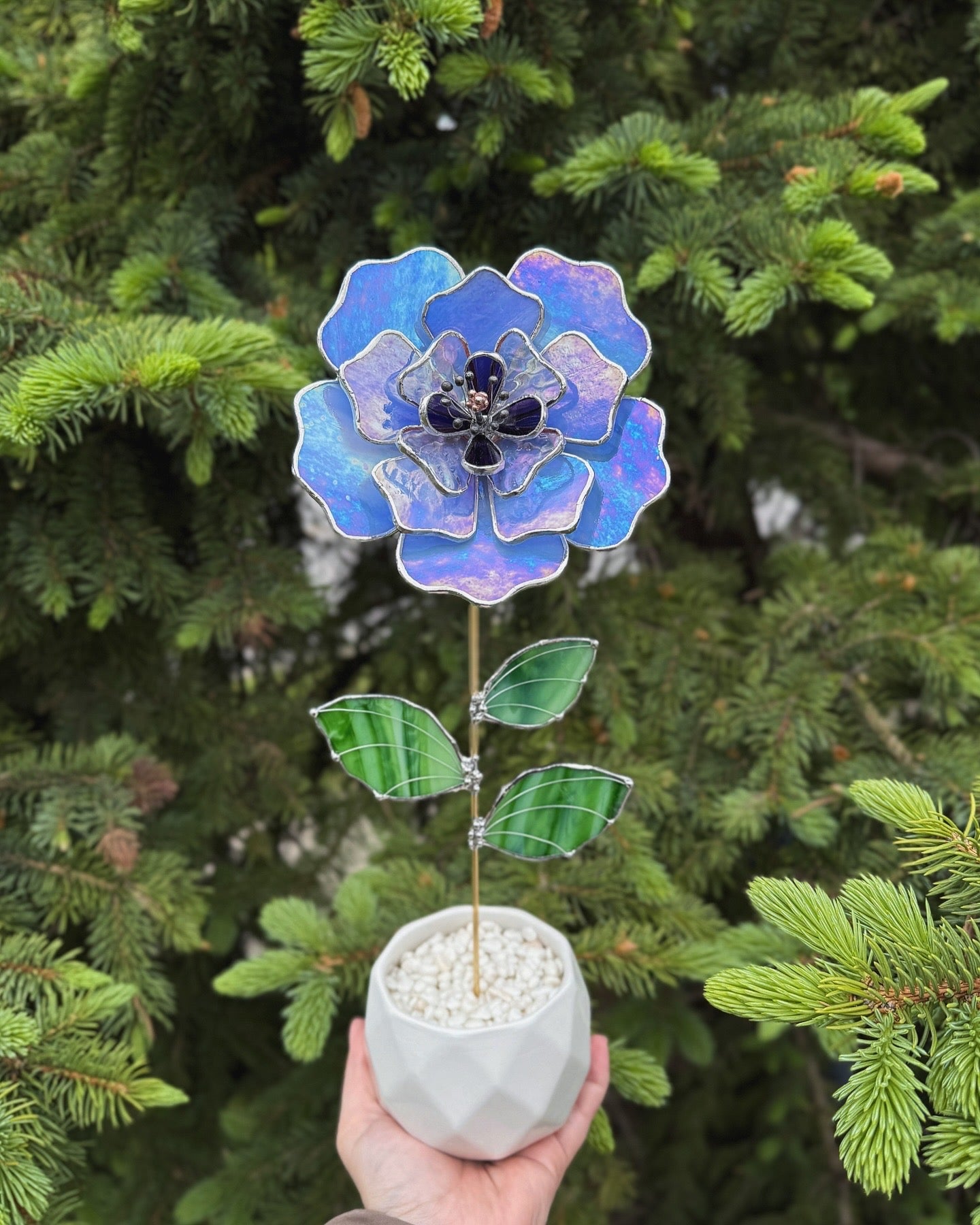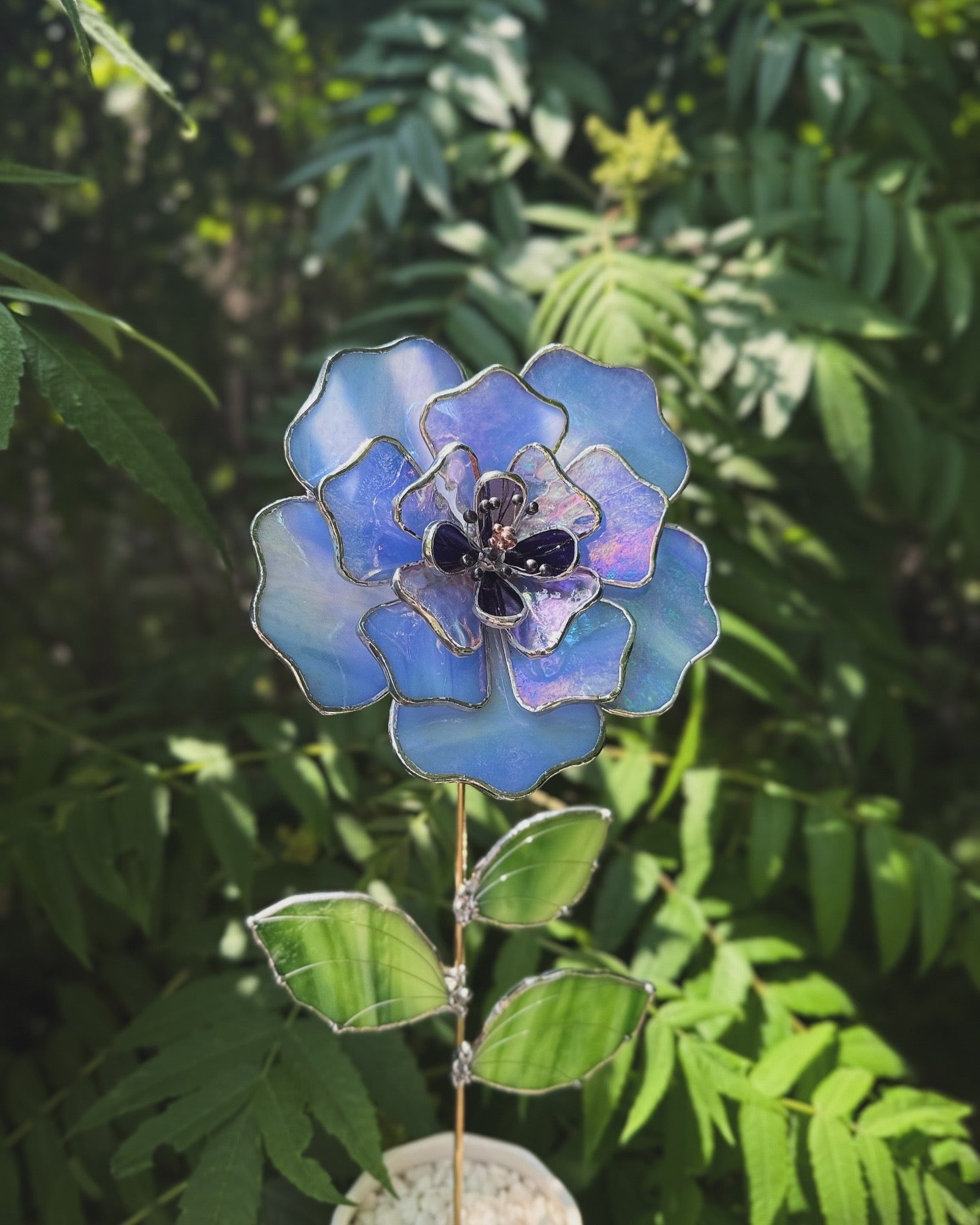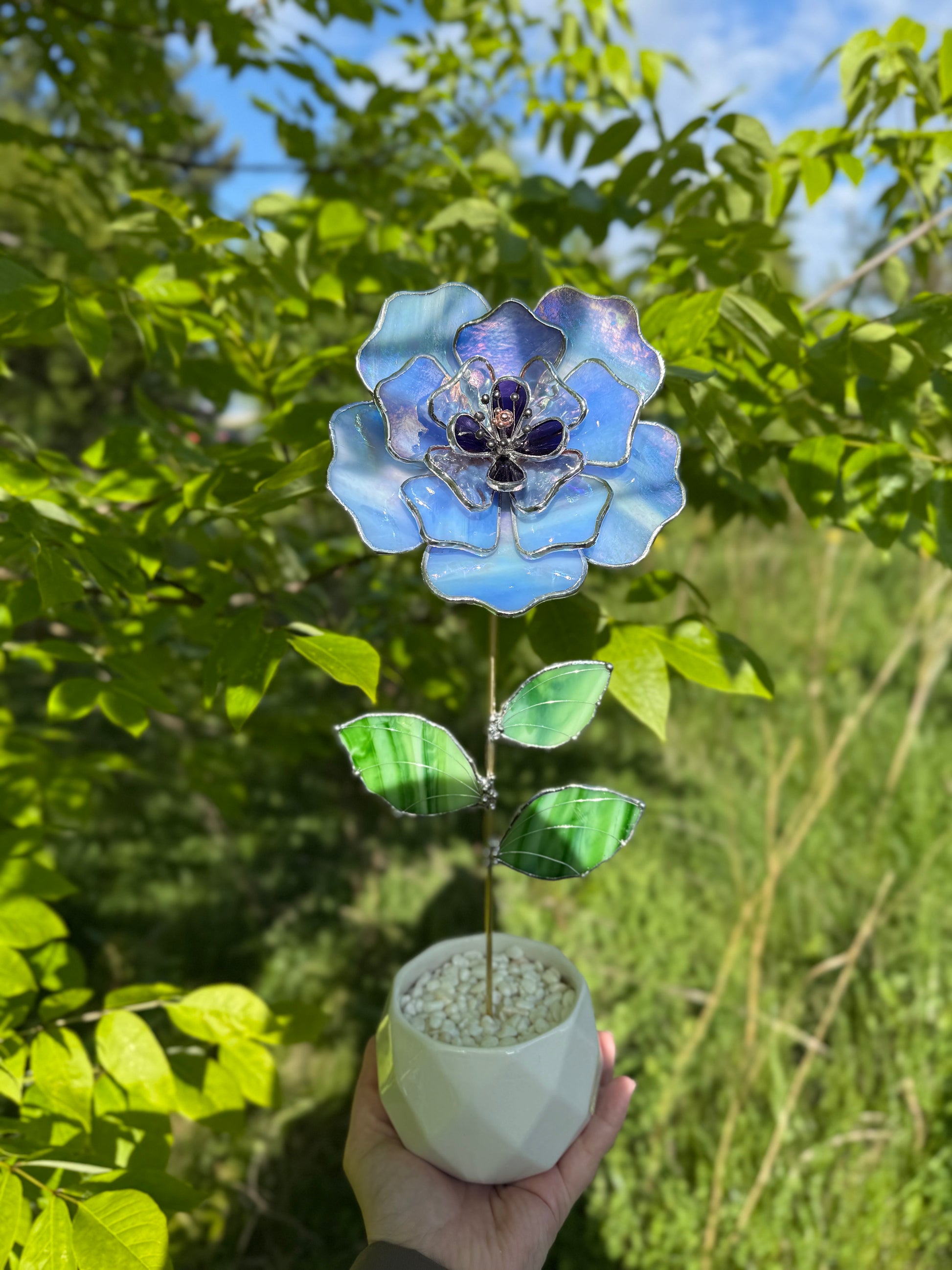" . Blue lavender Peony Iridescent" Stained glass tropical flower 3D, Sun catcher, Table plant, Garden stake, wedding decor, Christmas gift, available