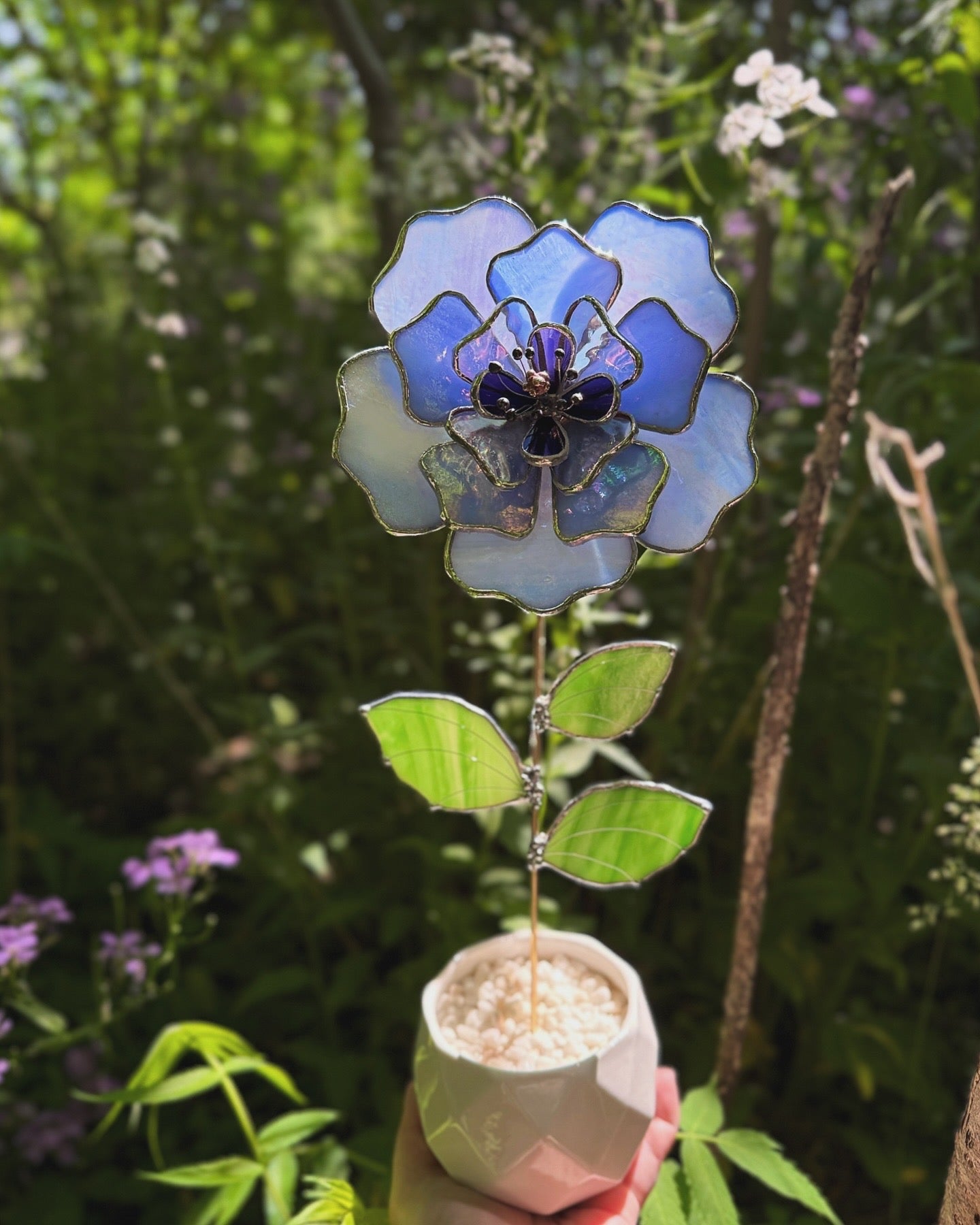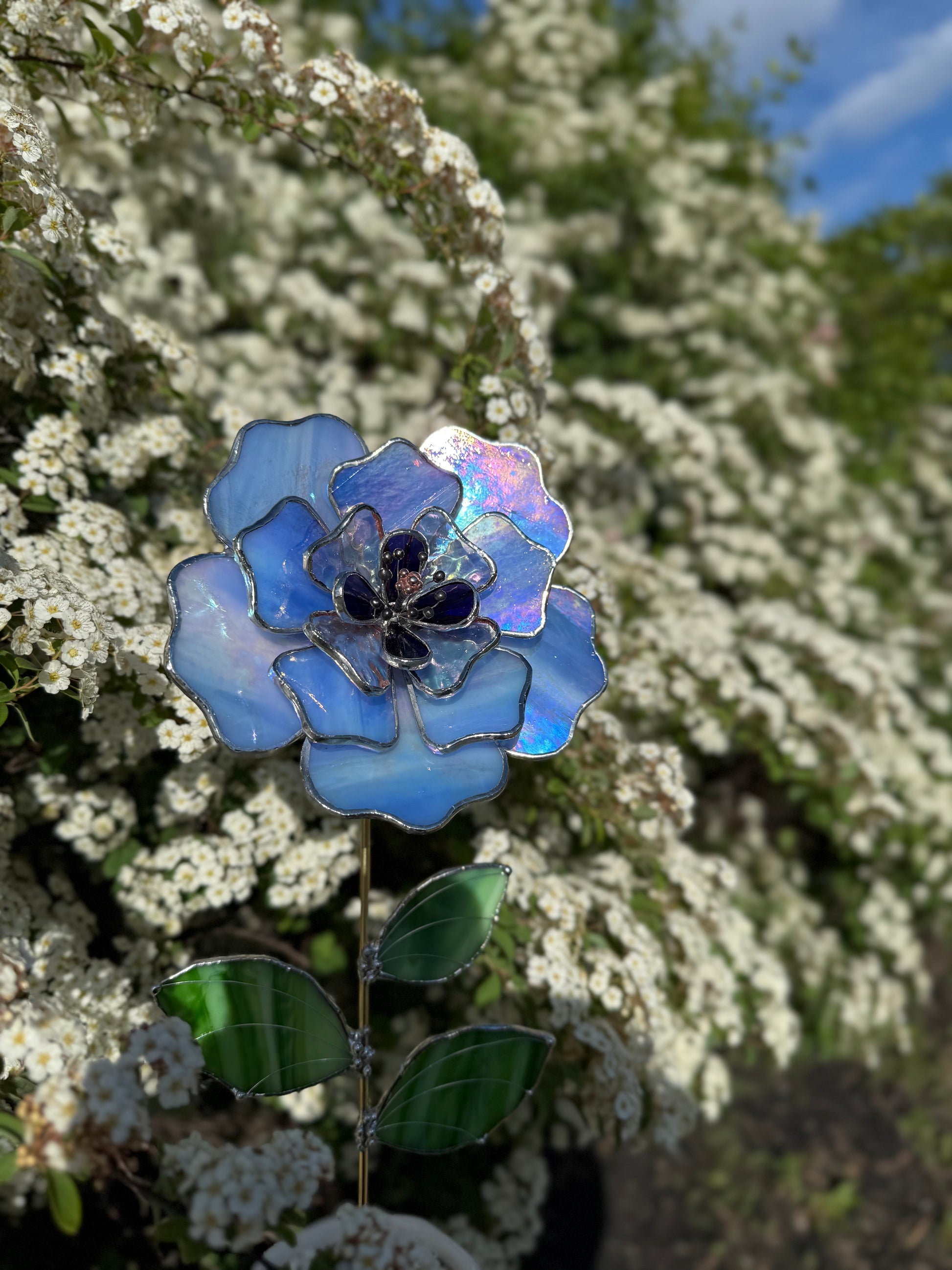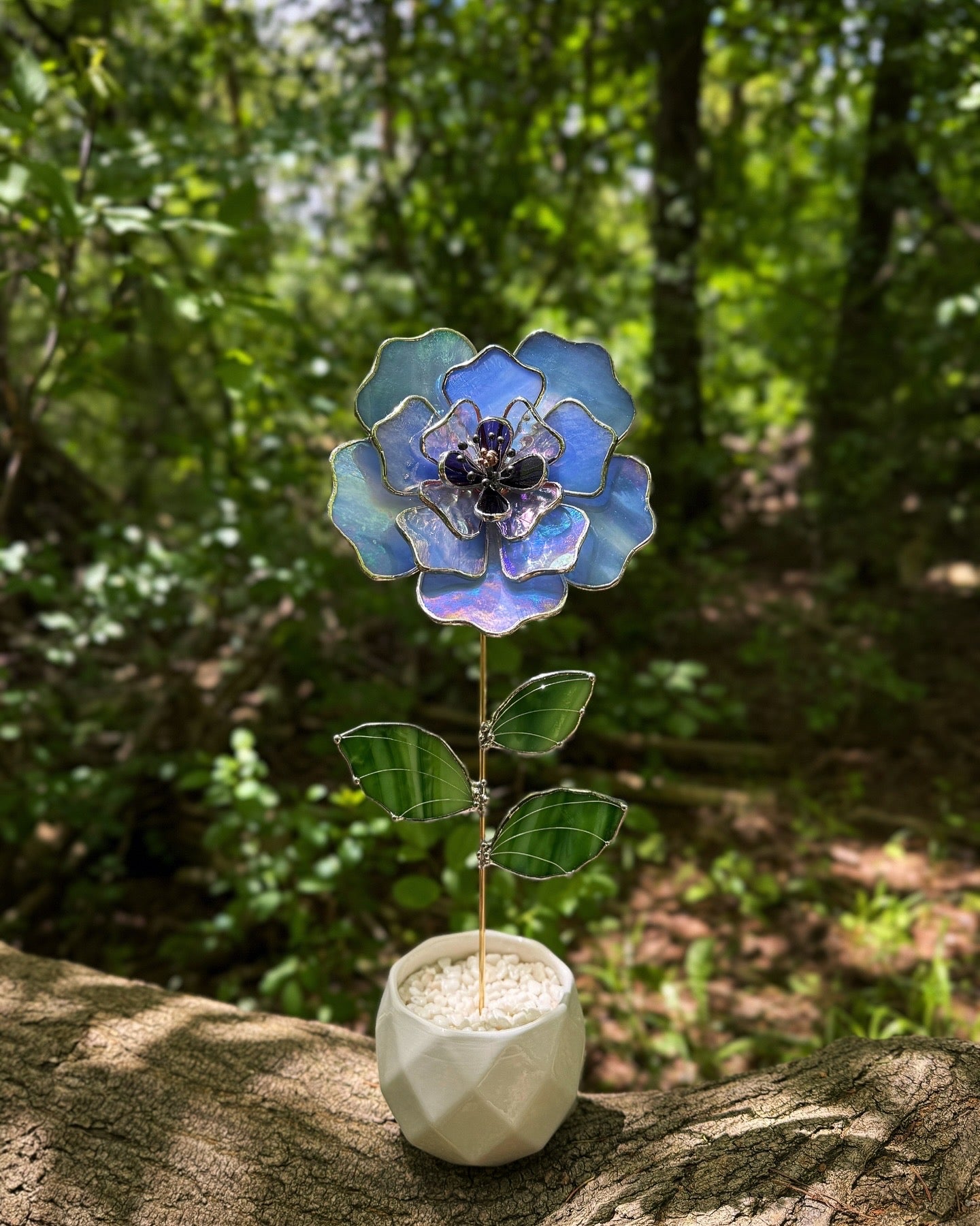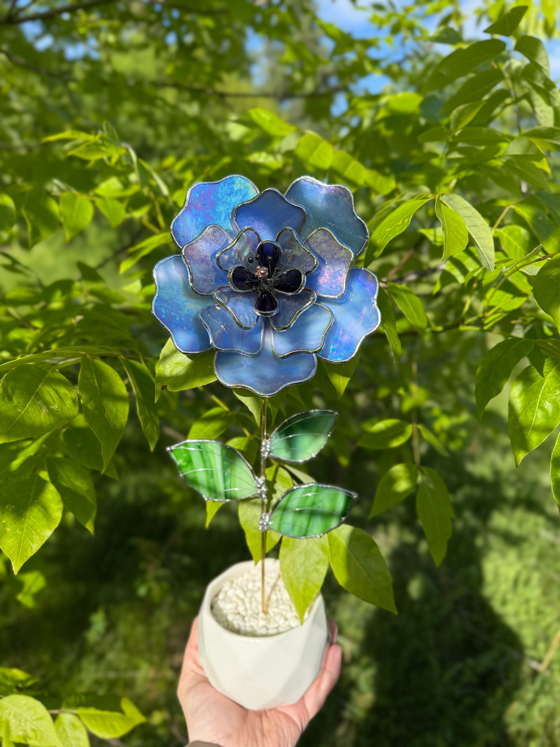 " . Blue lavender Peony Iridescent" Stained glass tropical flower 3D, Sun catcher, Table plant, Garden stake, wedding decor, Christmas gift, available