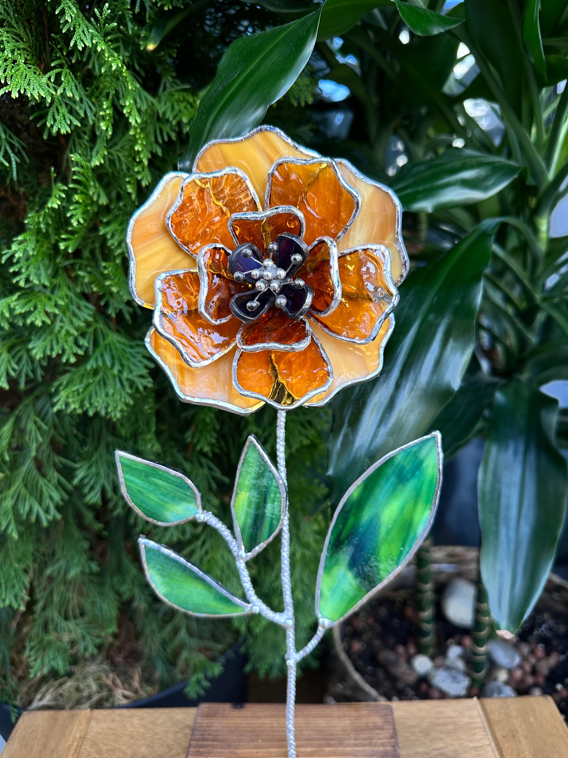 This unique hand crafted with stained glass 3D Peony Flower made of art glass. Completed with removable ceramic pot . The original design