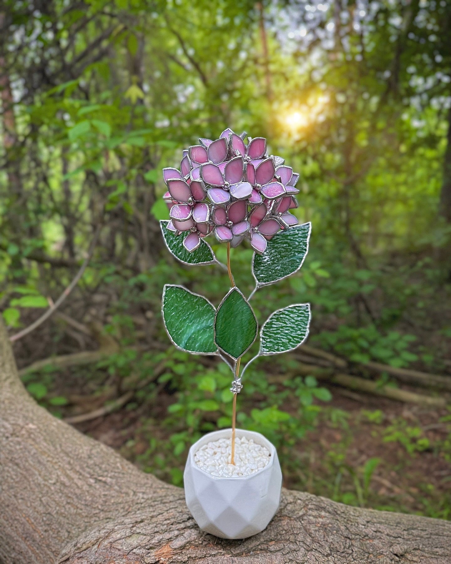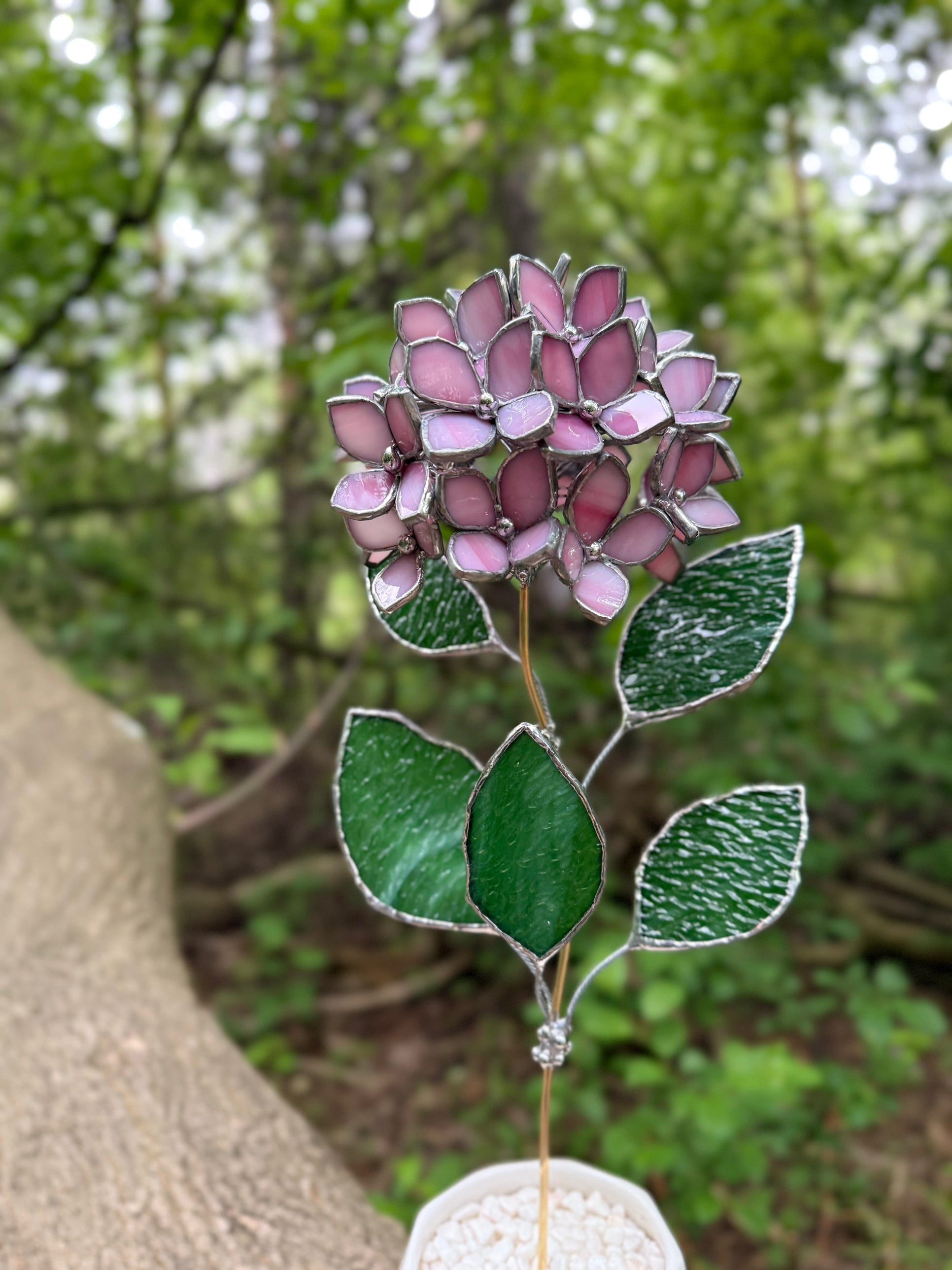 " . Baby Pink Hydrangea bunch in the pot”, Stained glass tropical flower