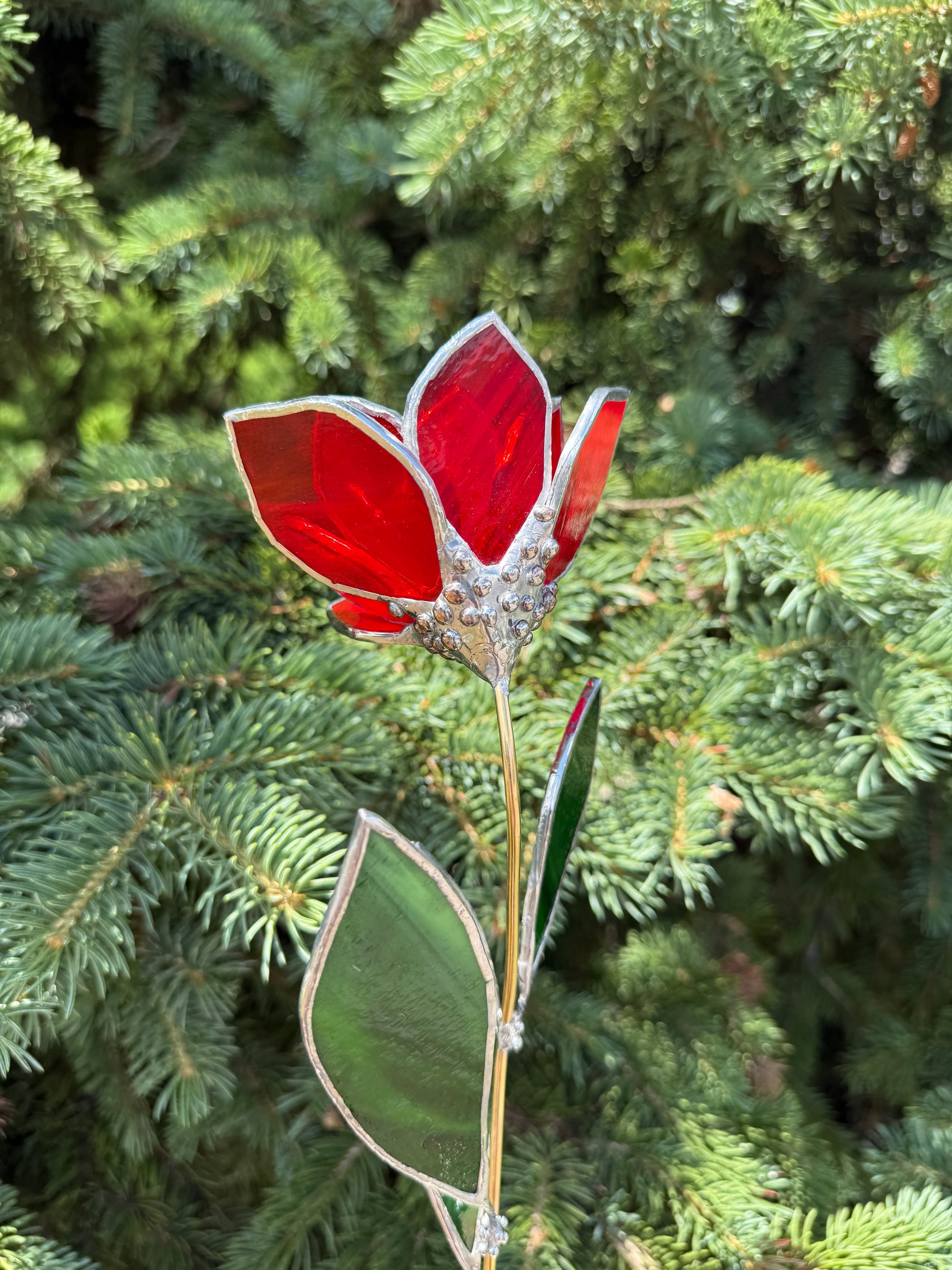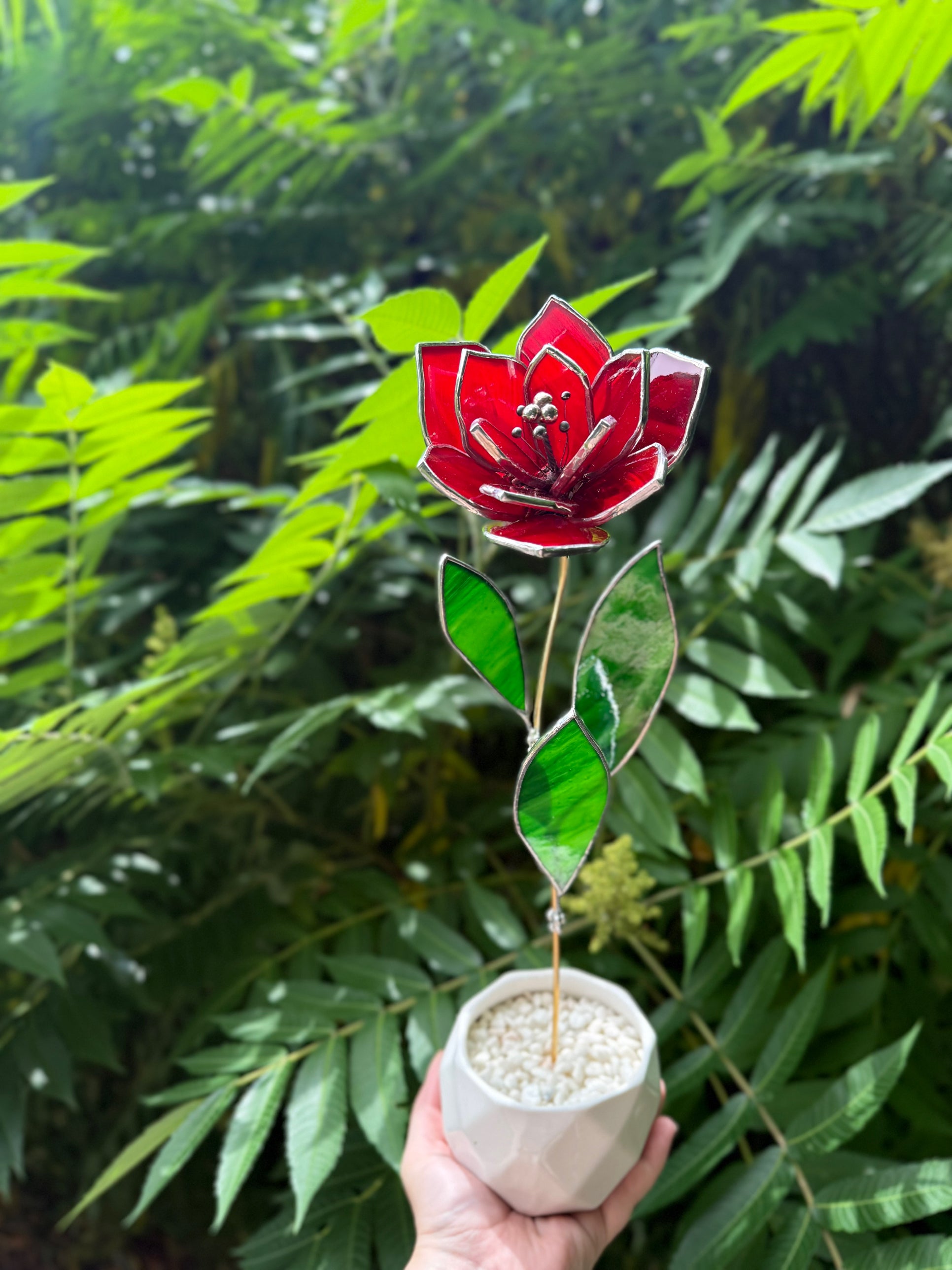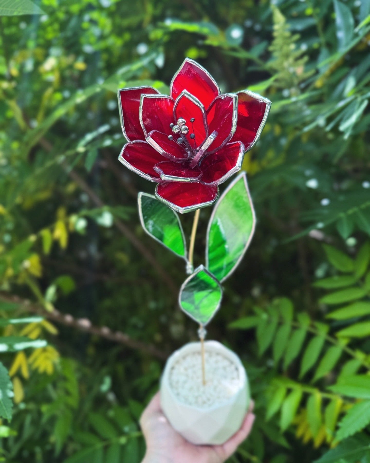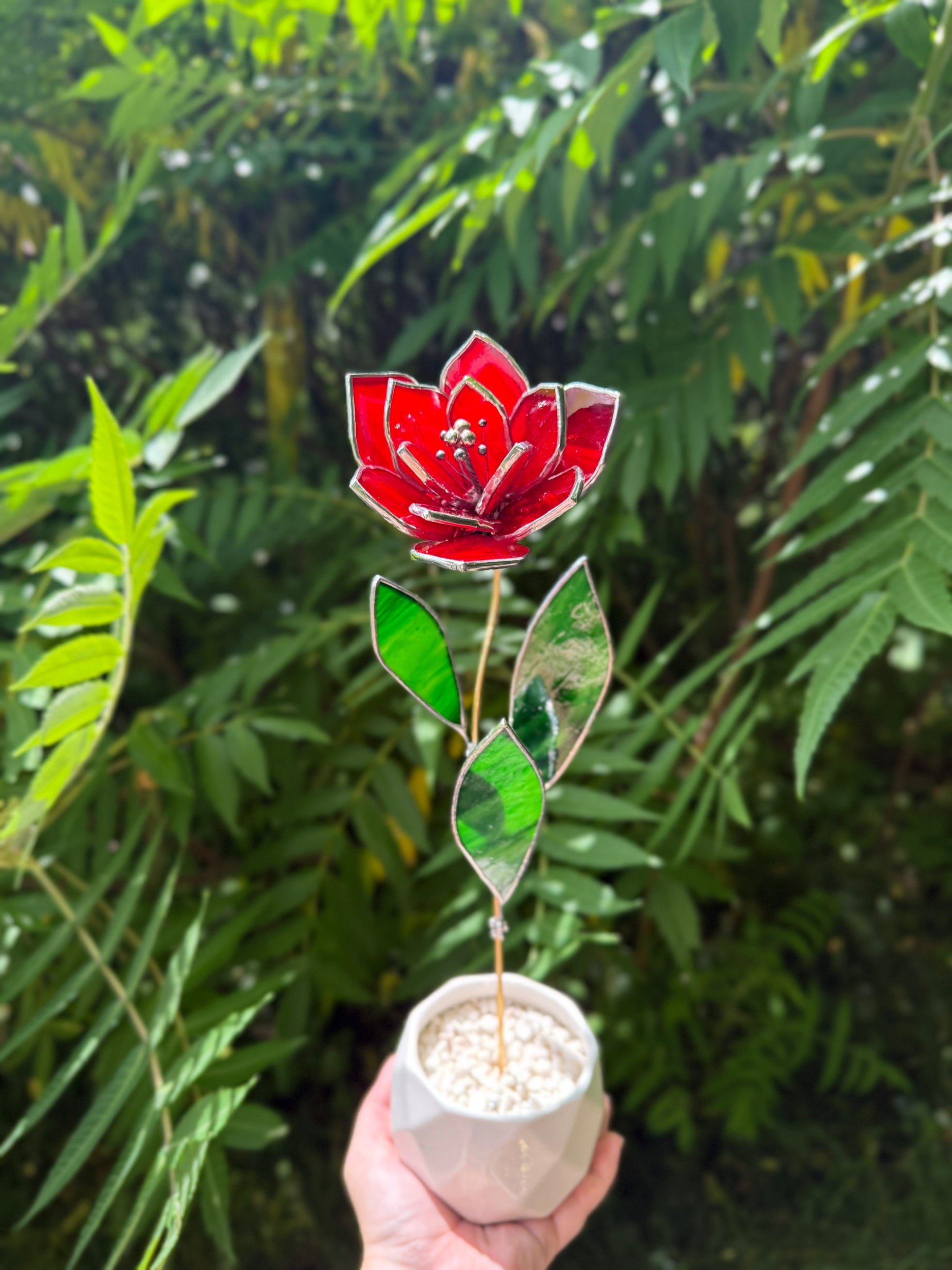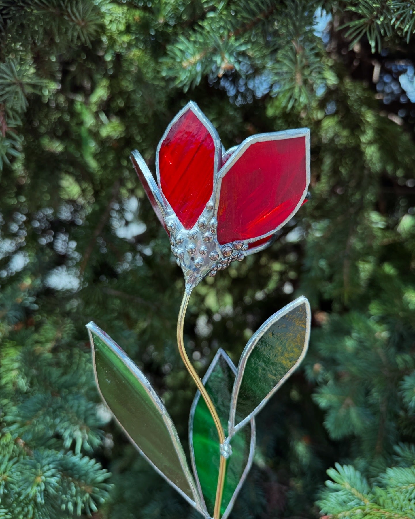 " . Ruby Red Tulip" Stained glass tropical flower Suncatcher 3D, Table plant cactus Home wedding decor, Christmas gift sale