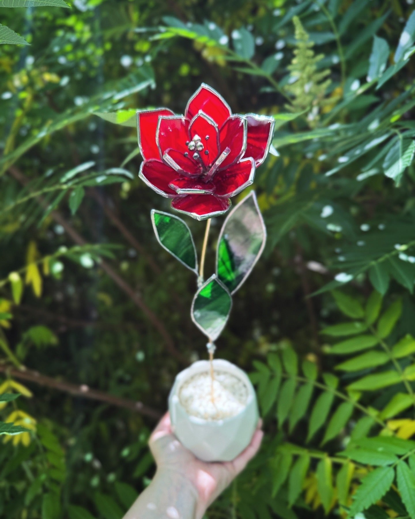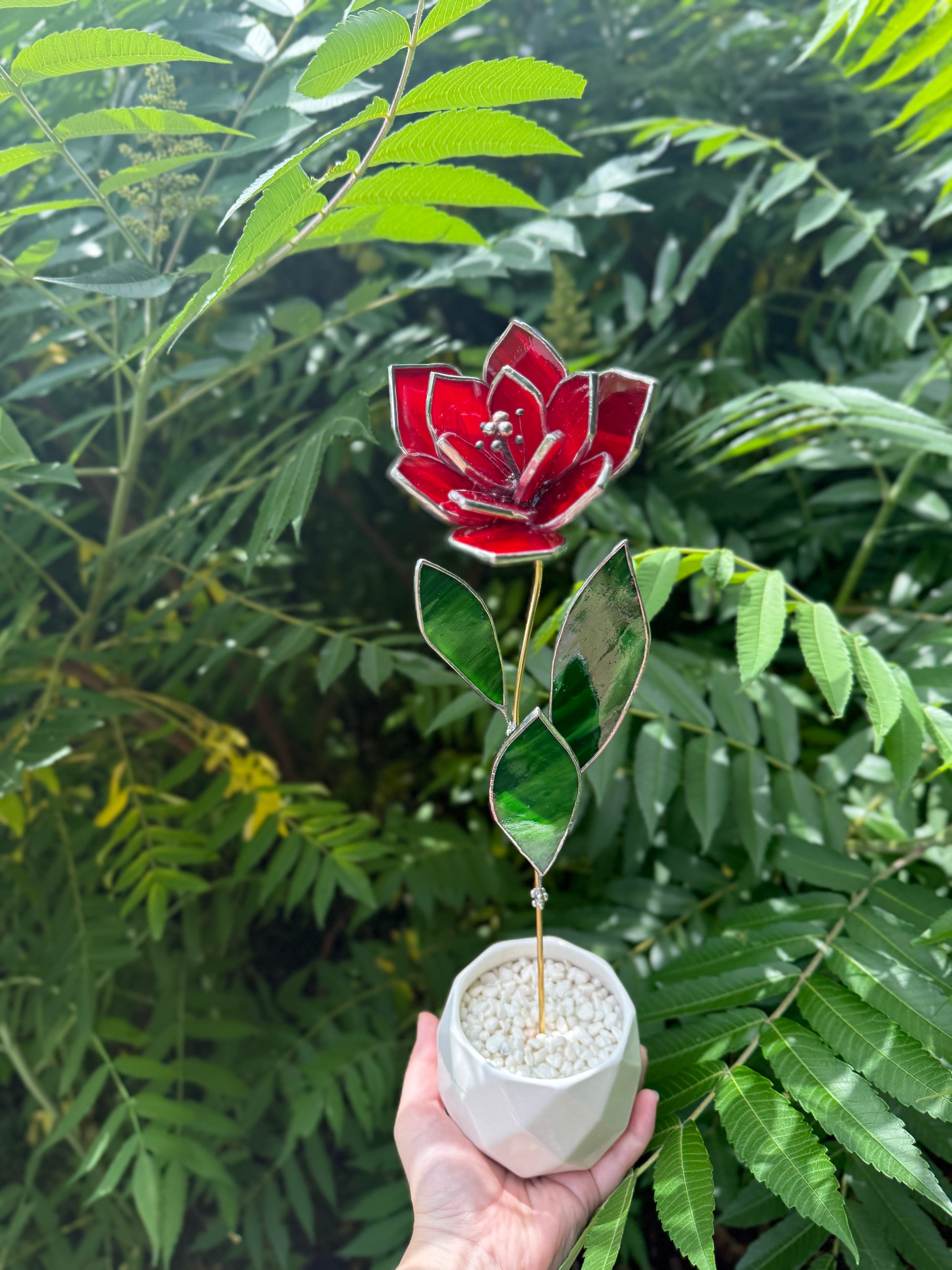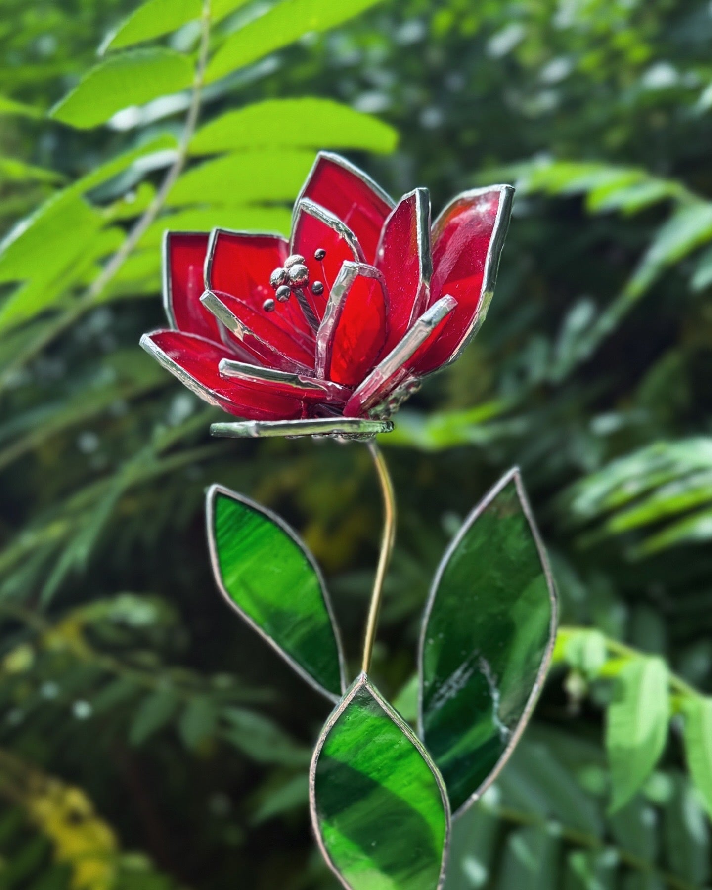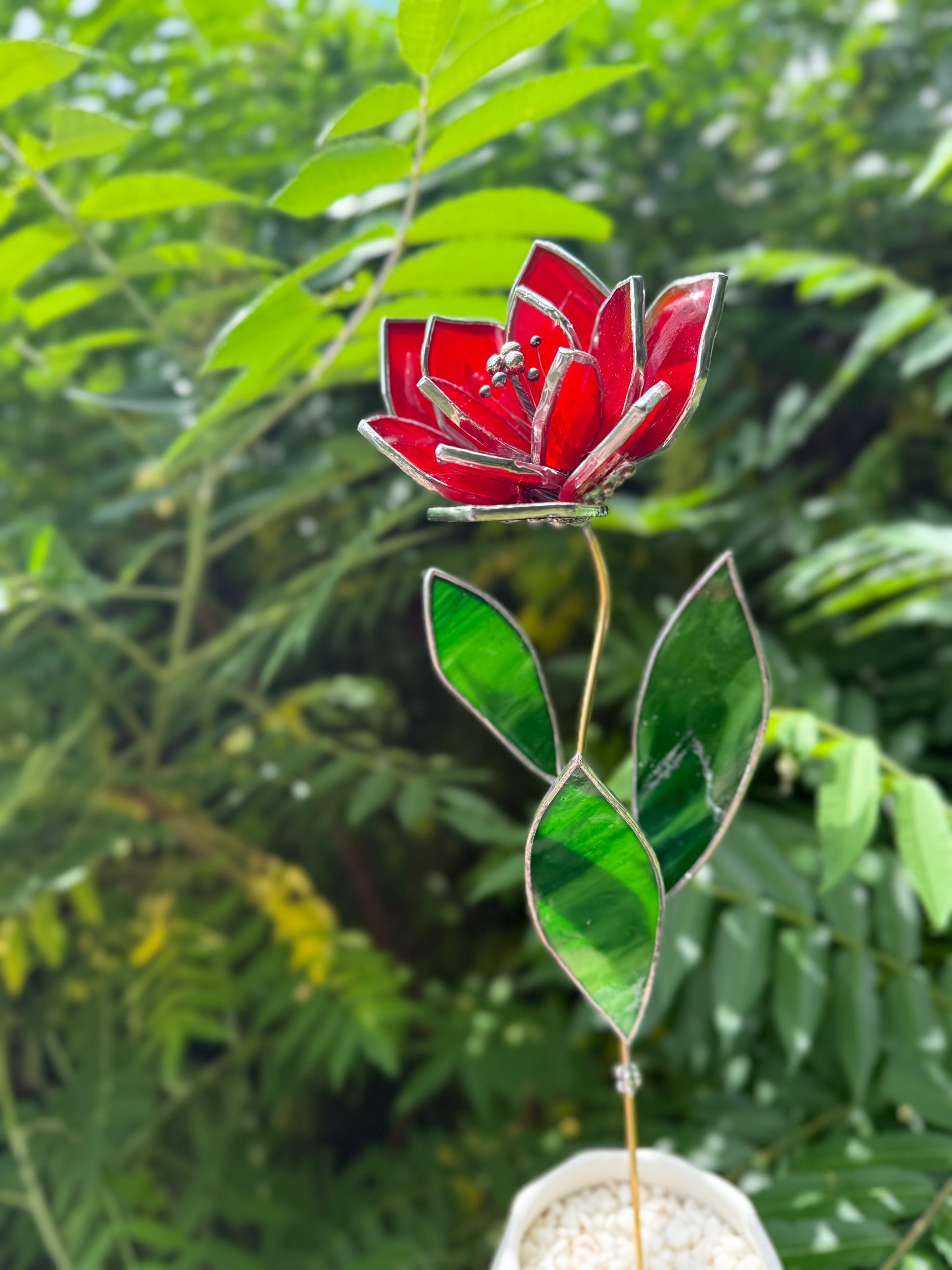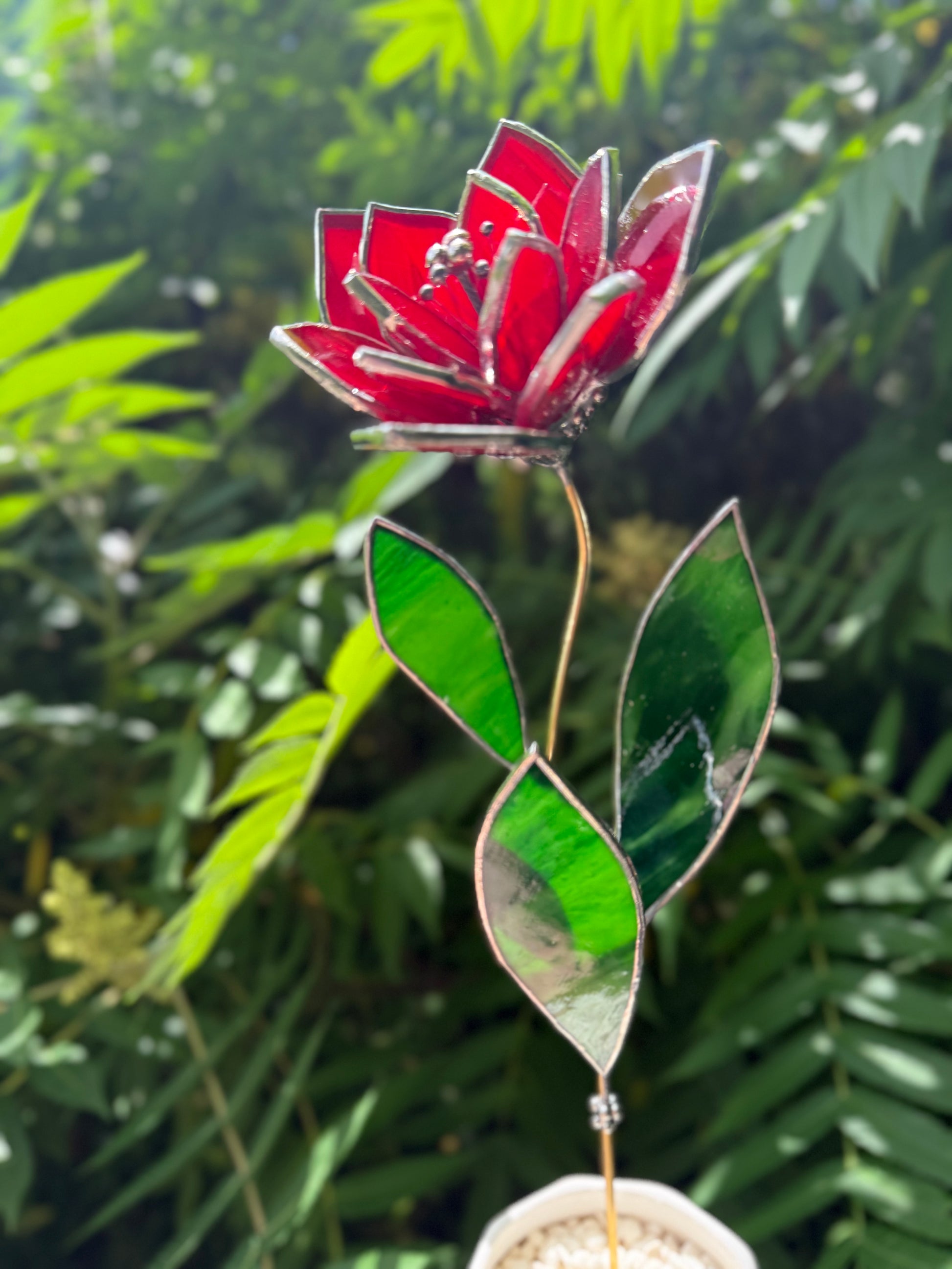" . Ruby Red Tulip" Stained glass tropical flower Suncatcher 3D, Table plant cactus Home wedding decor, Christmas gift sale
