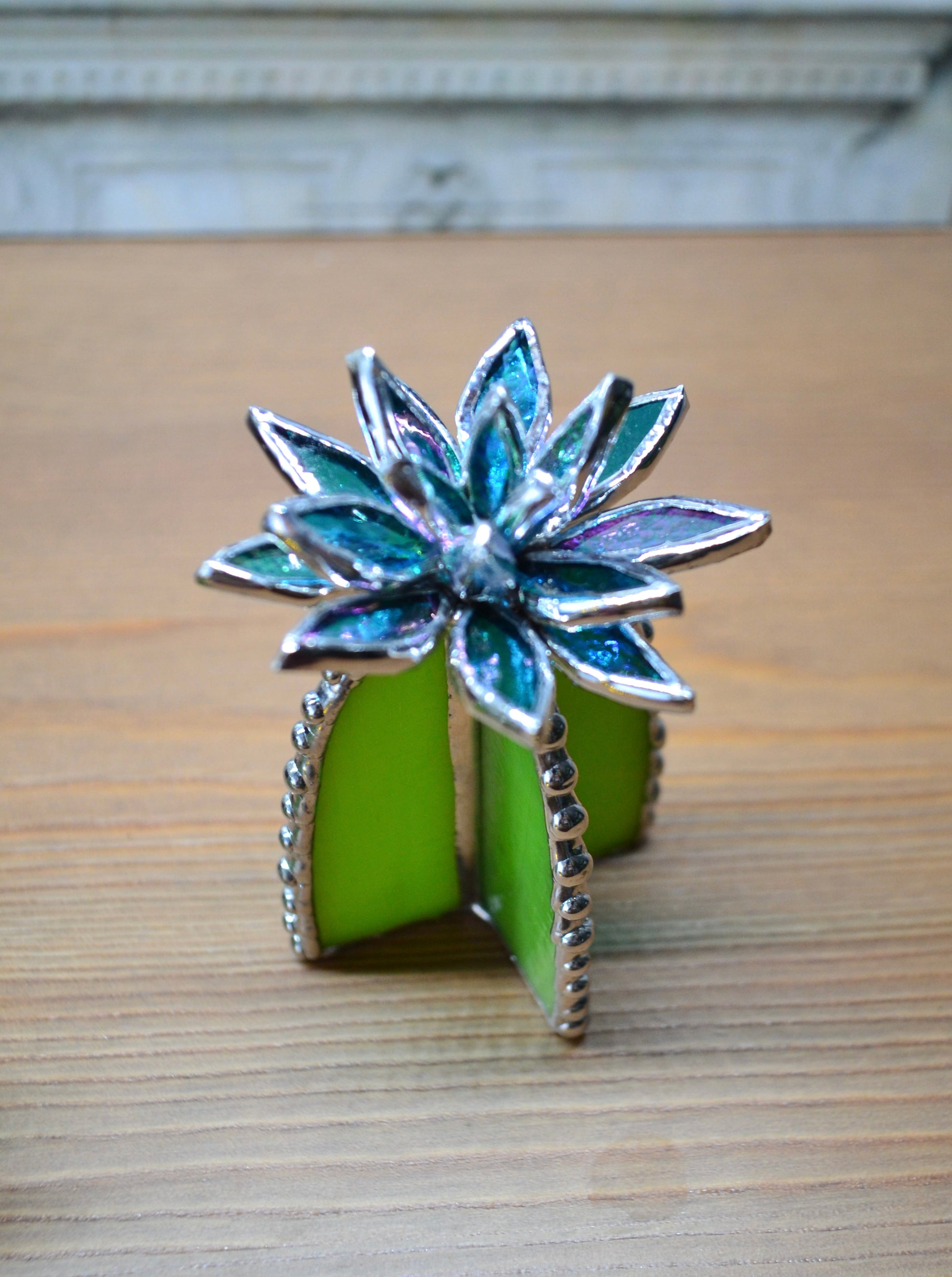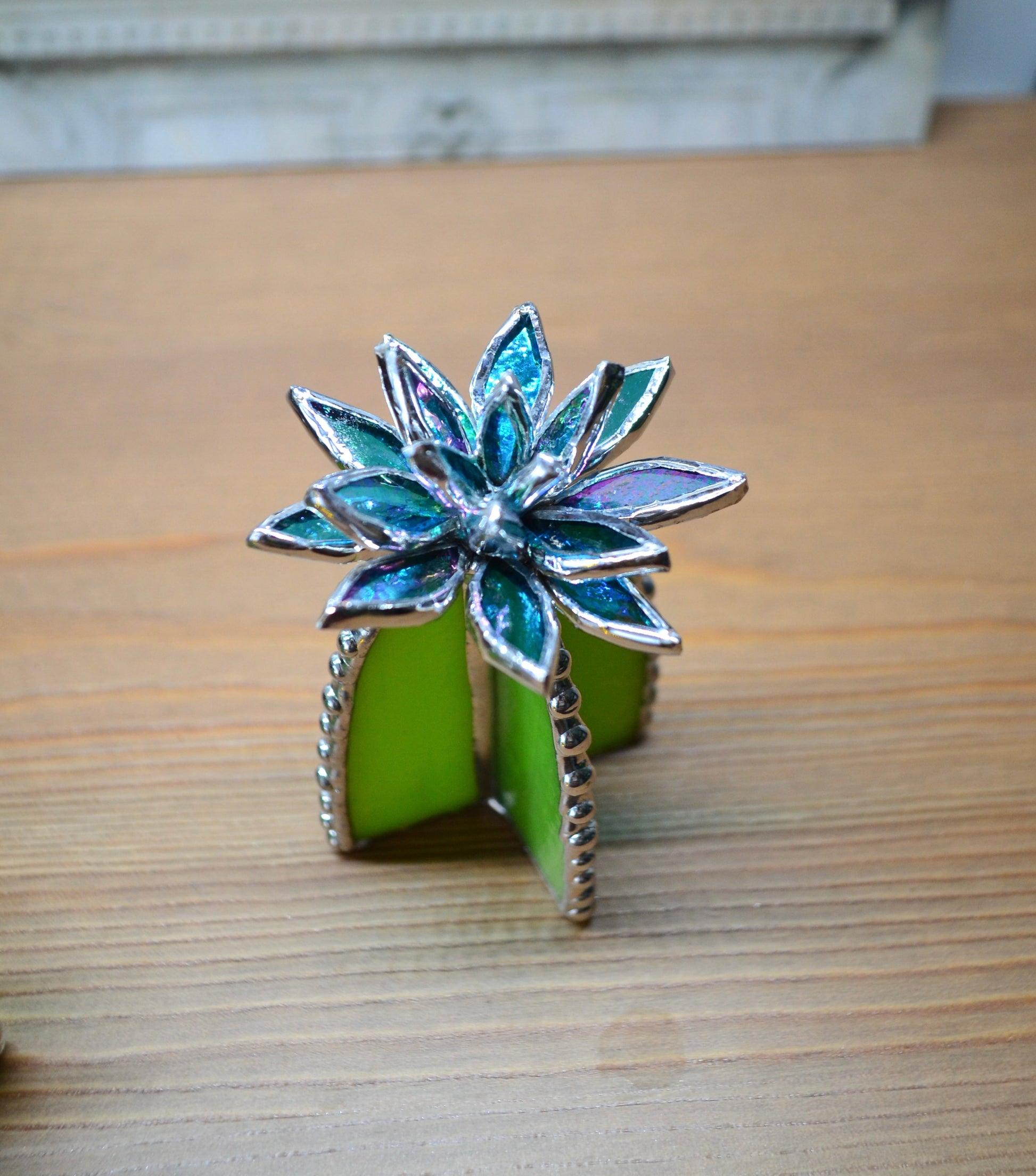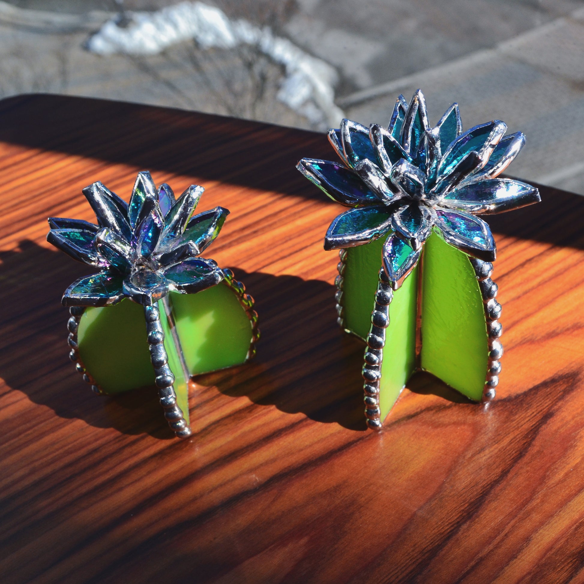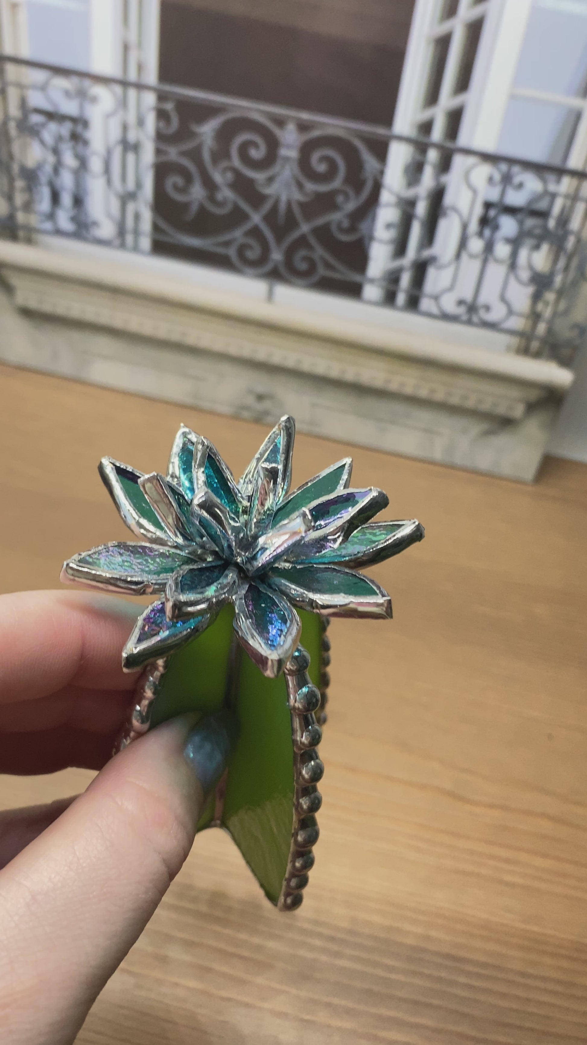 "Cactus M L Iridescent Blue " Stained glass, Succulent 3D design, Valentine’s gift, house plant for flower pot, Sun catcher