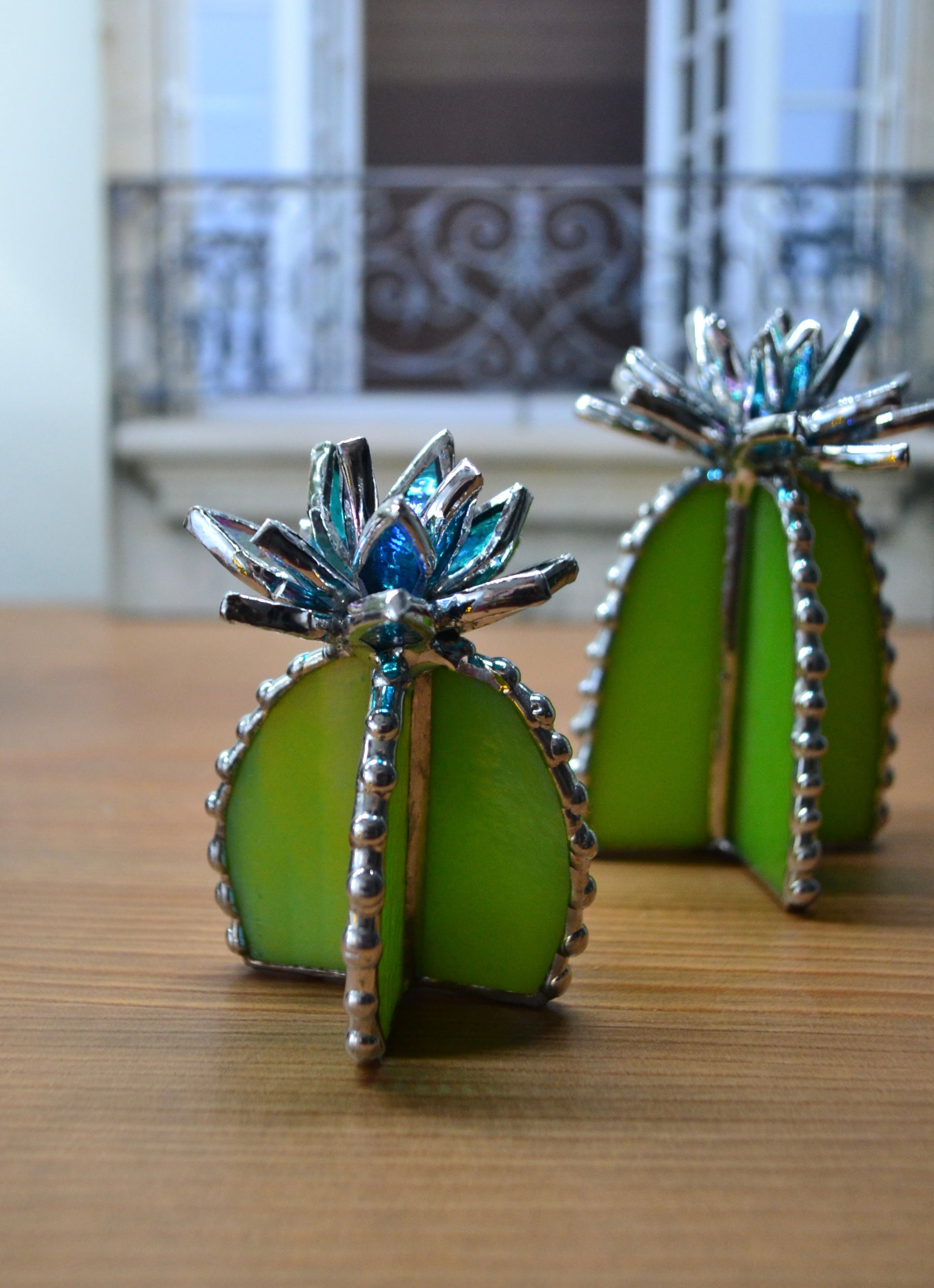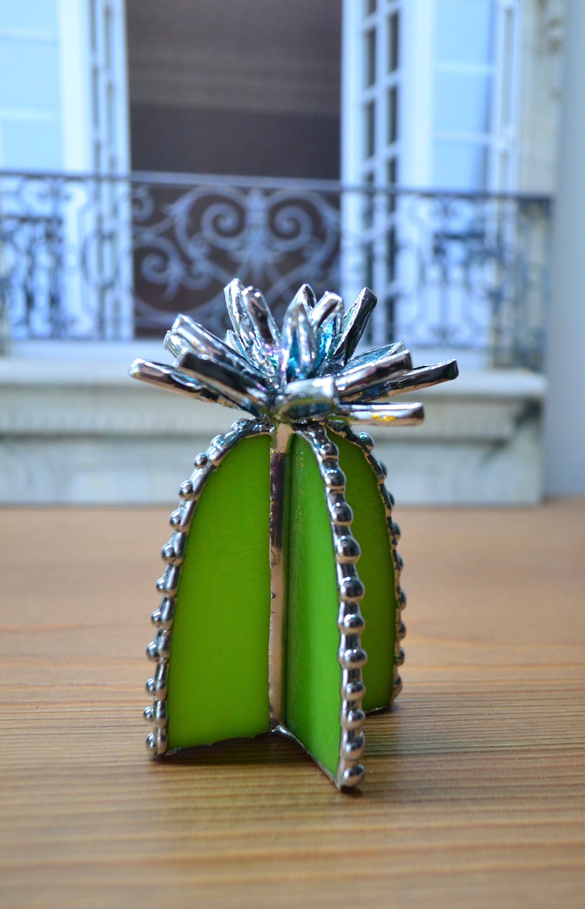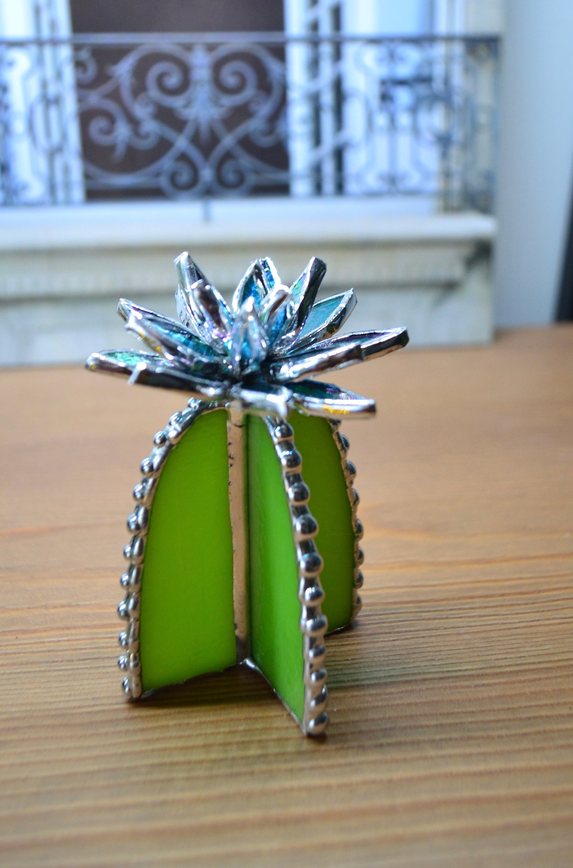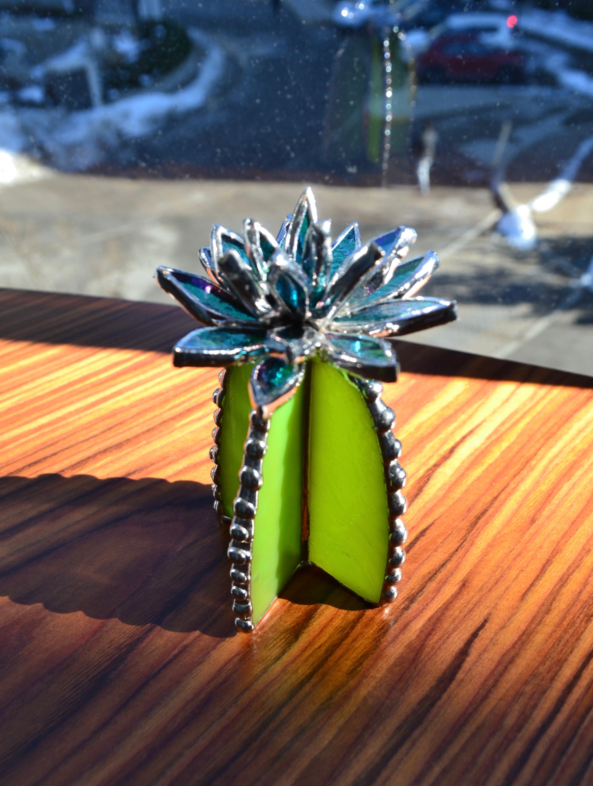 "Cactus M L Iridescent Blue " Stained glass, Succulent 3D design, Valentine’s gift, house plant for flower pot, Sun catcher