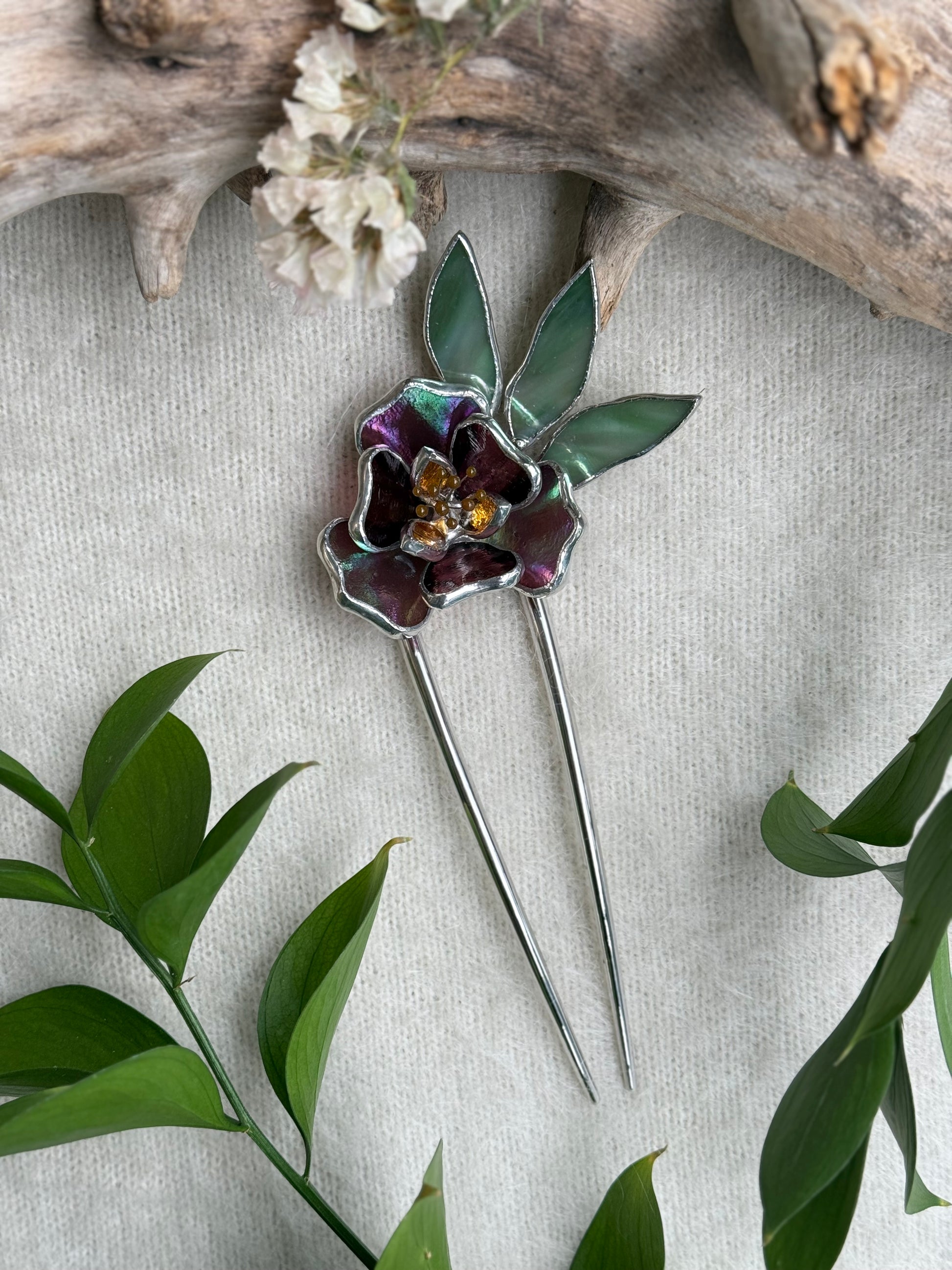 These stained glass hair pins combine functional hair accessories with artistic craftsmanship. Whether worn casually or for a special occasion, they add a delicate floral accent to any hairstyle.