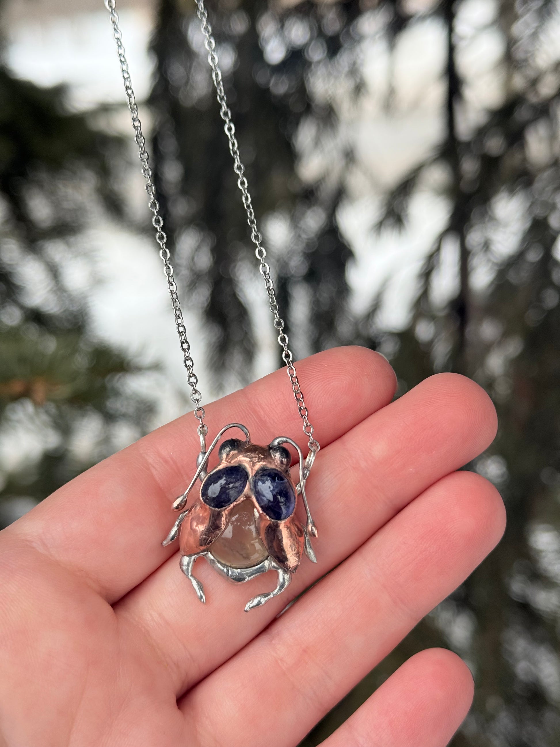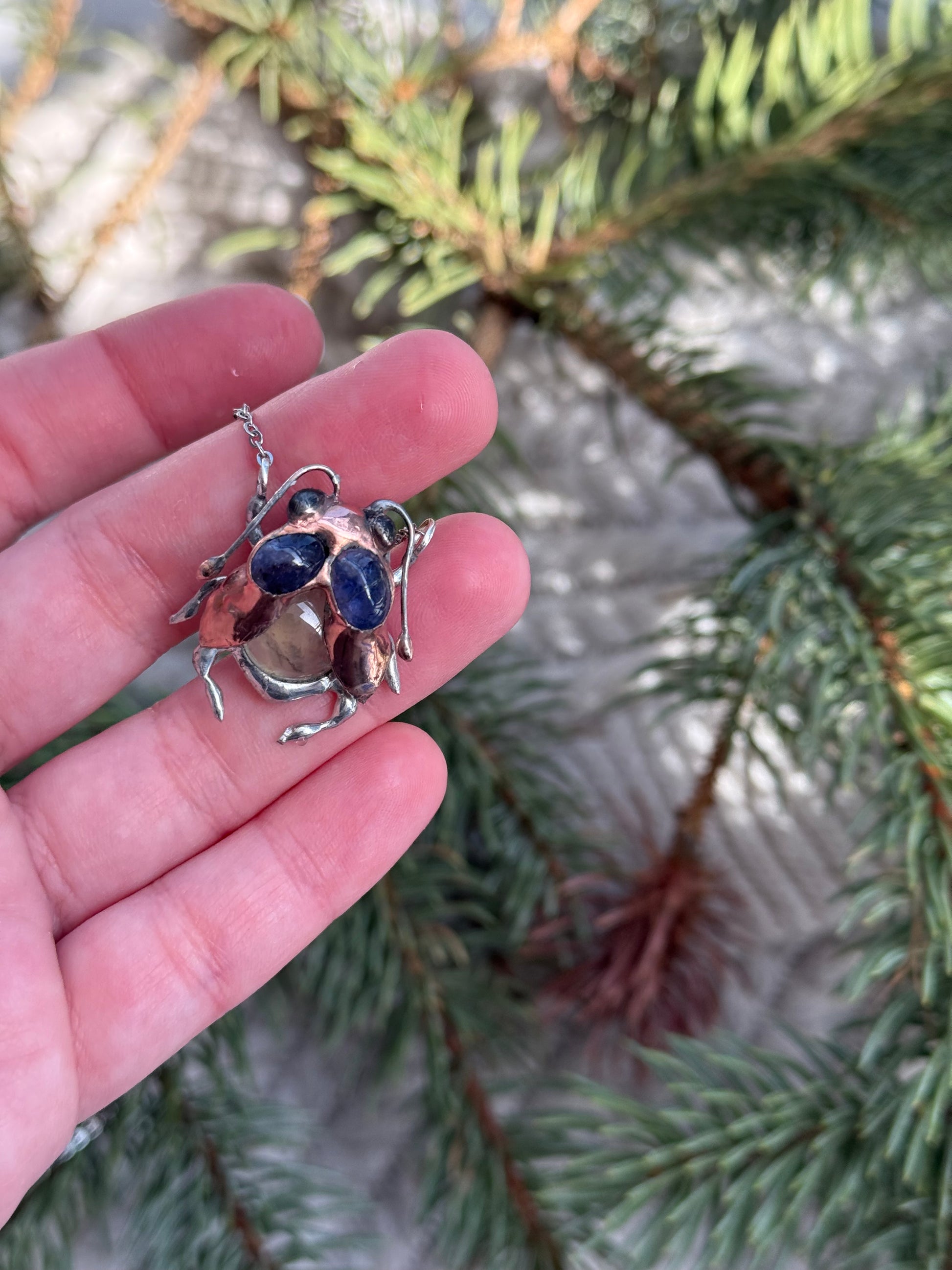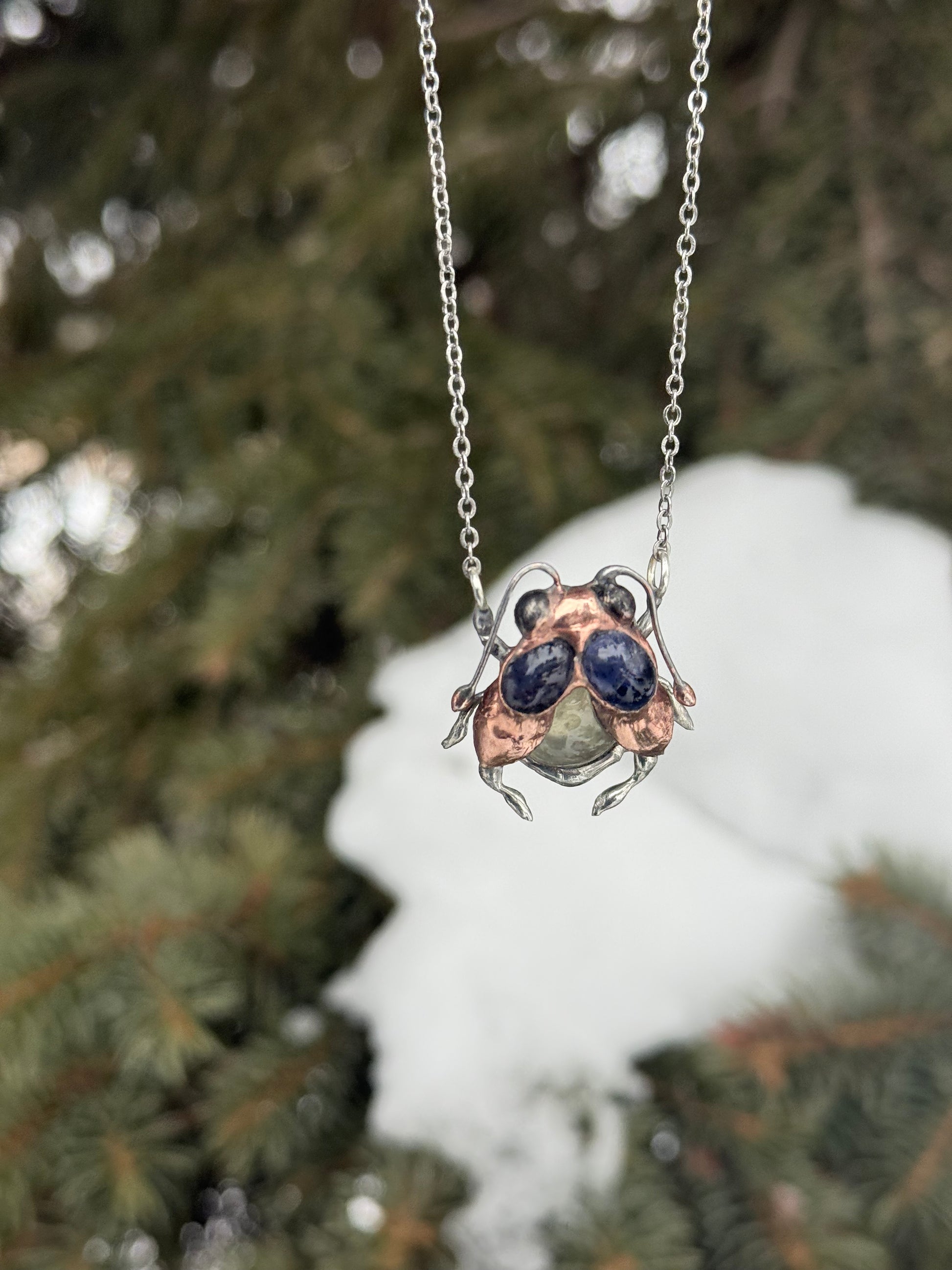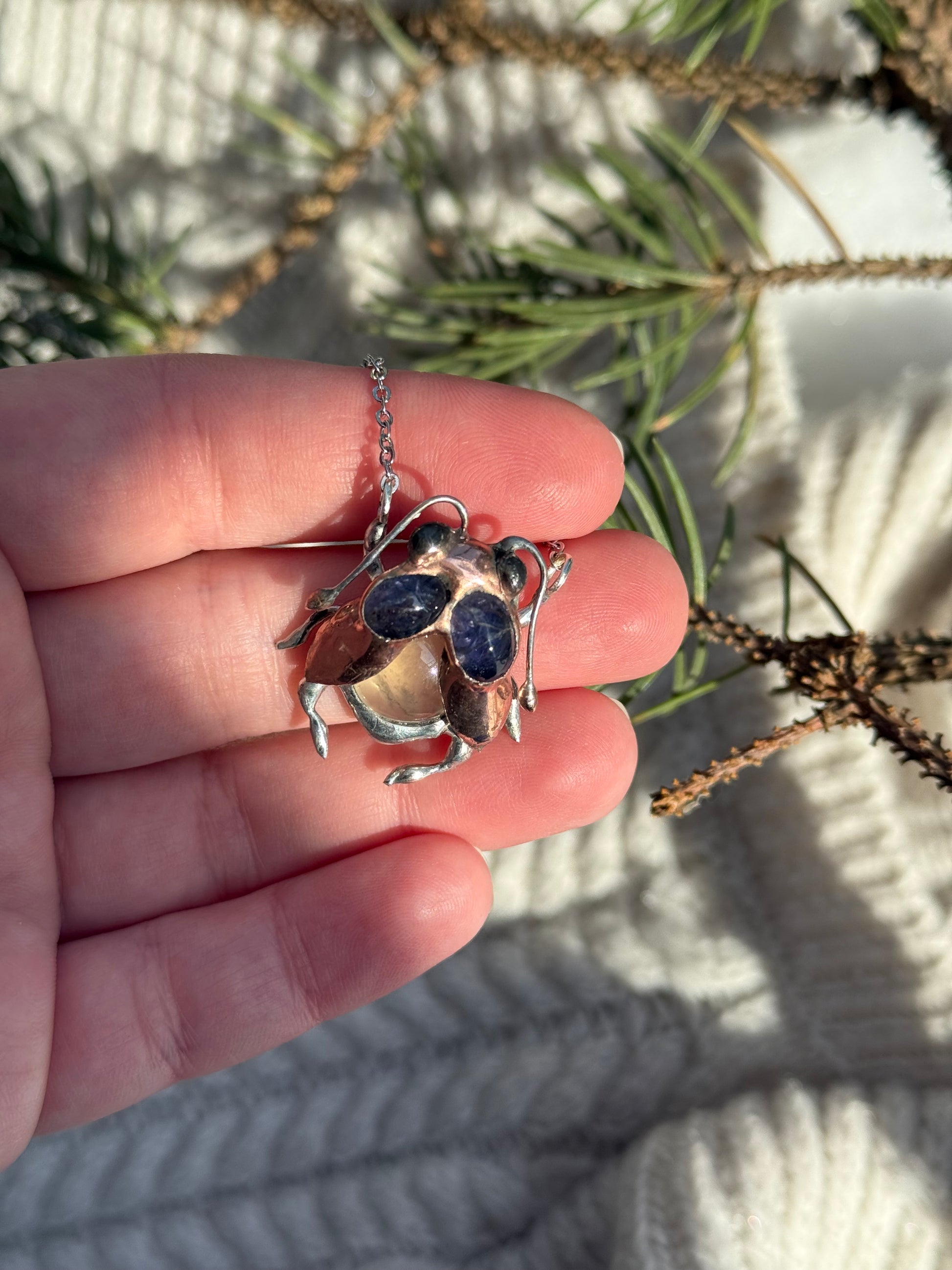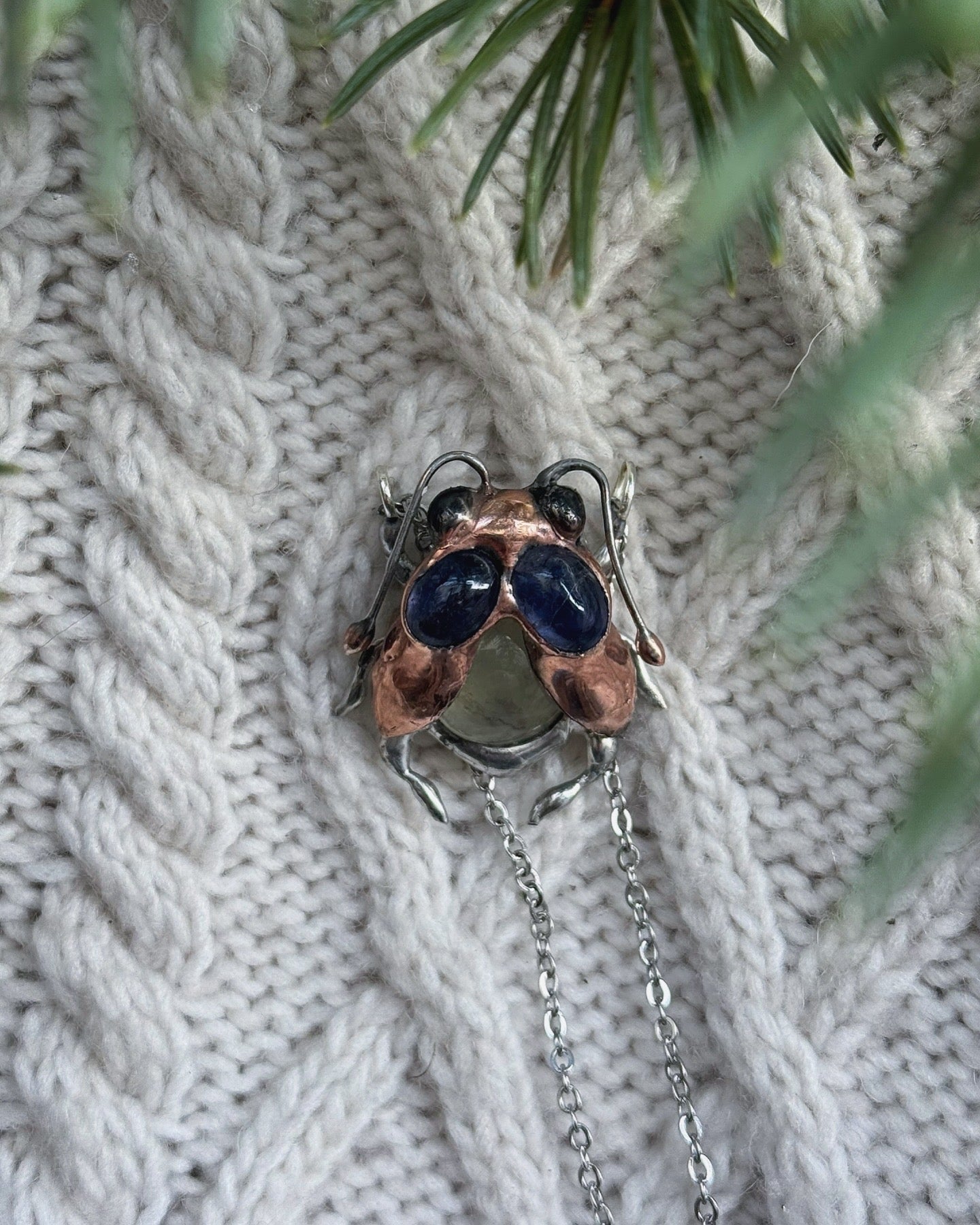 " . Bug necklace Baby Cicada with Blue Iolite & Olive Prehnite”, art jewelry pendant 3D wedding jewelry Mother’s Day gift sale