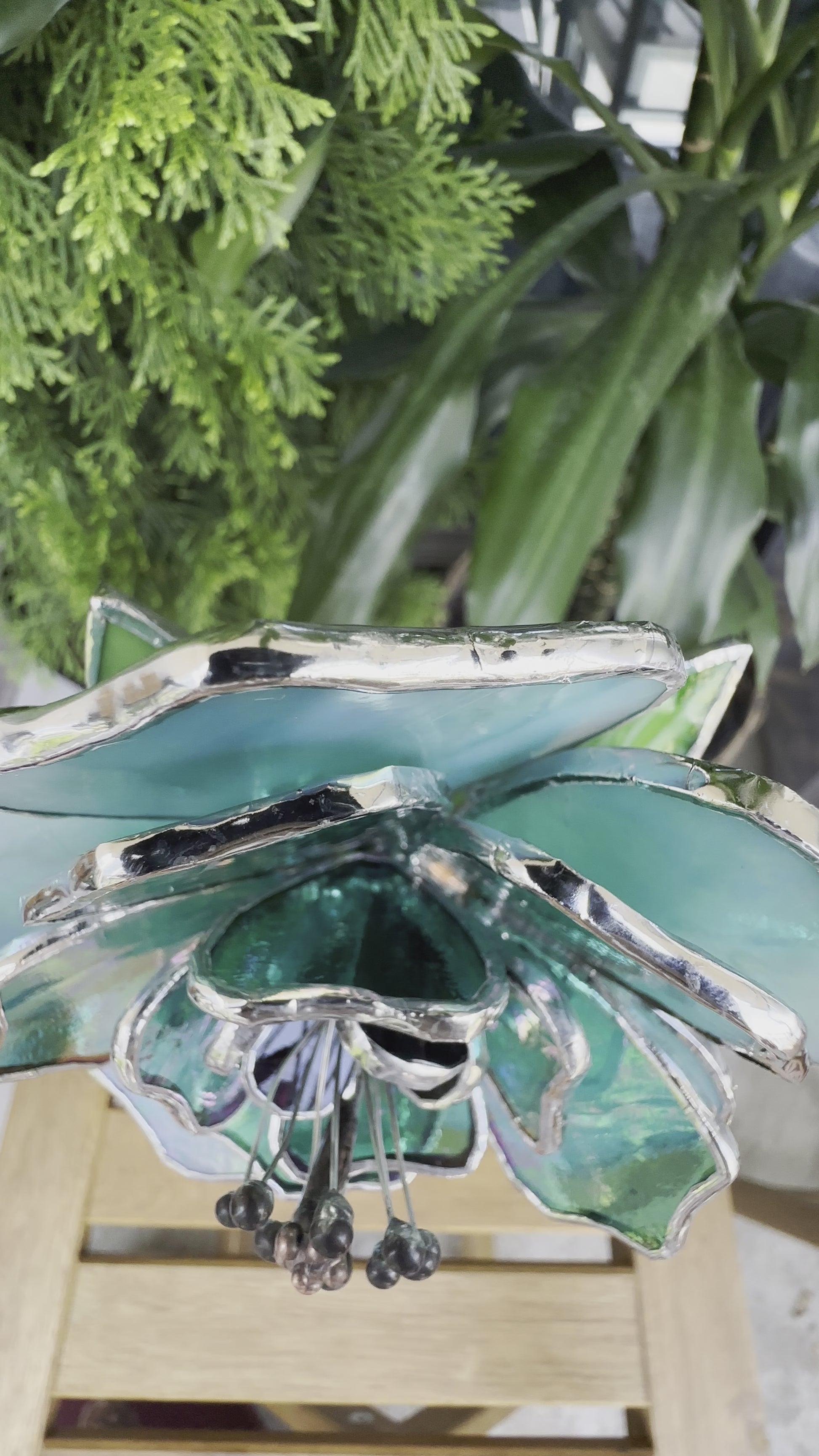 " . Beautiful Peony Turquoise Iridescent" Stained glass tropical flower 3D, Sun catcher, Table plant, Garden stake, wedding decor, Christmas gift