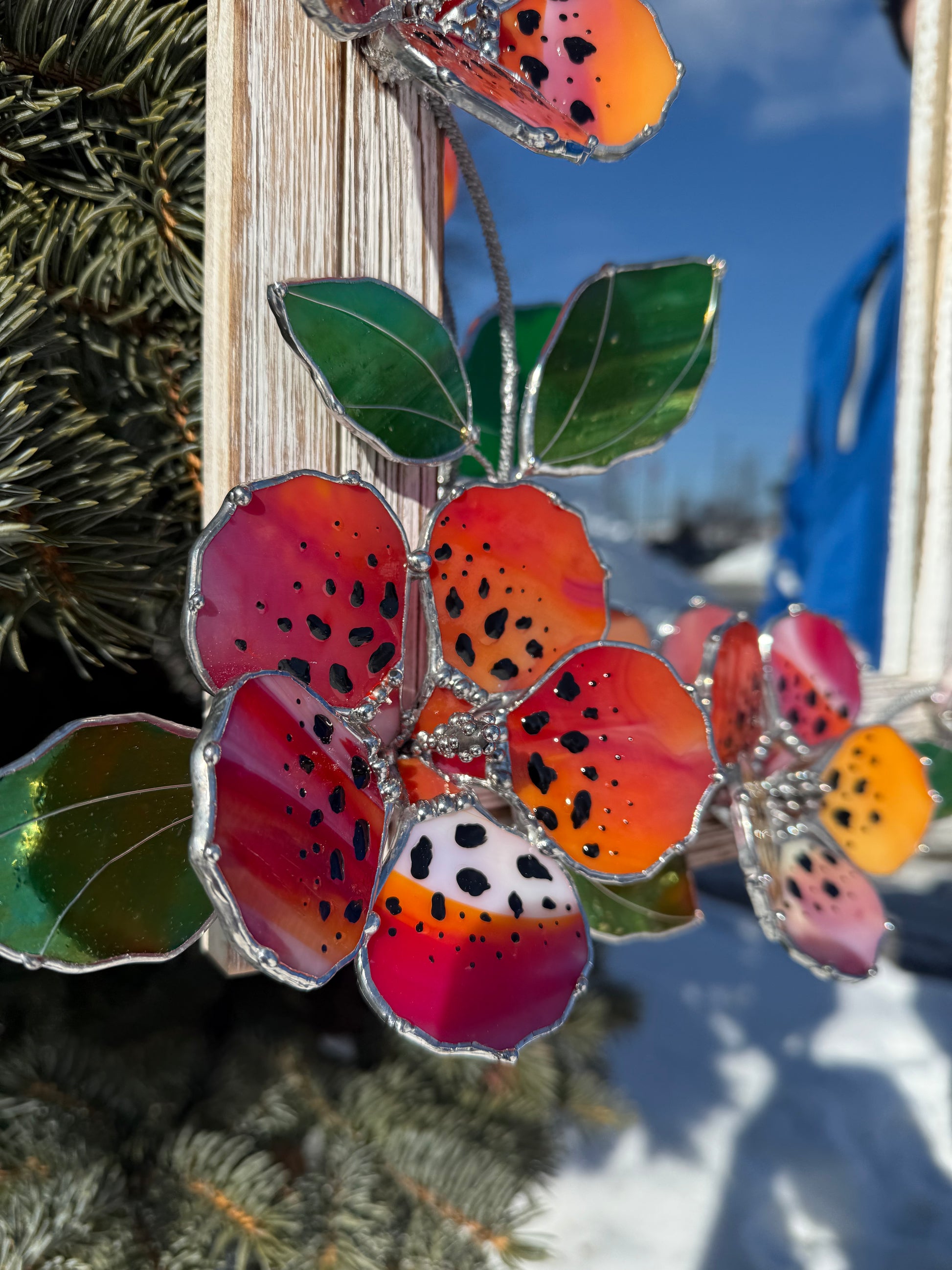 .Tiger Hibiscus Stained glass Wall Mirror, 3D Botanical Floral Art