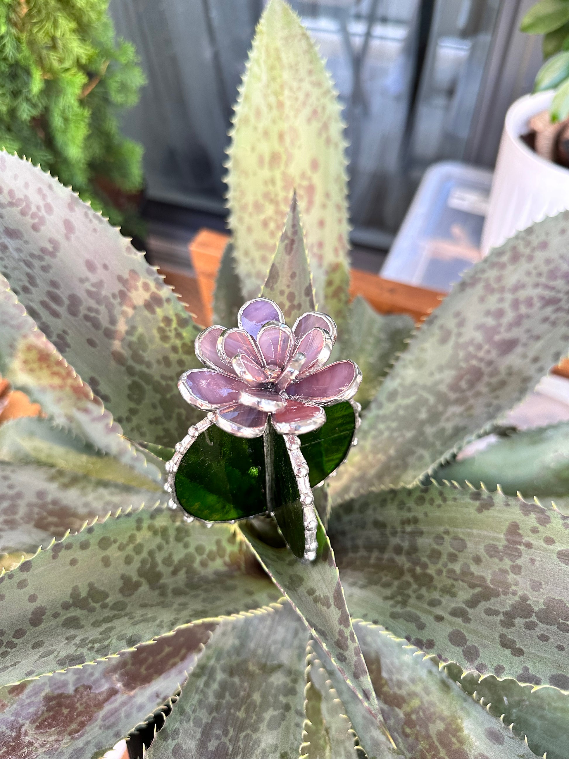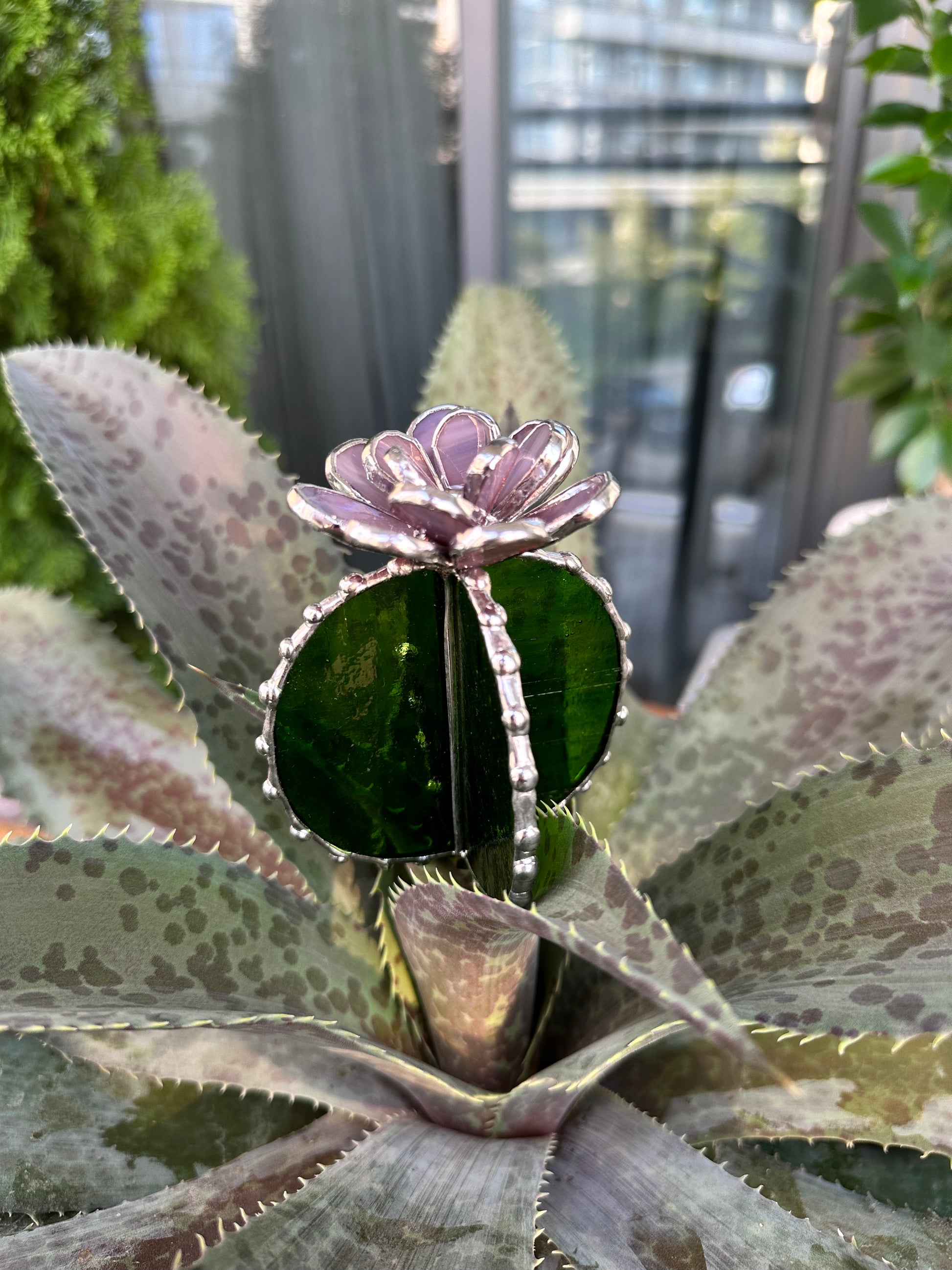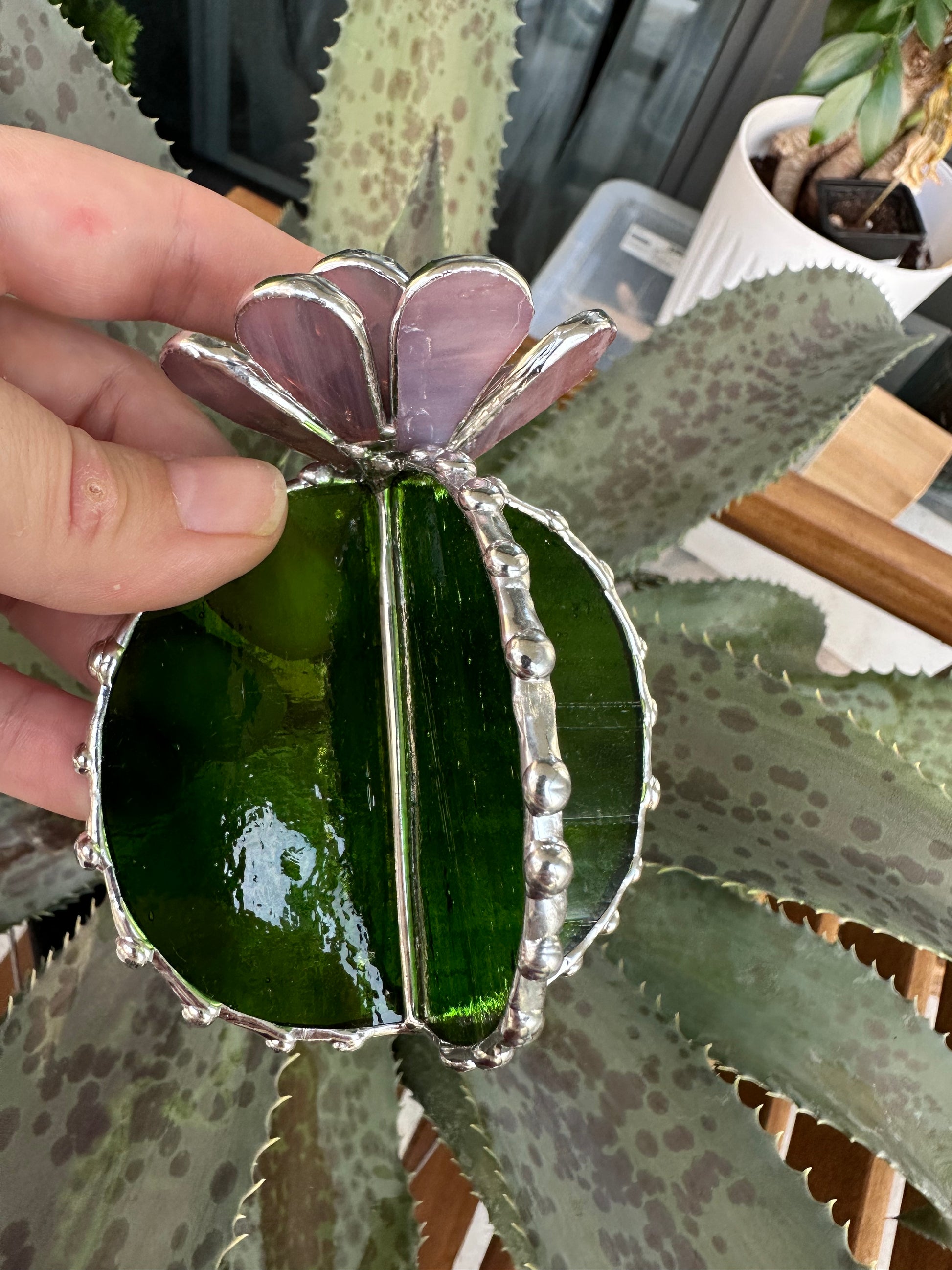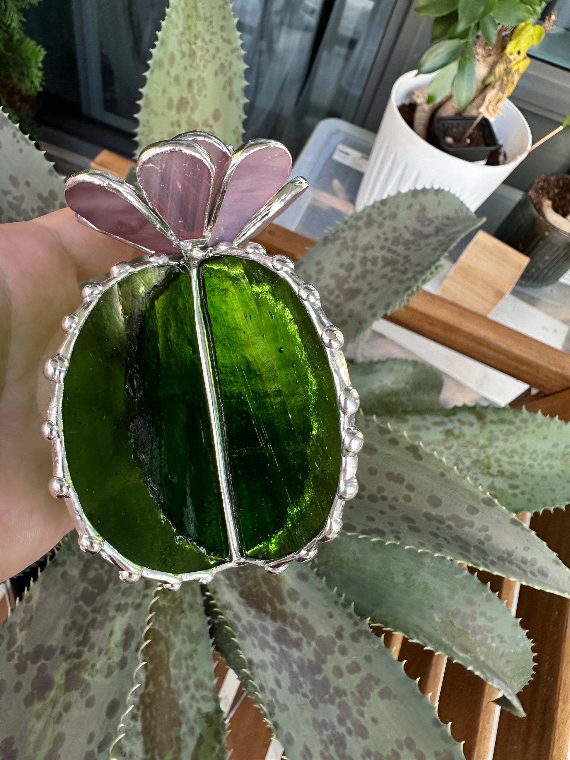 "Cactus XL Purple Green Translucent", stained glass Succulent 3D Cacti house plant for flower pot Sun catcher glass art wedding decor