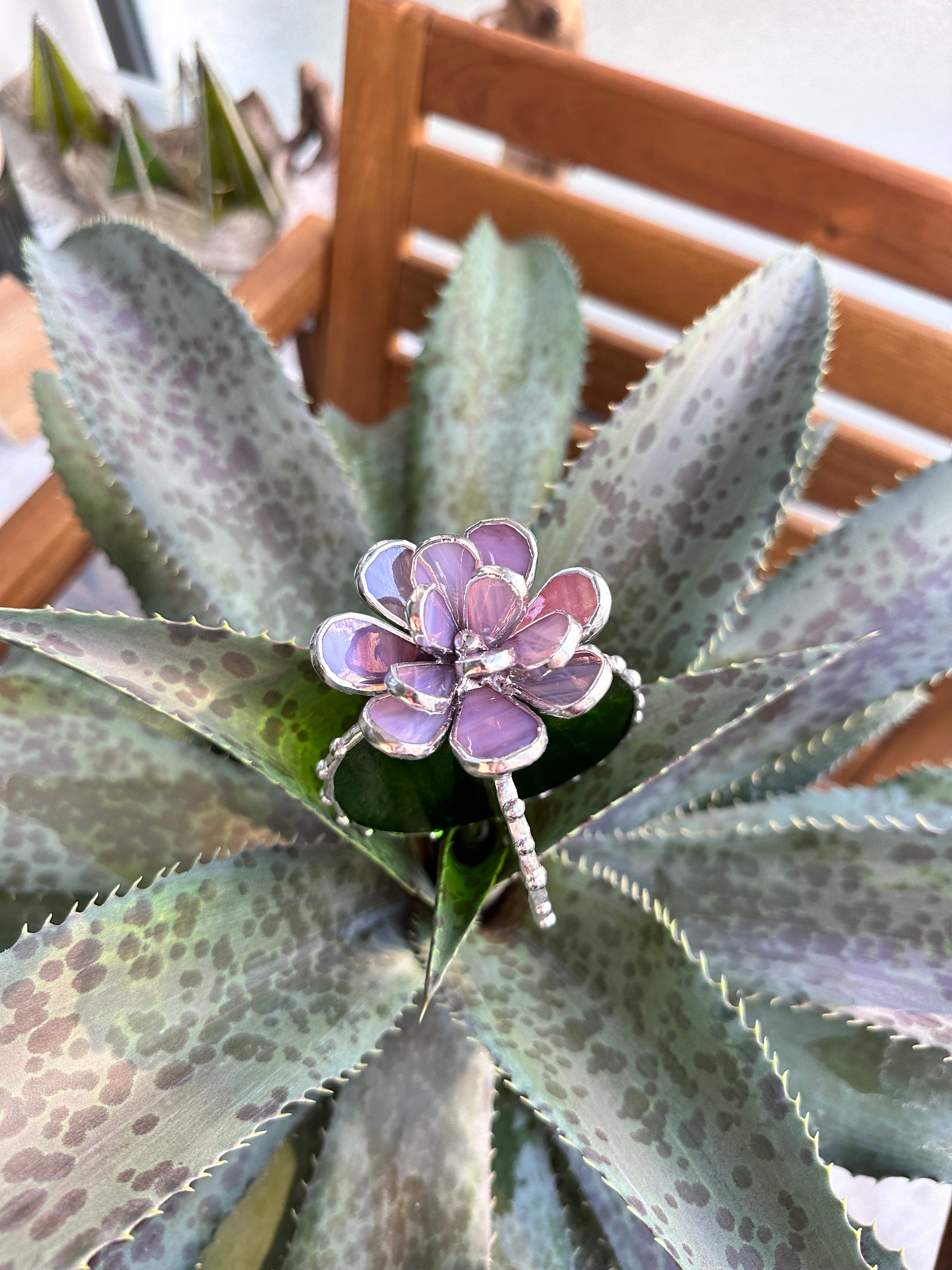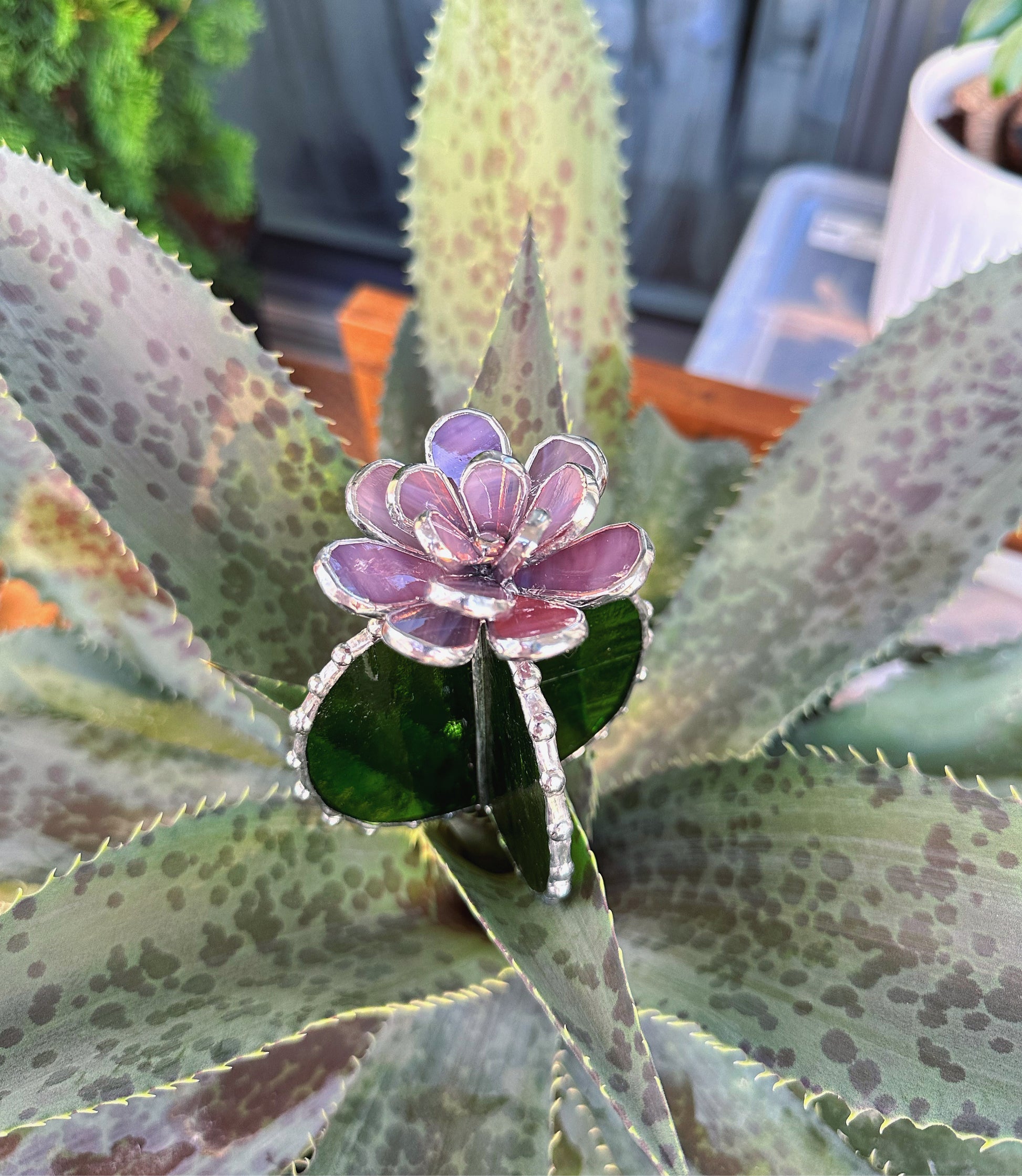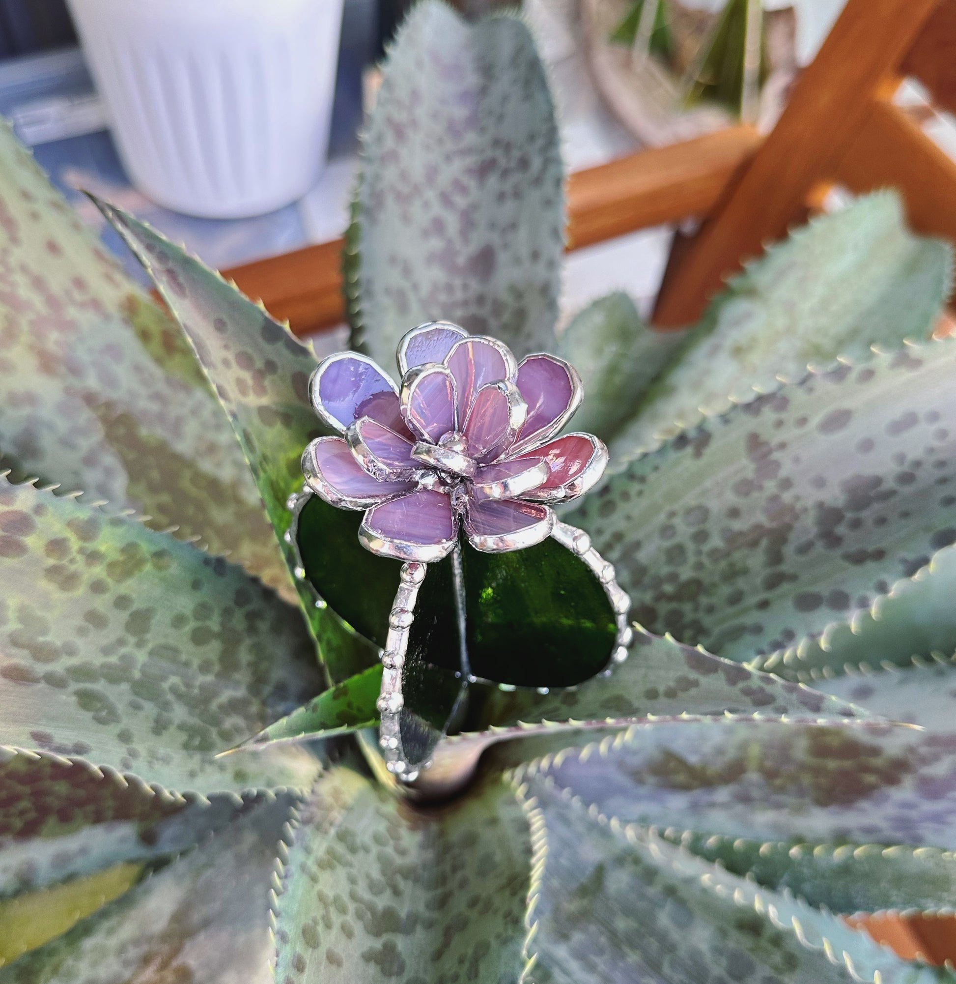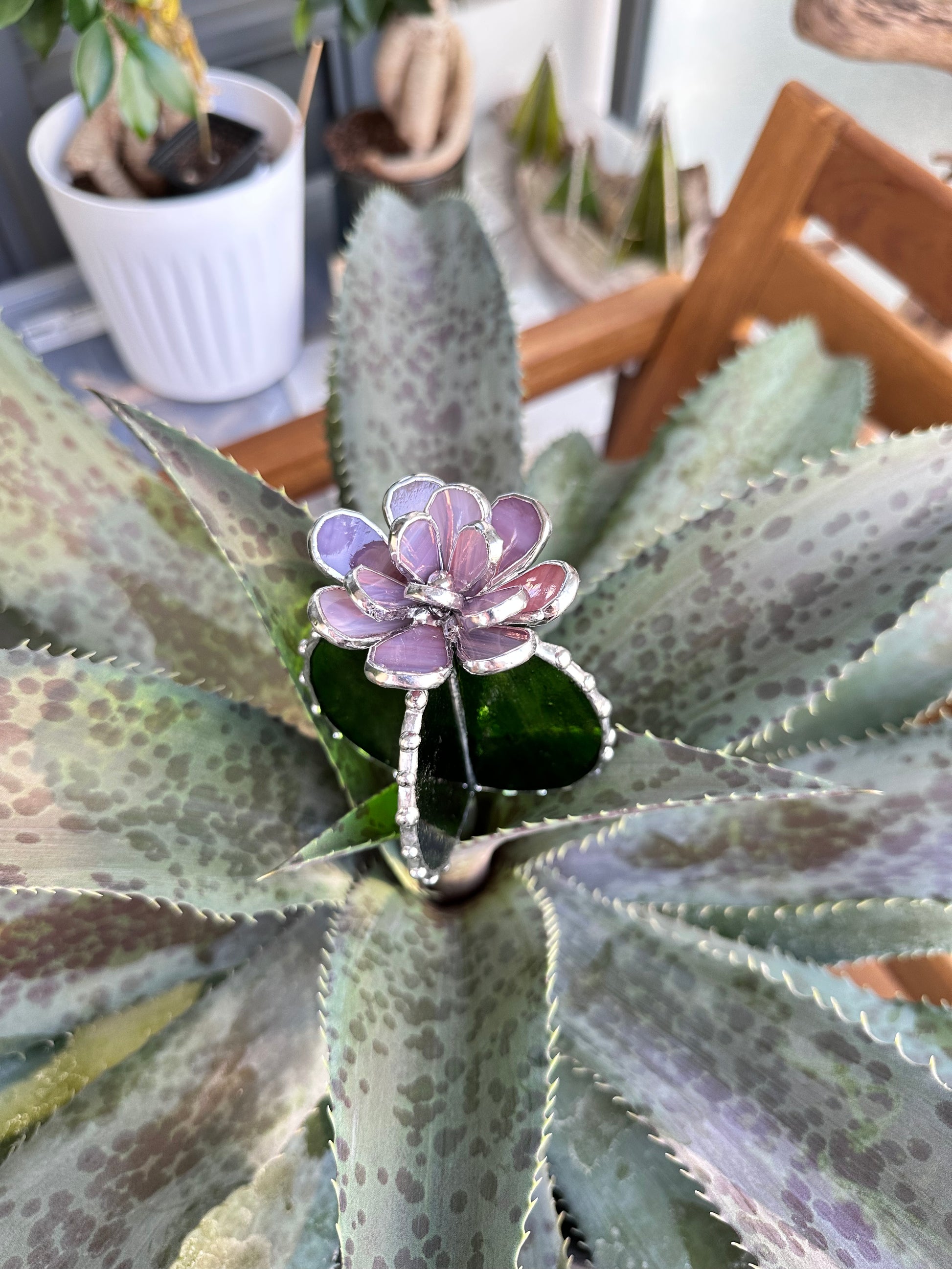 "Cactus XL Purple Green Translucent", stained glass Succulent 3D Cacti house plant for flower pot Sun catcher glass art wedding decor