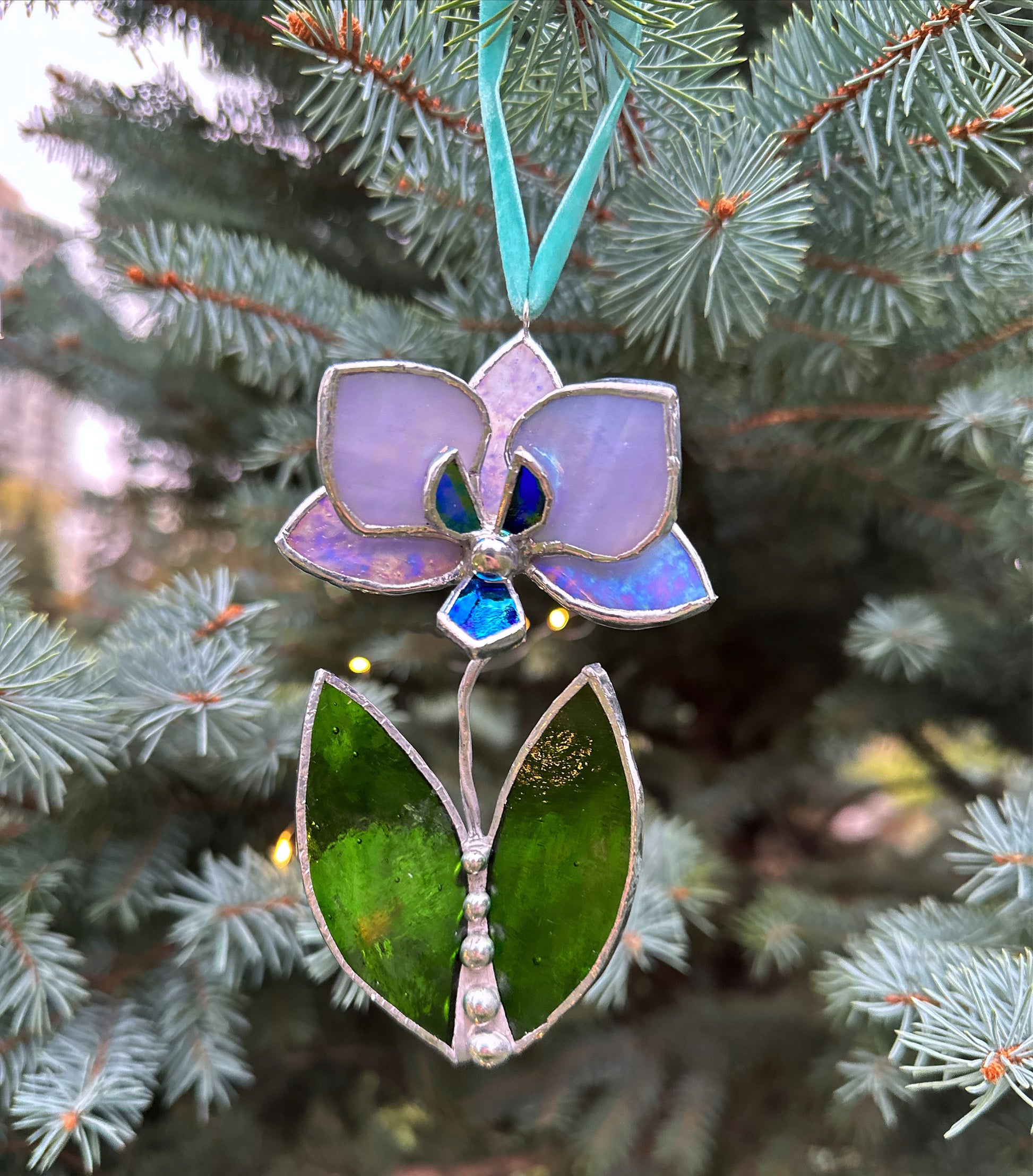 These beautiful 3D stained glass Christmas Orchid flower ornaments will be the perfect decoration for your Christmas tree! It can be a holiday gift for the office, a gift from Secret Santa, or you can buy a set and decorate your Christmas tree! Handmade stained glass Christmas ornaments are always a great idea - each one is unique and made with great skill and love. Our lovely floral items will be the focal point of your Christmas tree