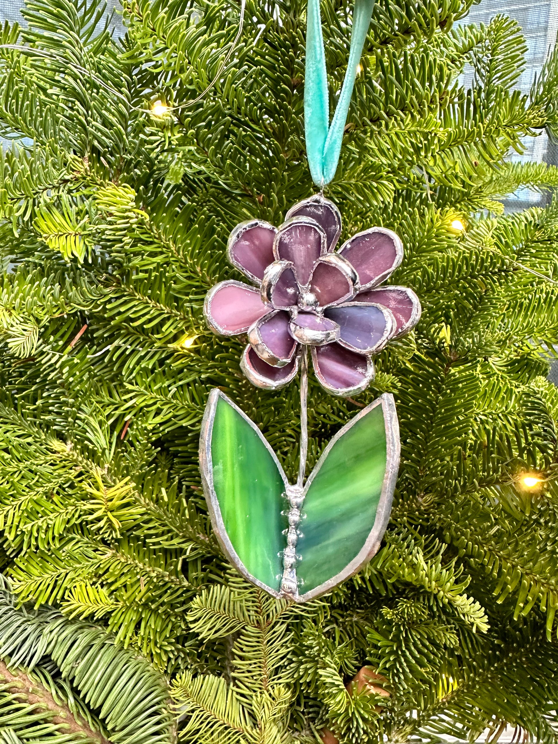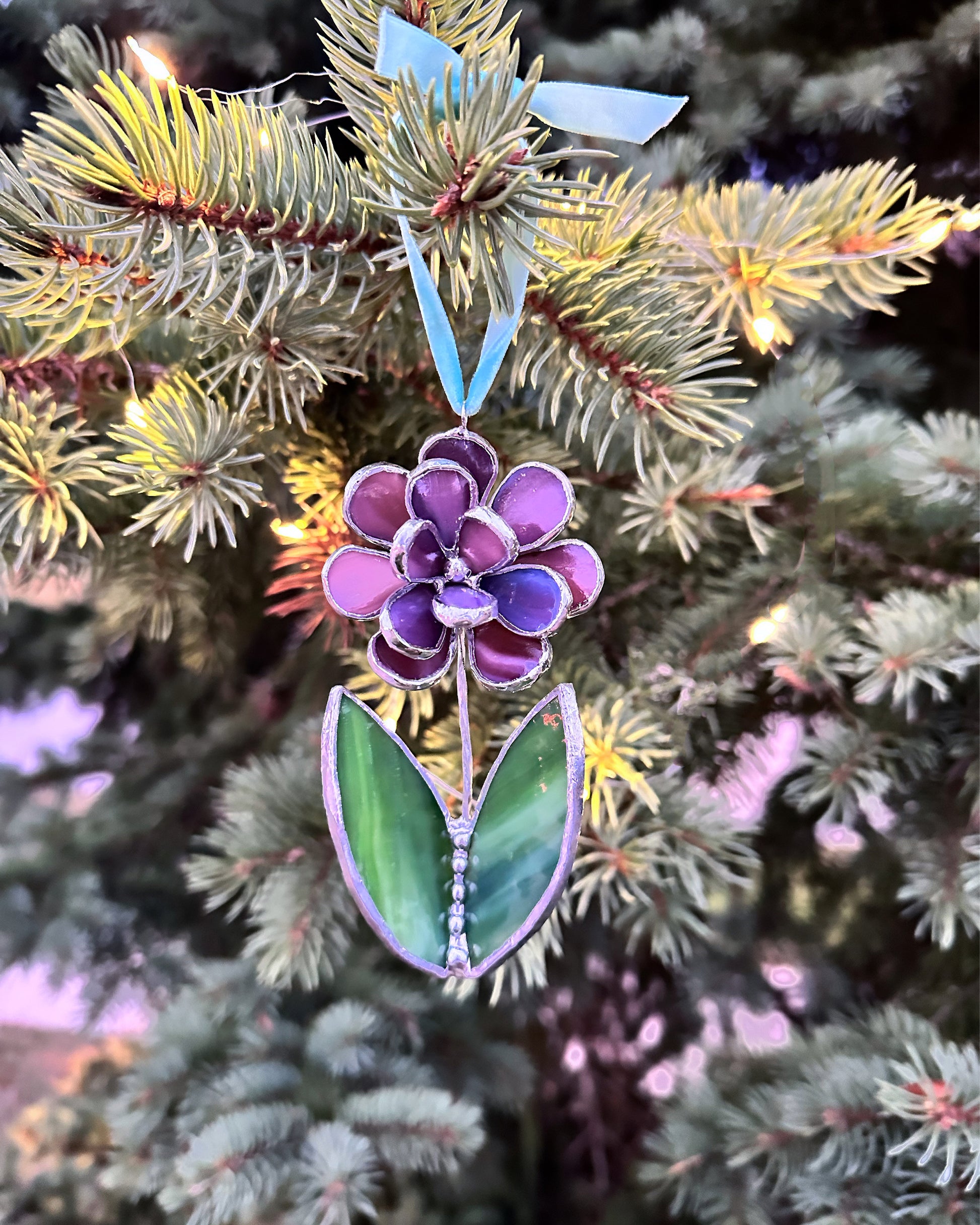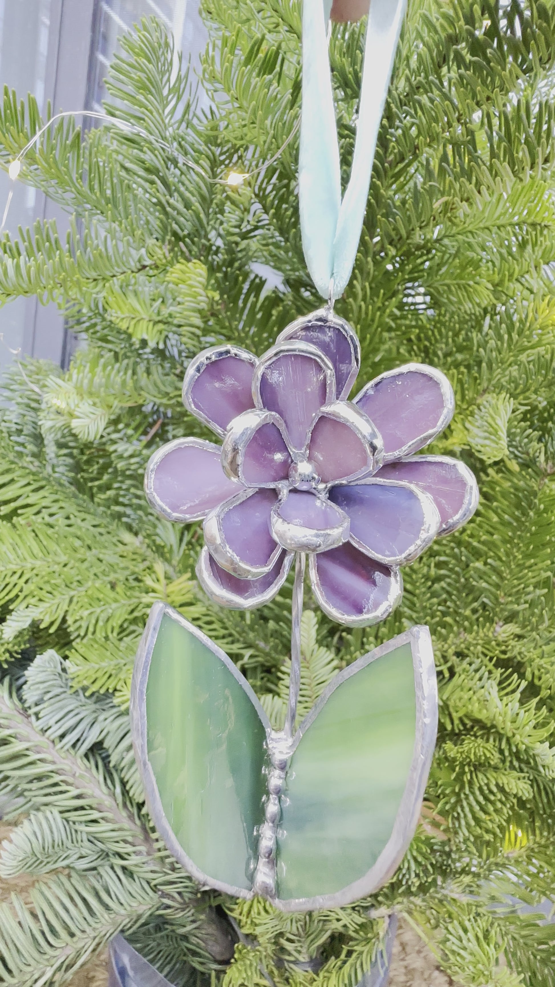 Christmas tree ornament Flower Purple Set of 1, 3, 5, 7, 10. Stained glass Wall window decor, holiday decorations, lights