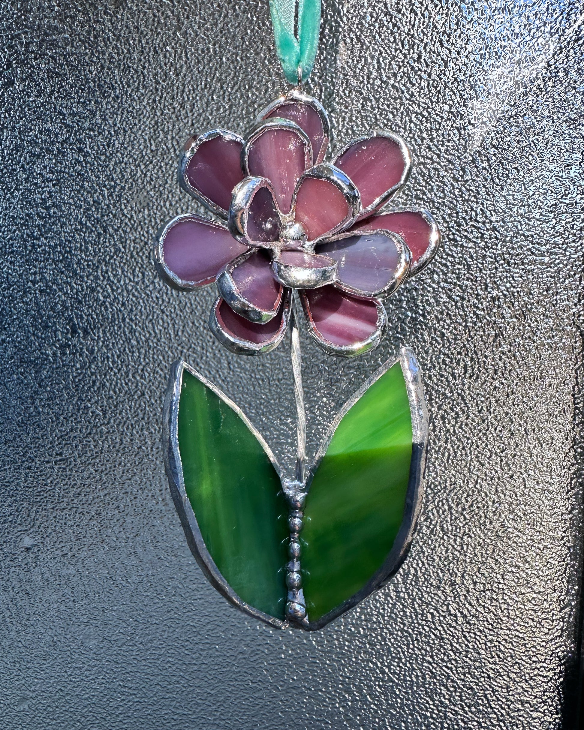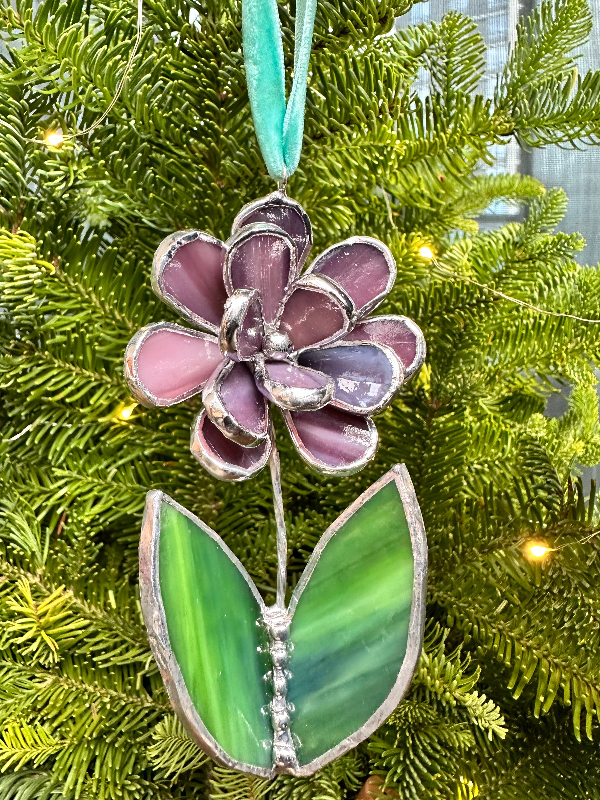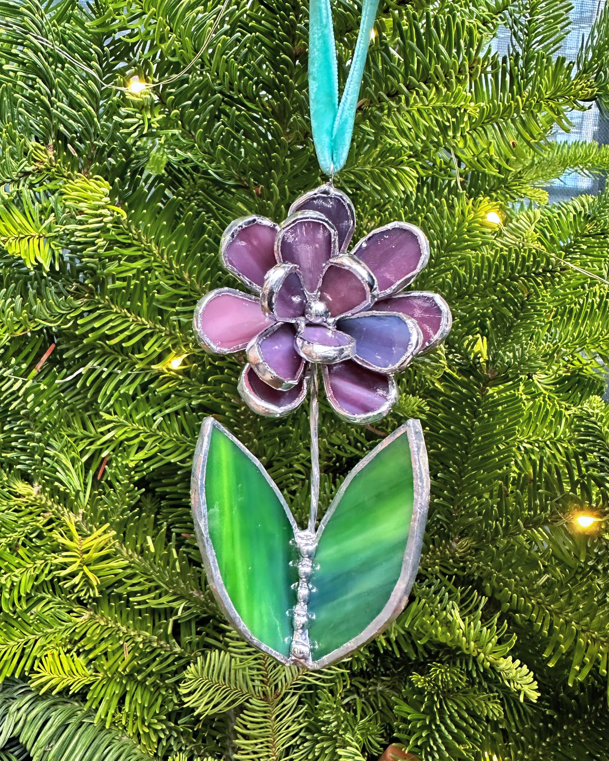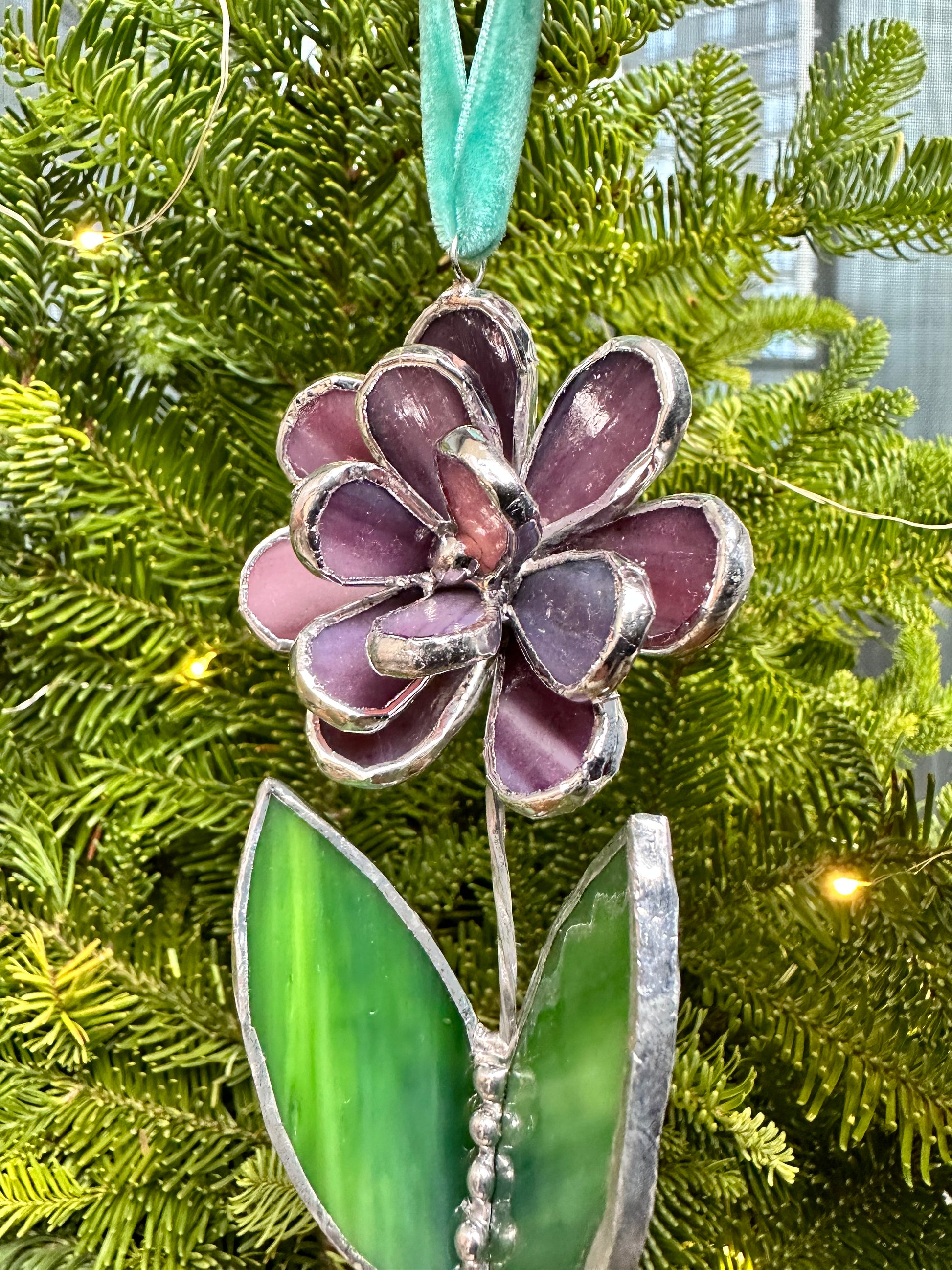 Christmas tree ornament Flower Purple Set of 1, 3, 5, 7, 10. Stained glass Wall window decor, holiday decorations, lights