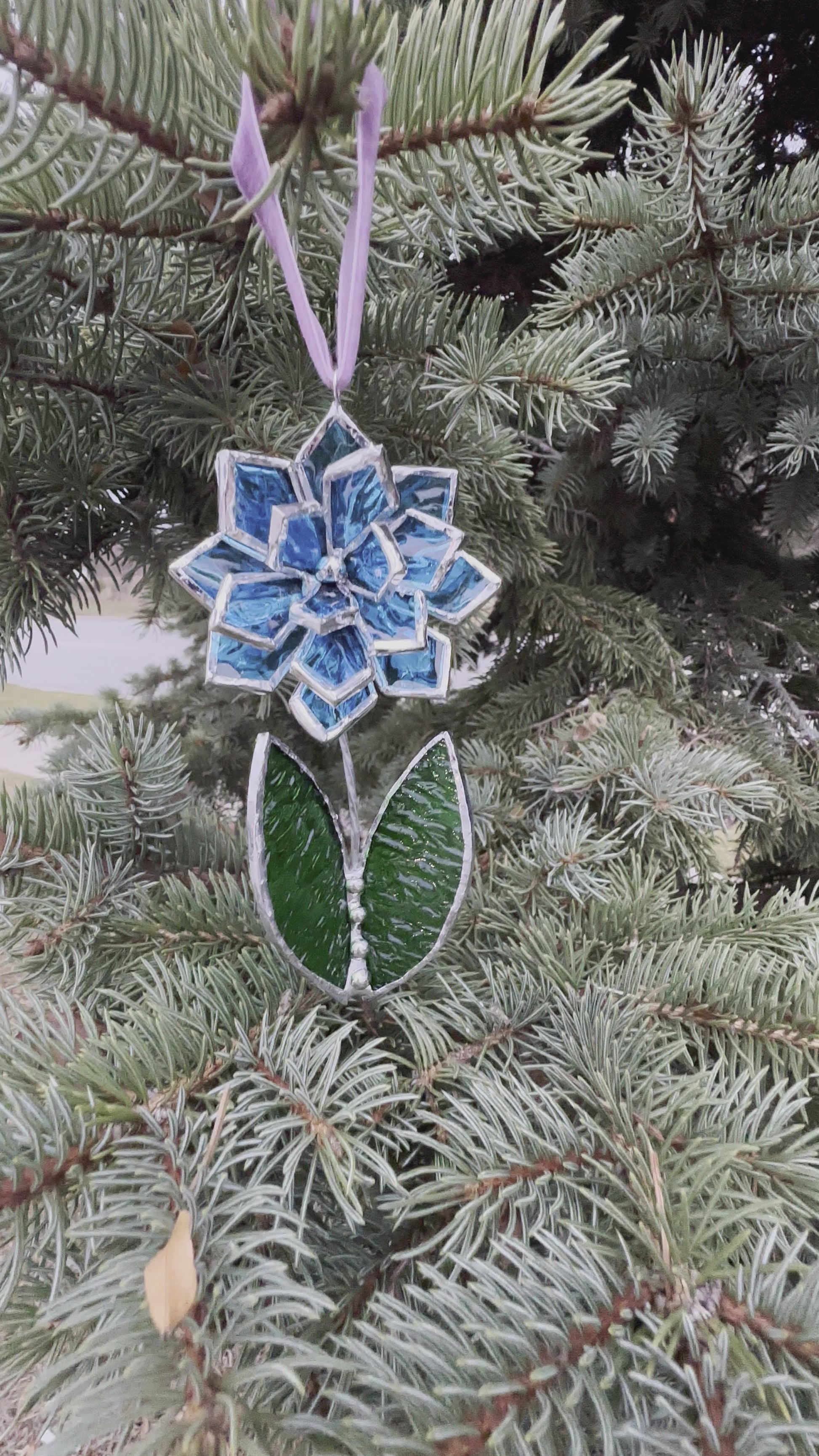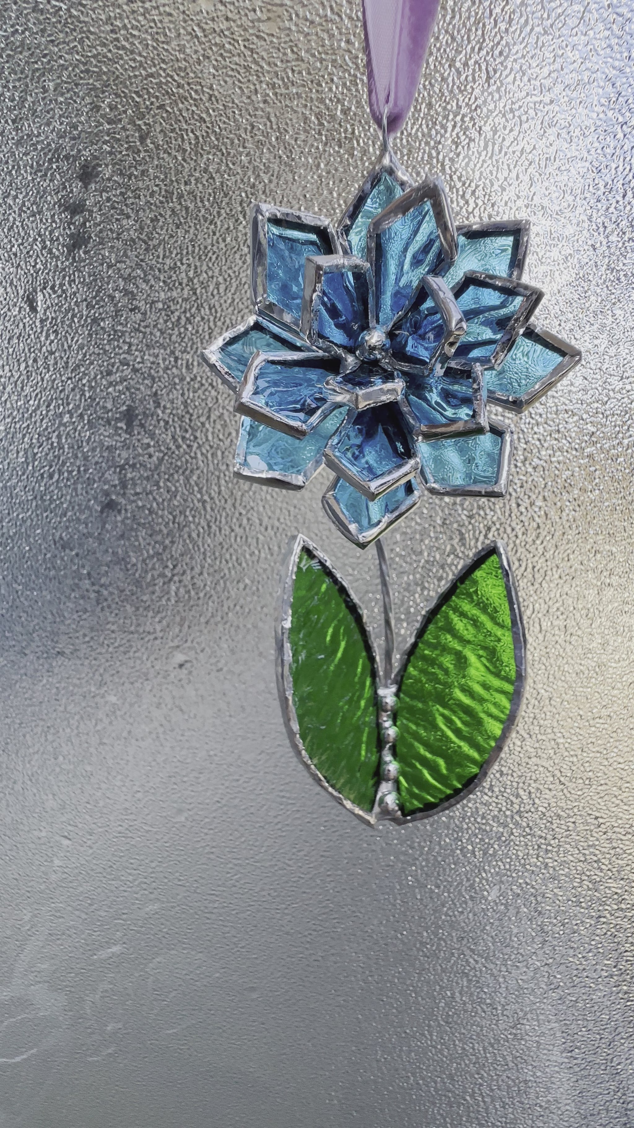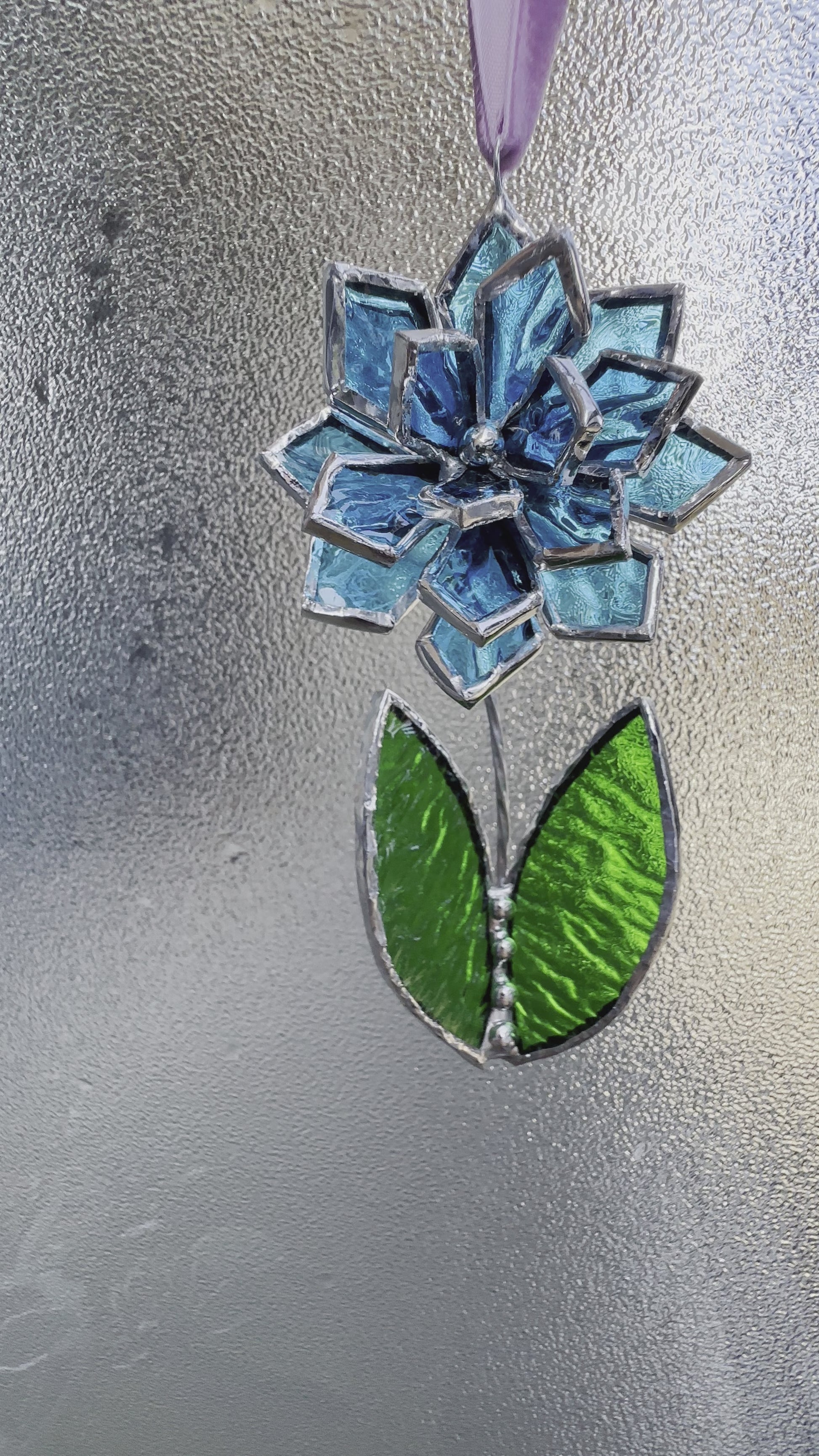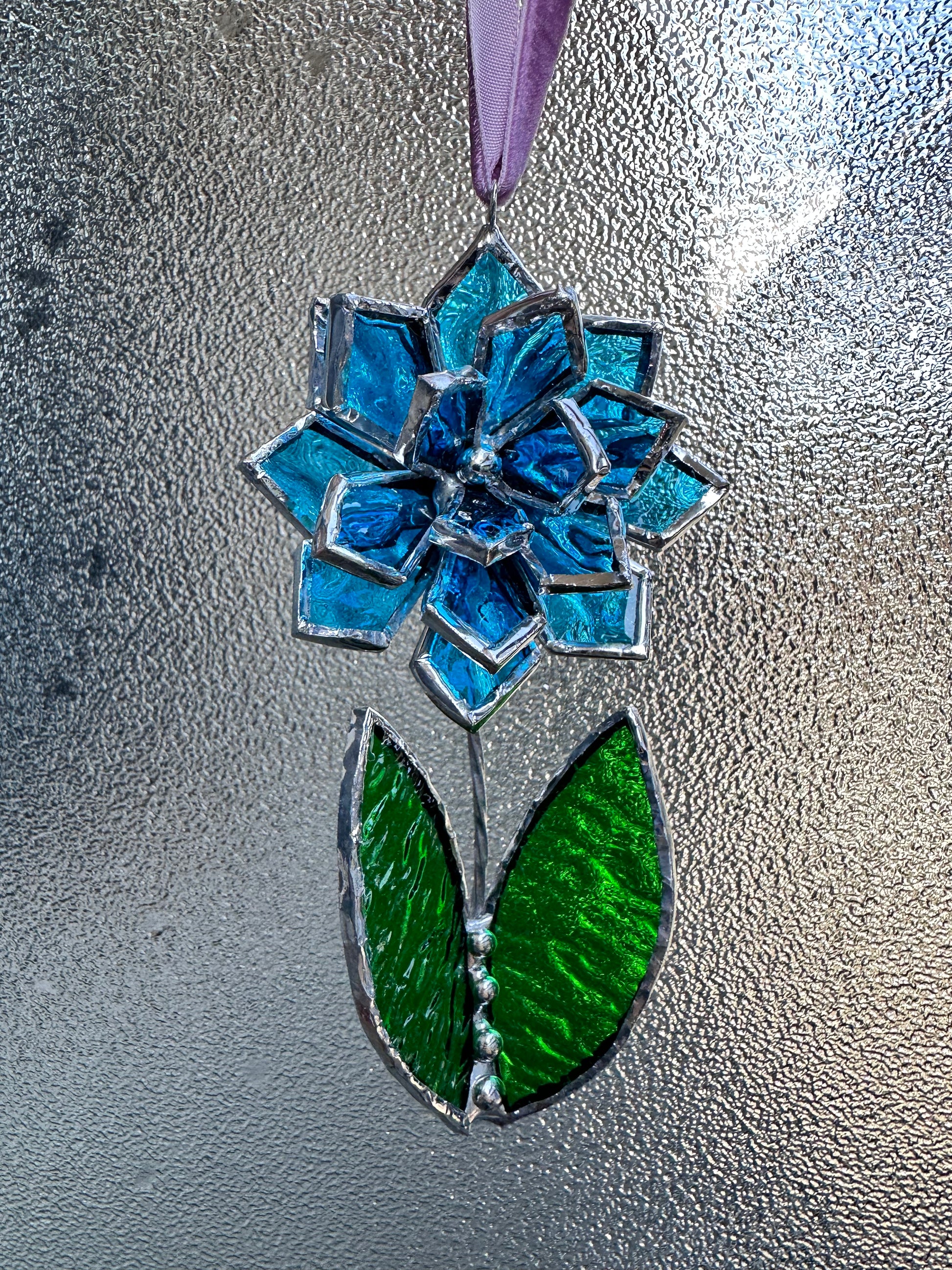 Christmas tree ornament Flower Blue ribbed transparent Set of 1, 3, 5, 7, 10. Stained glass Wall window decor, holiday decorations, lights