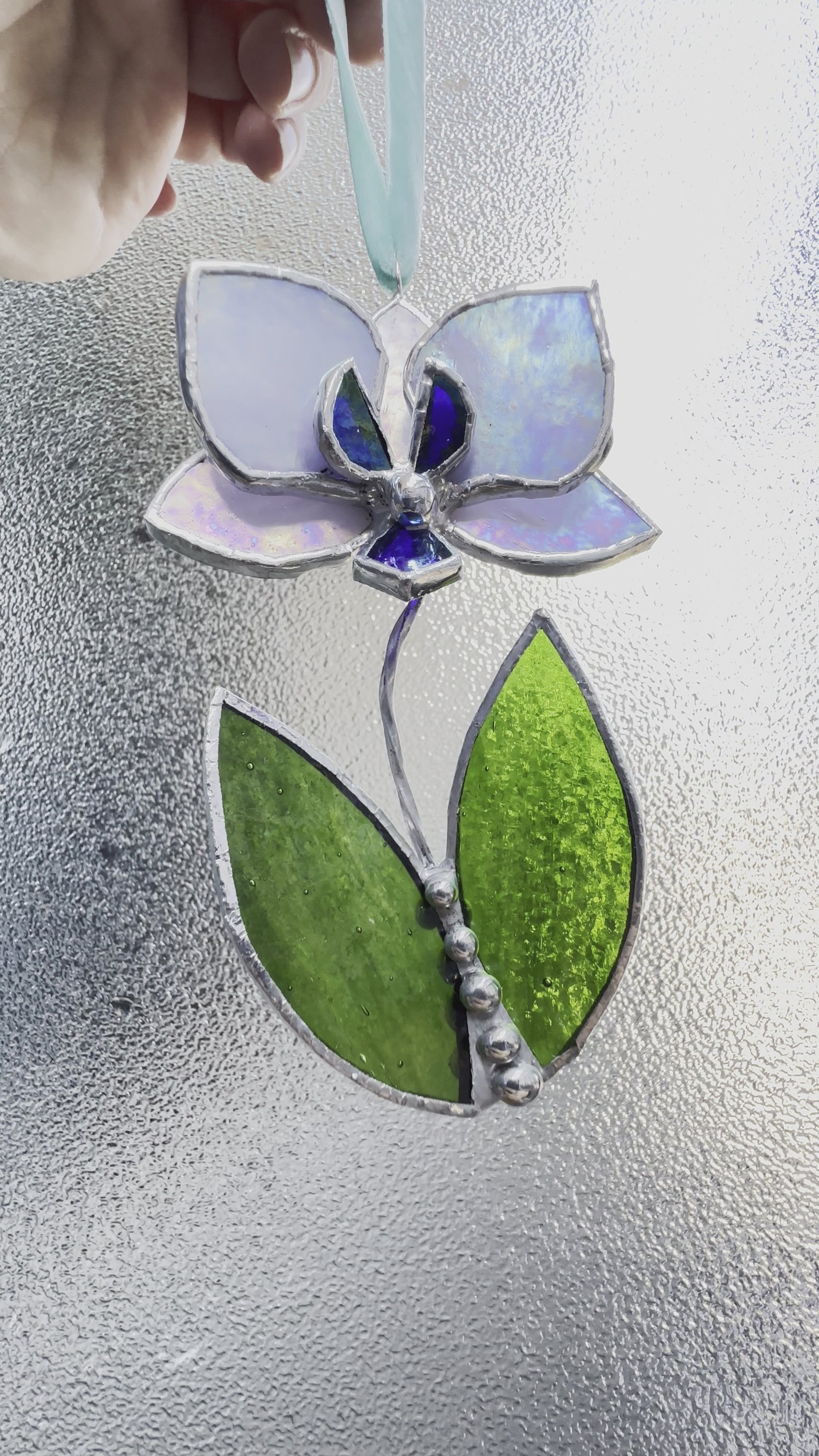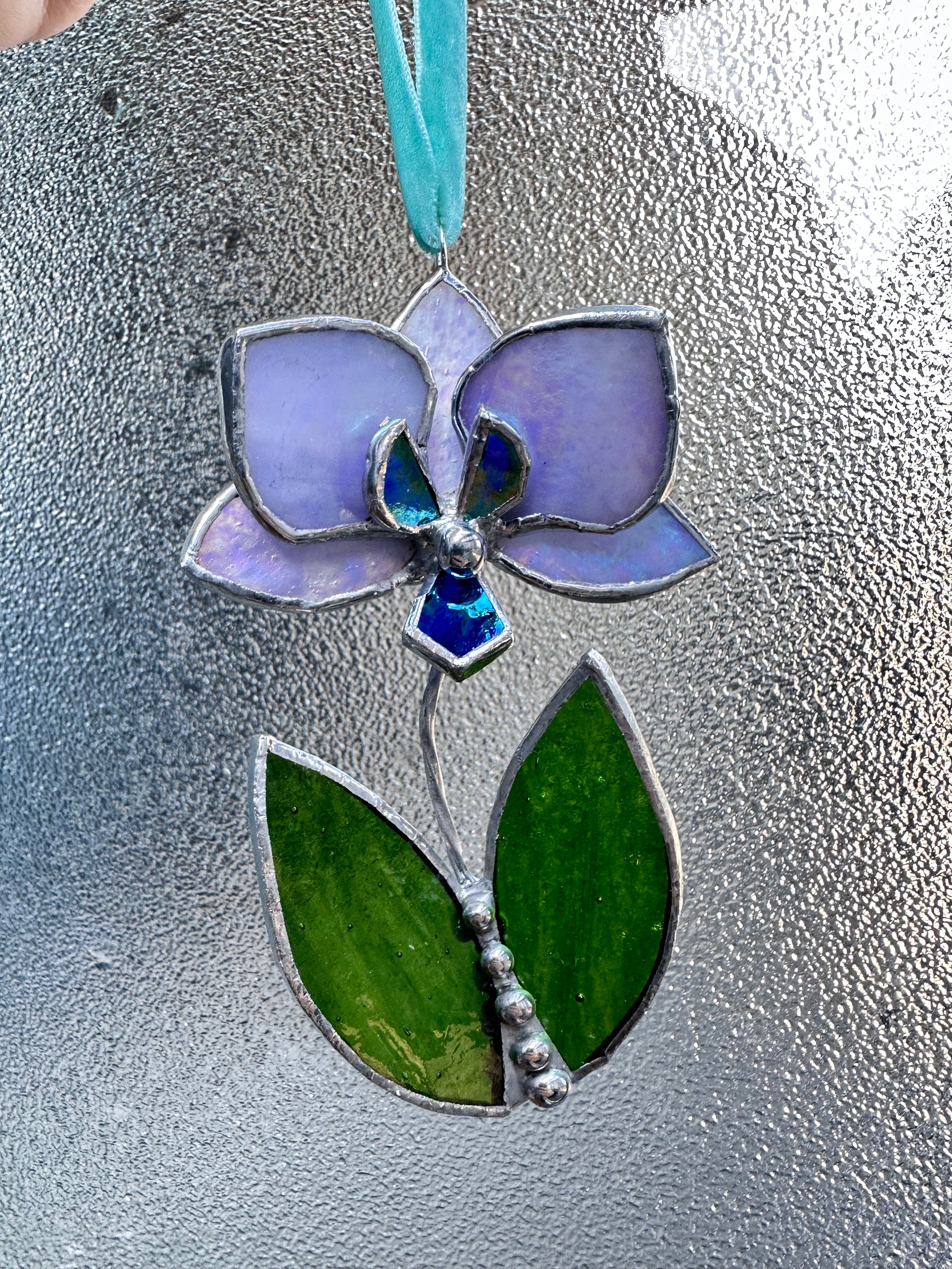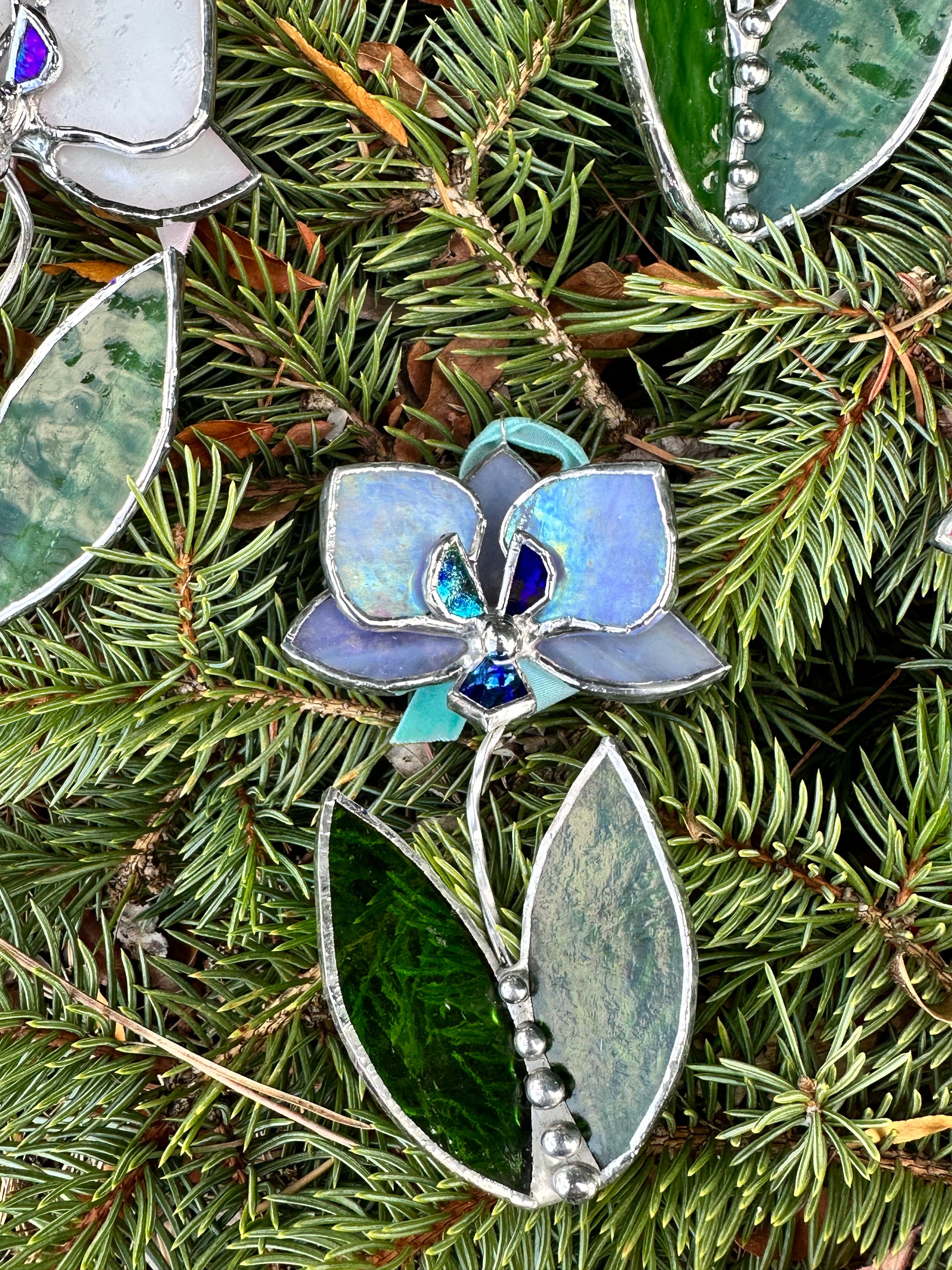 Christmas tree ornament OrchidLavender iridescent . Set of 1, 3, 5, 7, 10. Stained glass Wall window decor, holiday decorations, lights